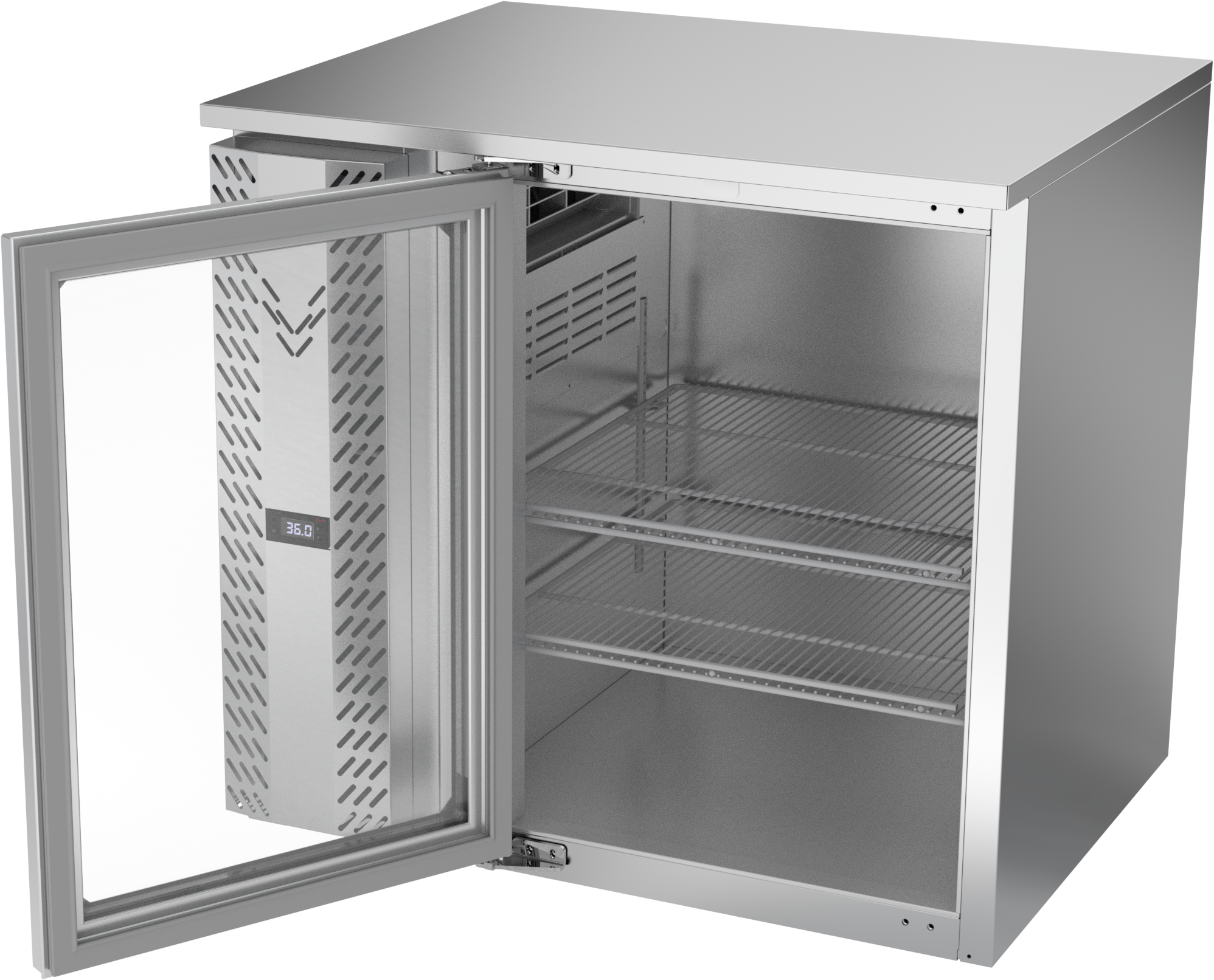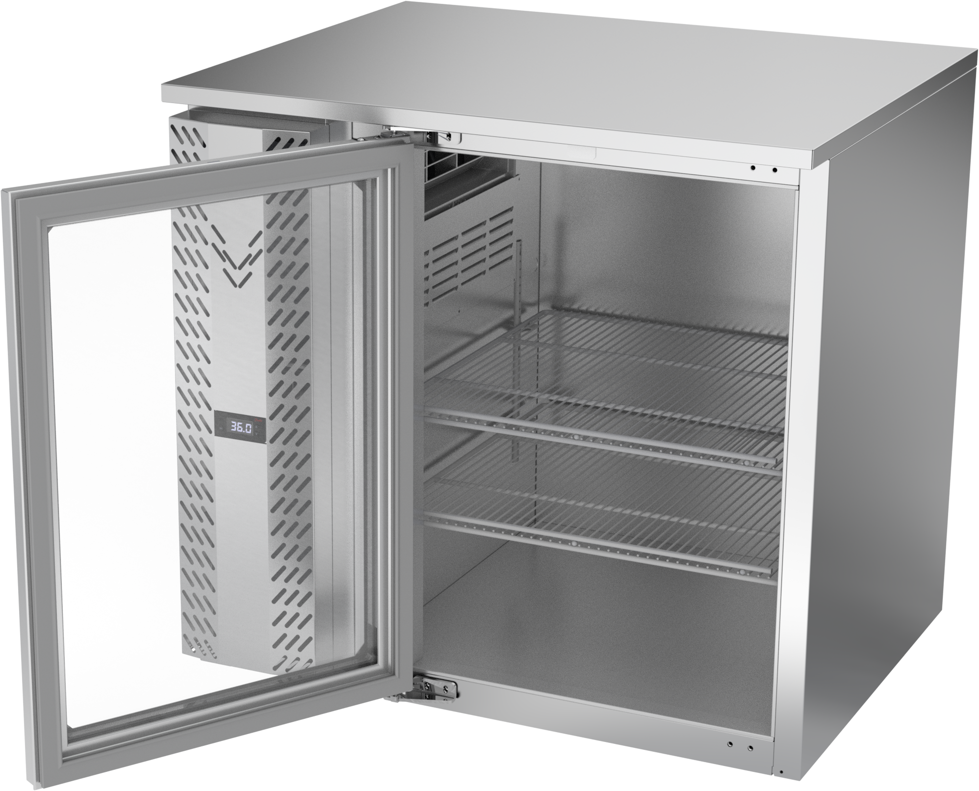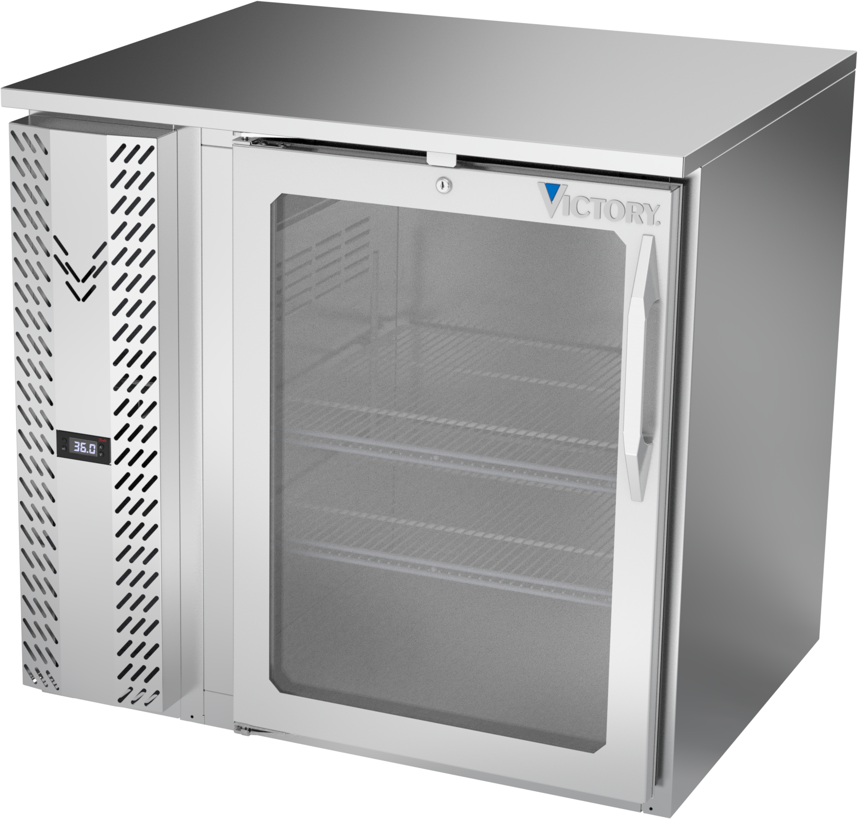 VBB36HC-FG-S | 36" Glass Door Food Rated Back Bar in Stainless Steel