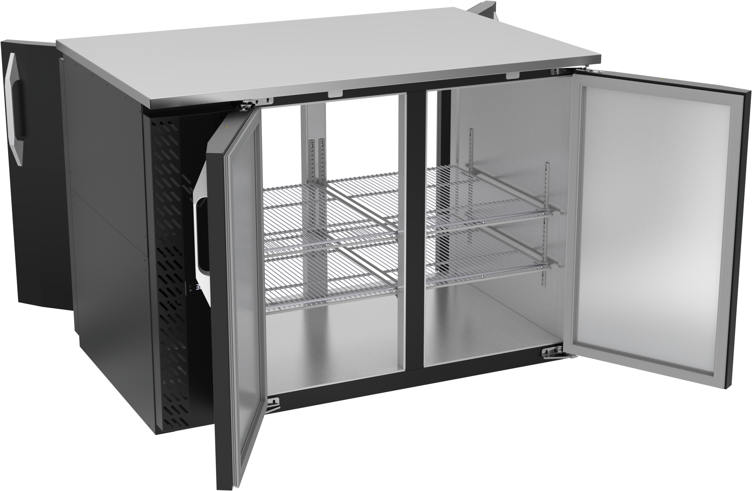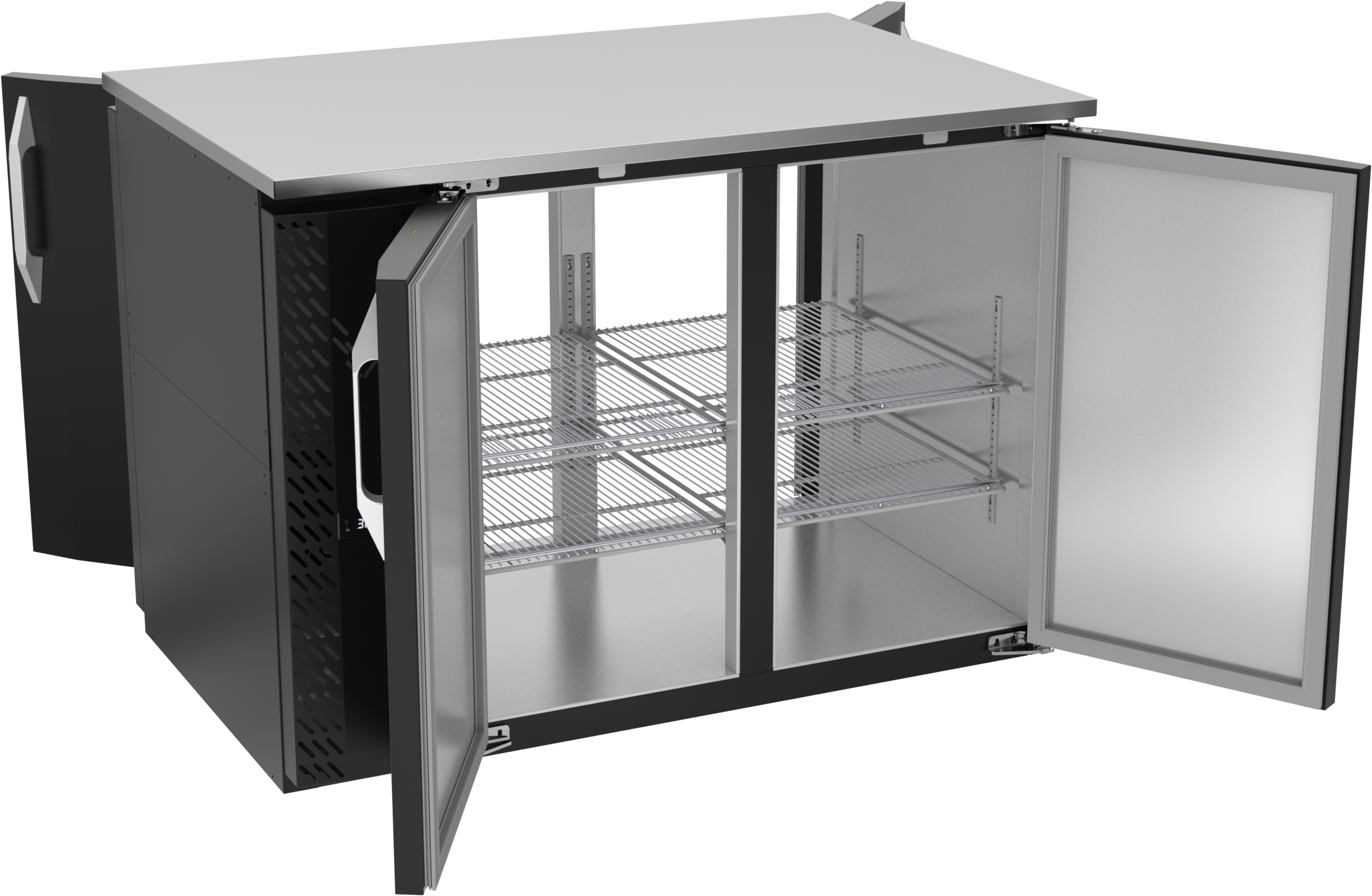VBB48HC-F-PT-B | 48" Solid Doors Food Rated Pass-thru Back Bar in Black