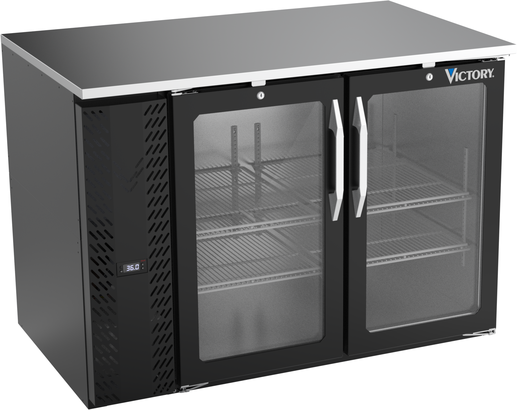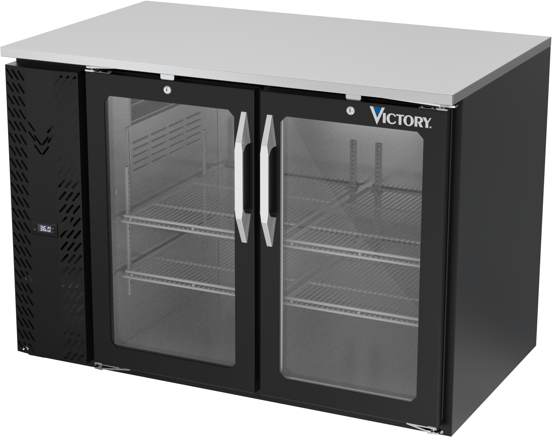 VBB48HC-FG-B | 48" Glass Doors Food Rated Back Bar in Black