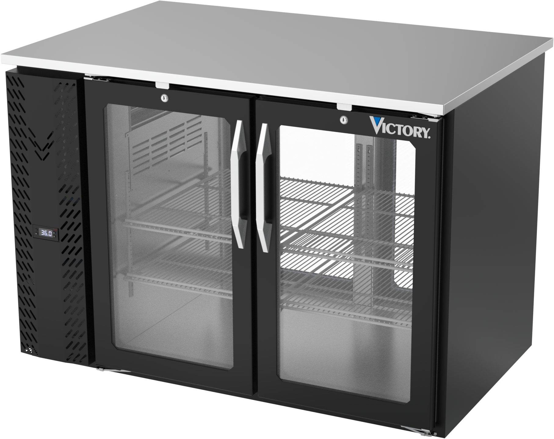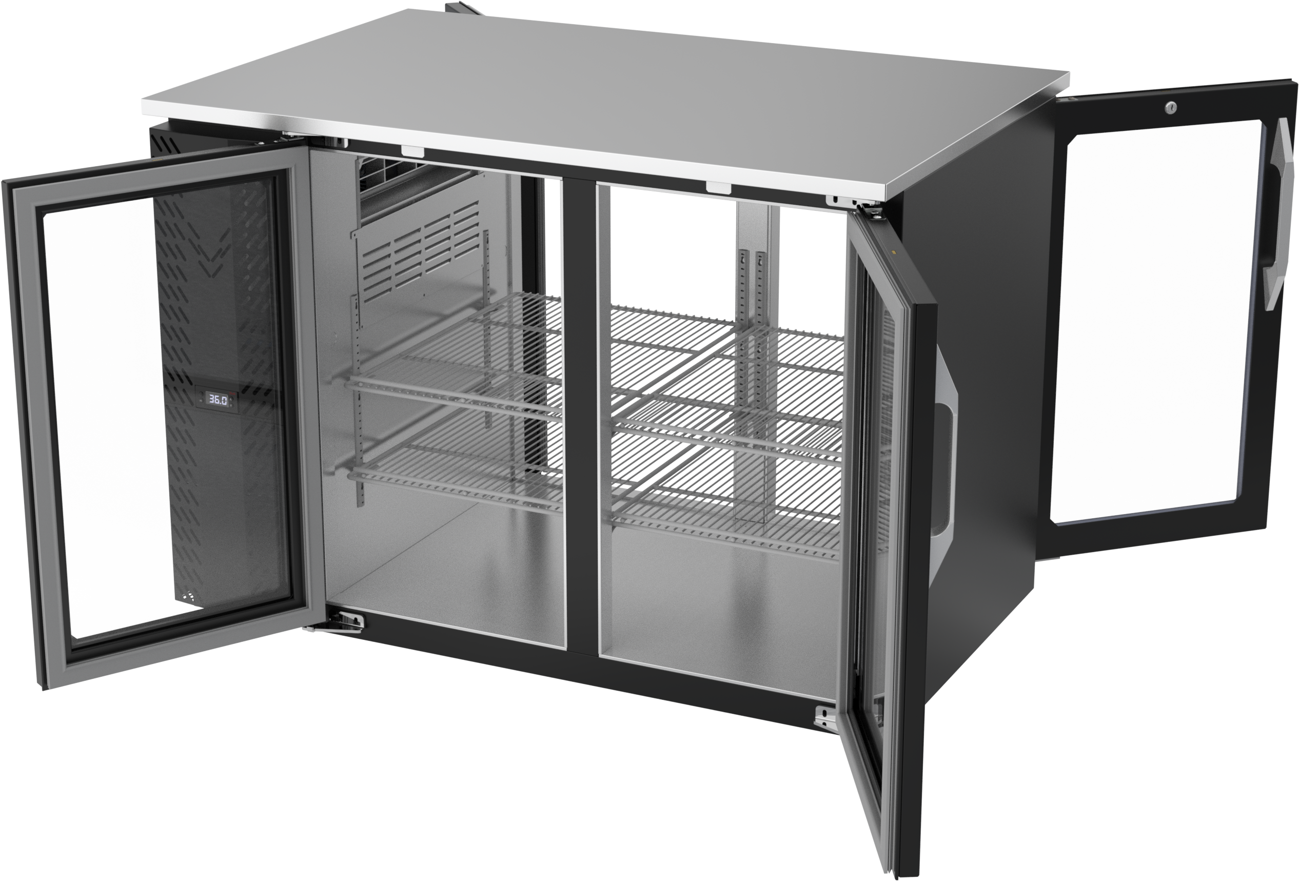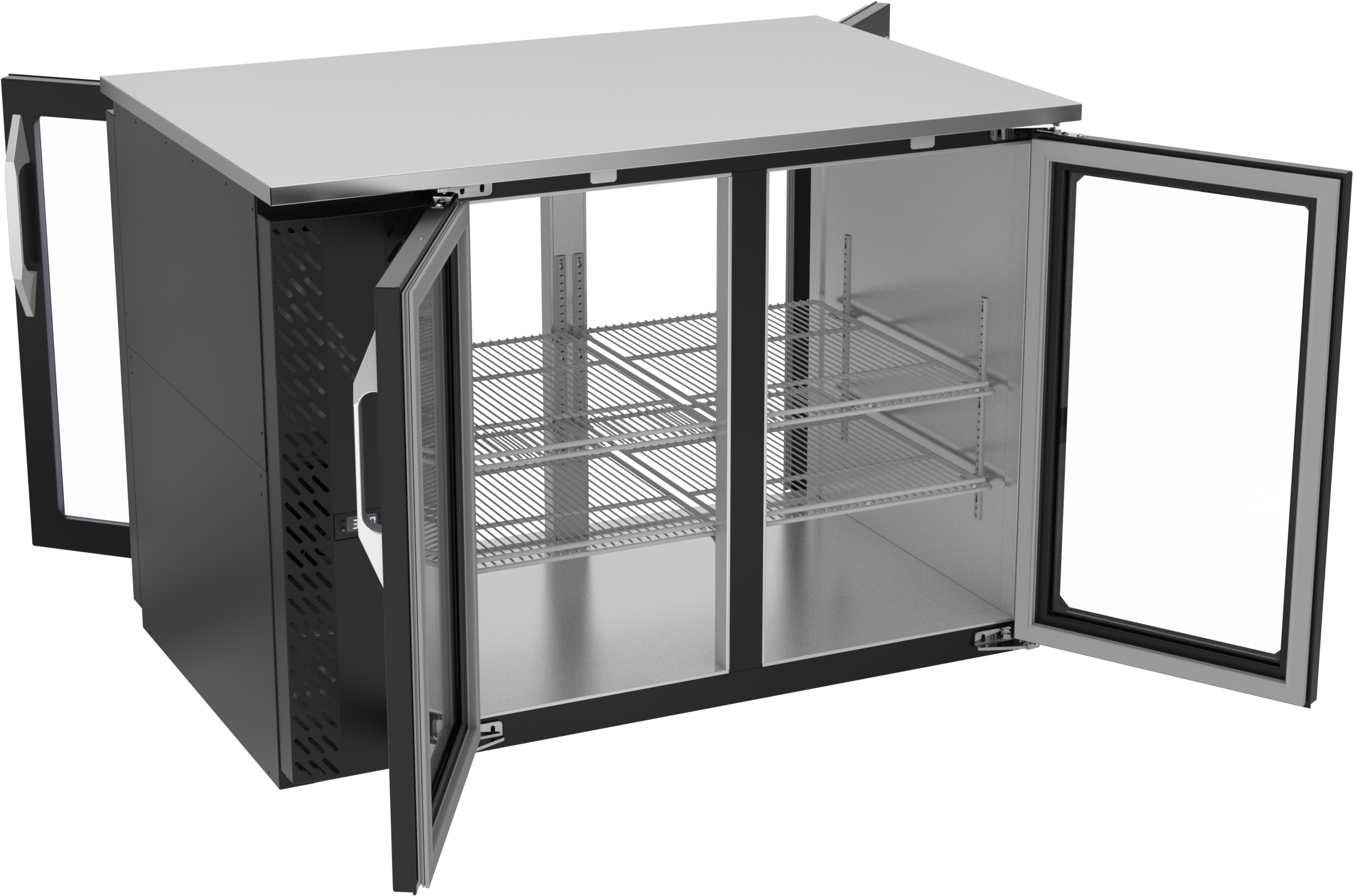 VBB48HC-FG-PT-B | 48" Glass Doors Food Rated Pass-thru Back Bar in Black
