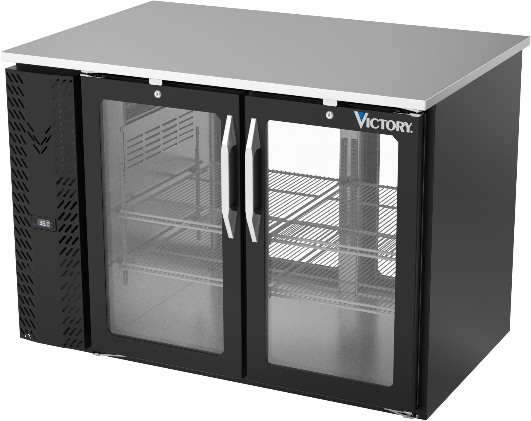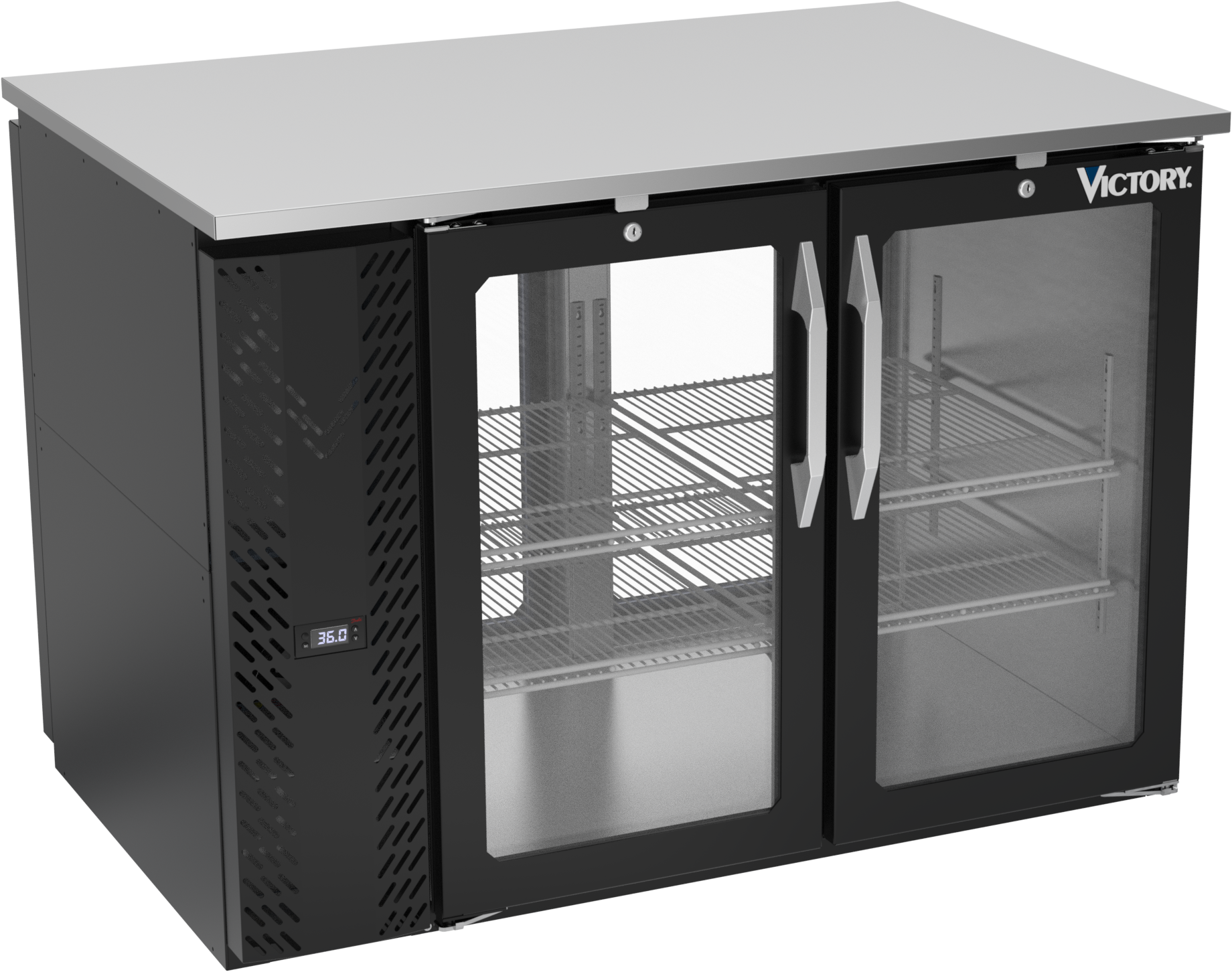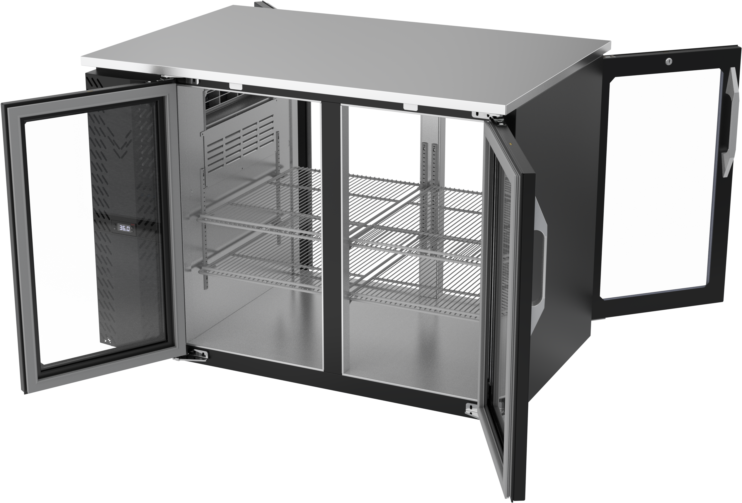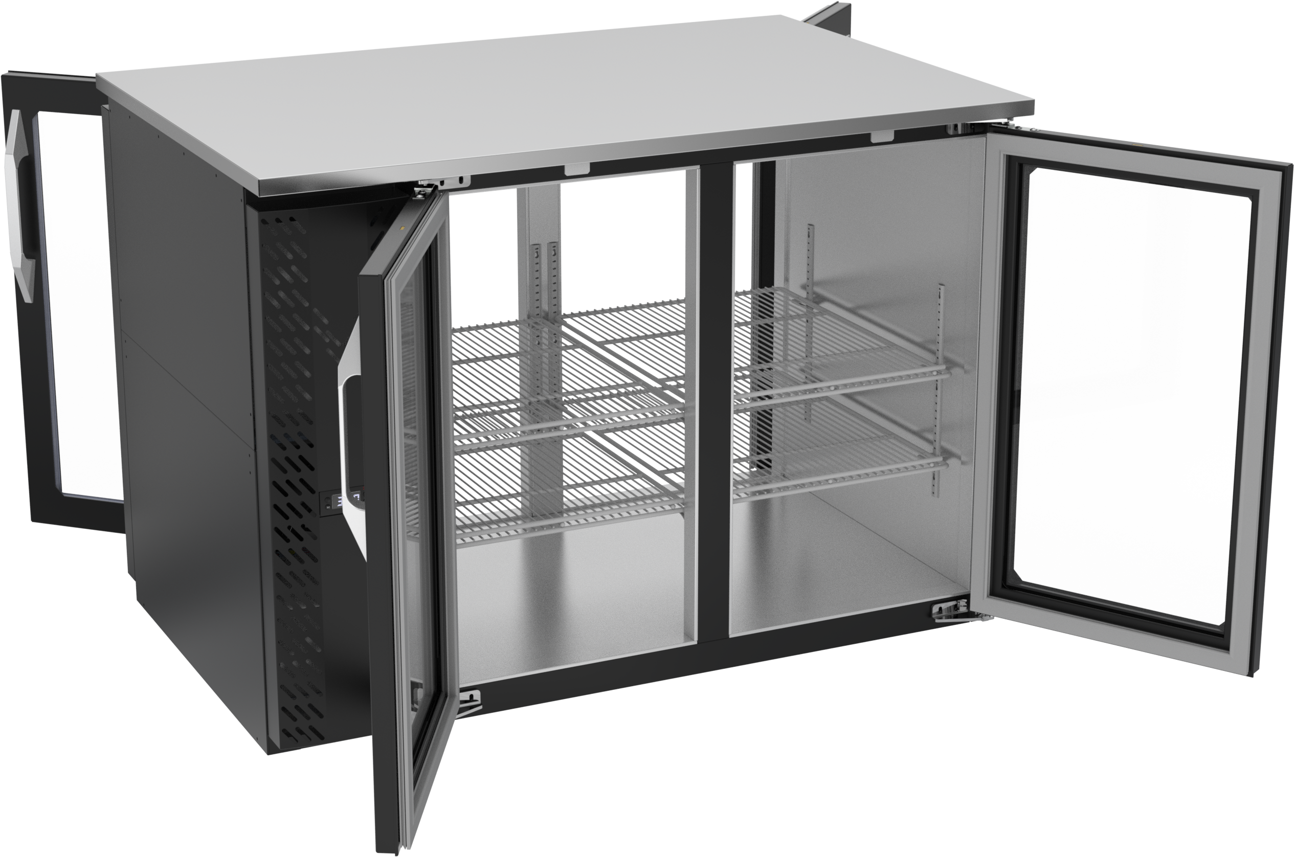 VBB48HC-FG-PT-B | 48" Glass Doors Food Rated Pass-thru Back Bar in Black