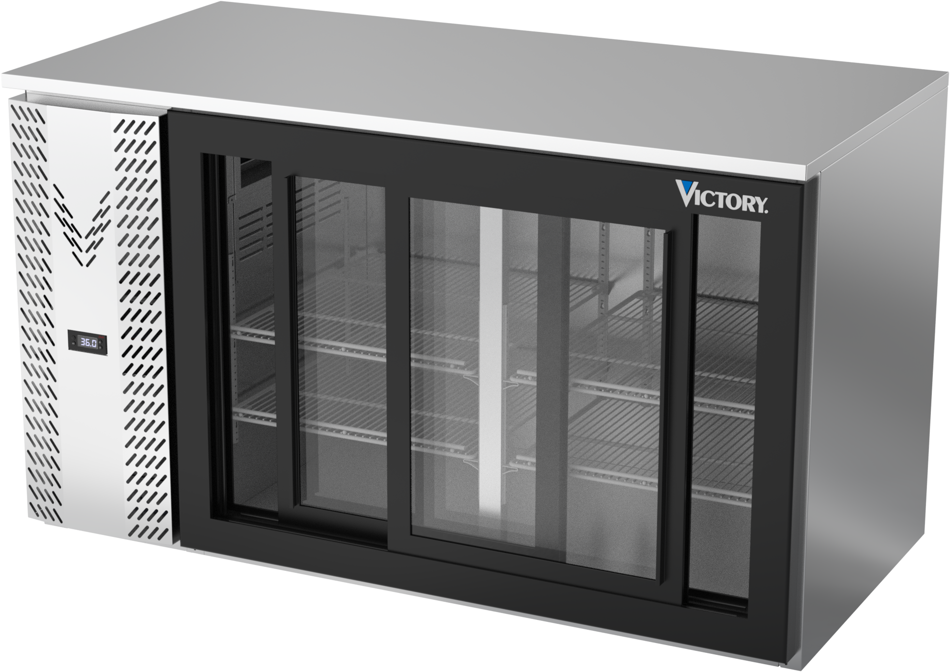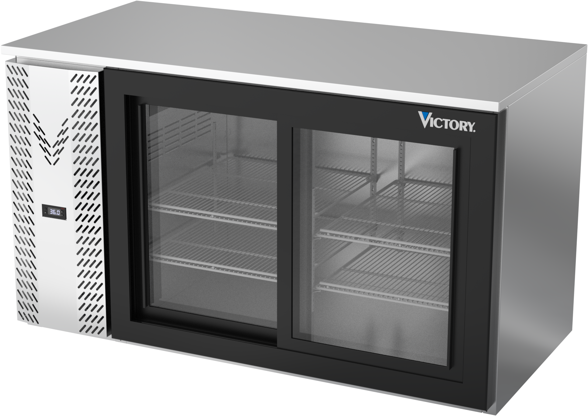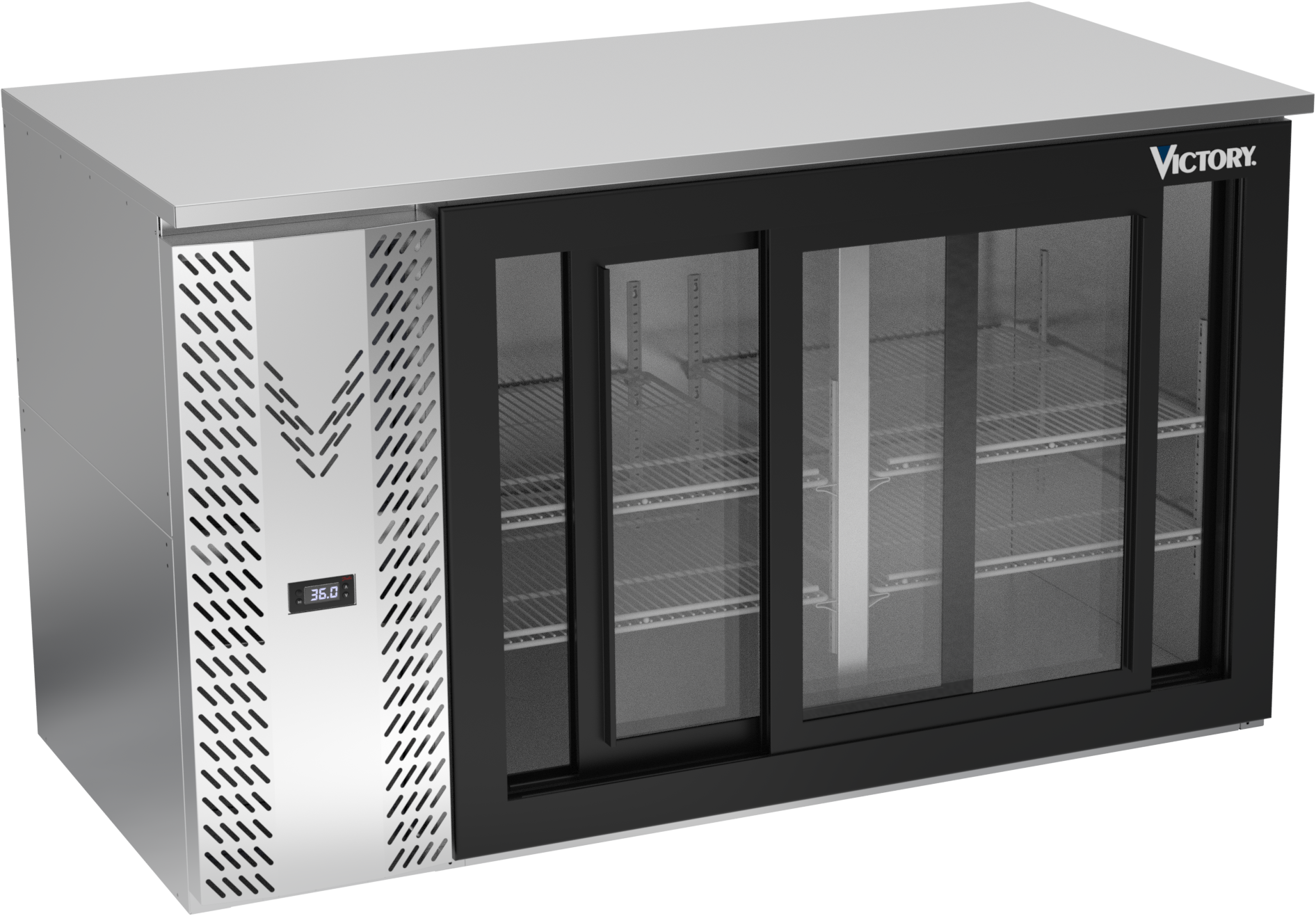 VBB58HC-F-GS-S | 58" Sliding Glass Doors Food Rated Back Bar in Stainless Steel