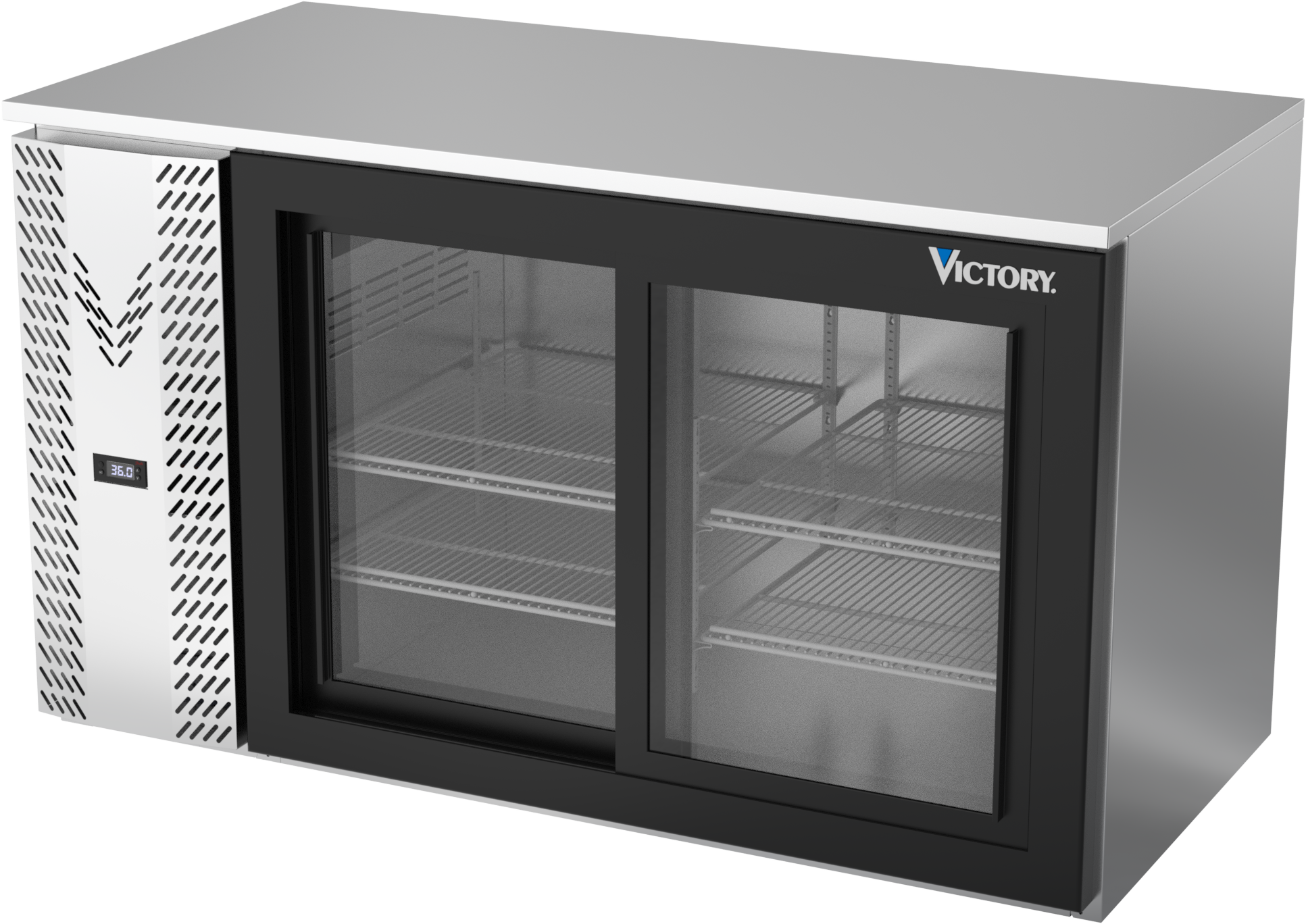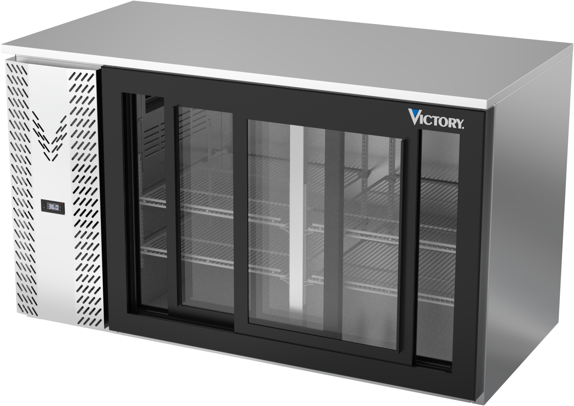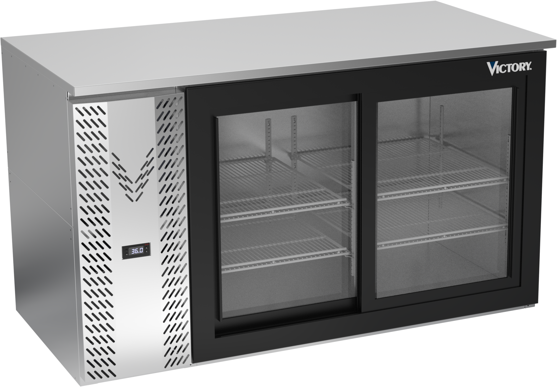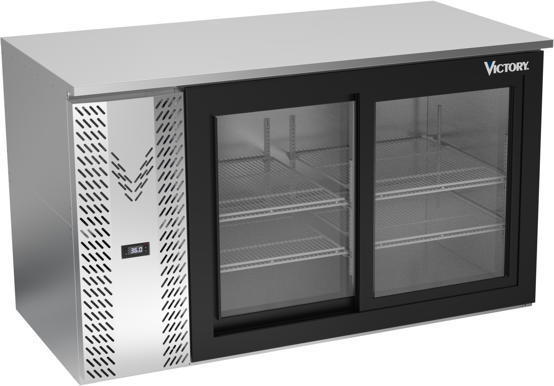 VBB58HC-F-GS-S | 58" Sliding Glass Doors Food Rated Back Bar in Stainless Steel
