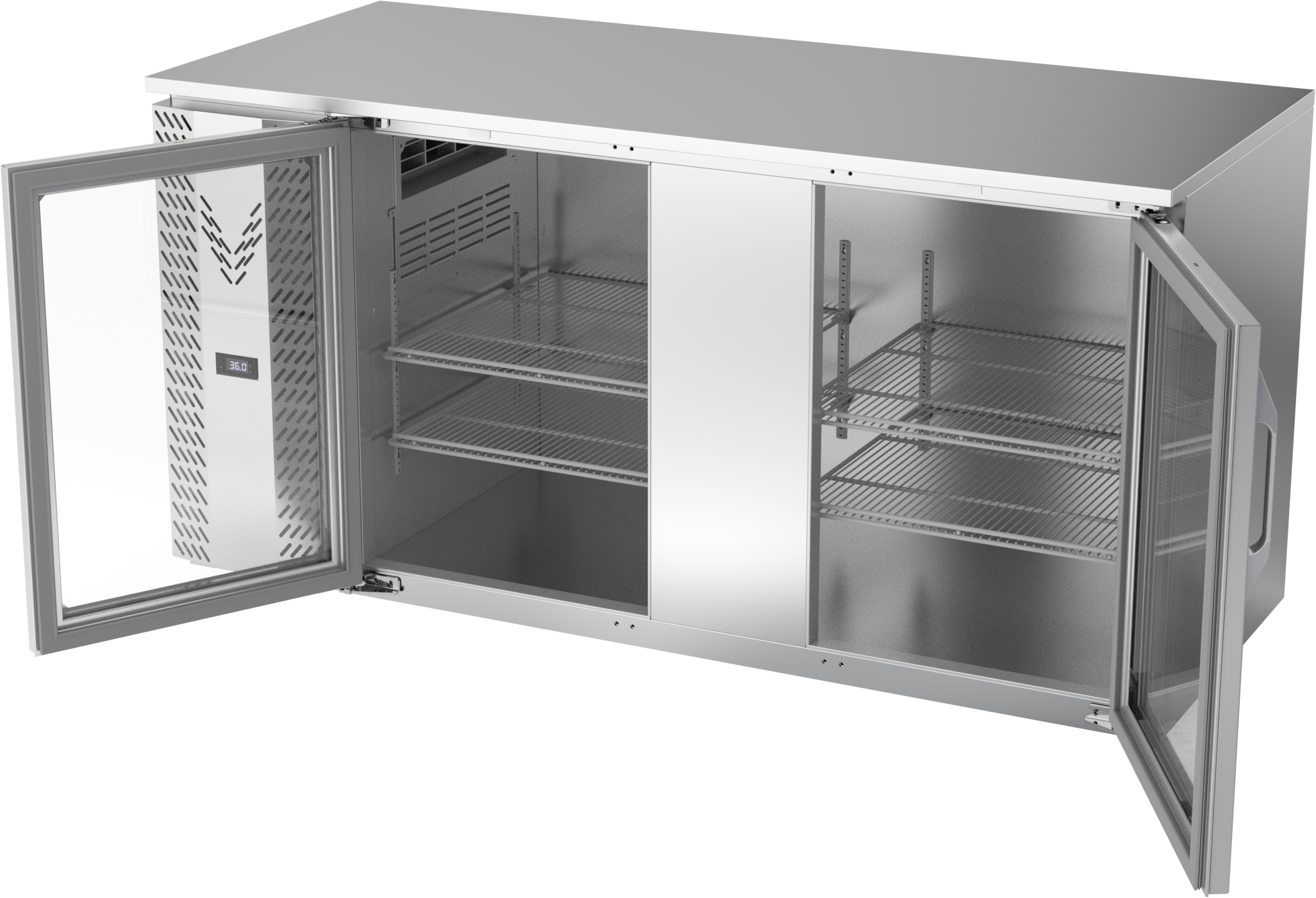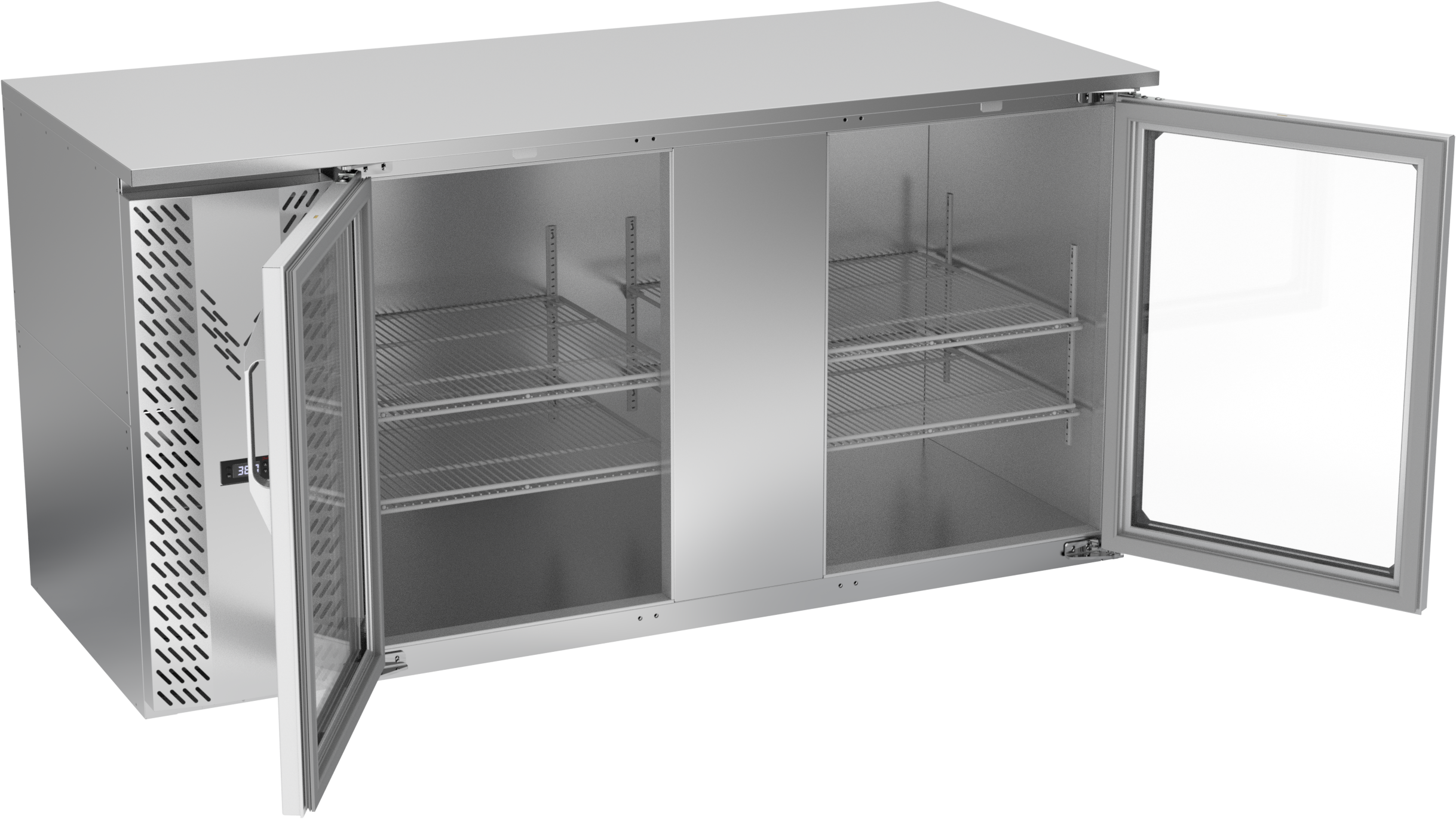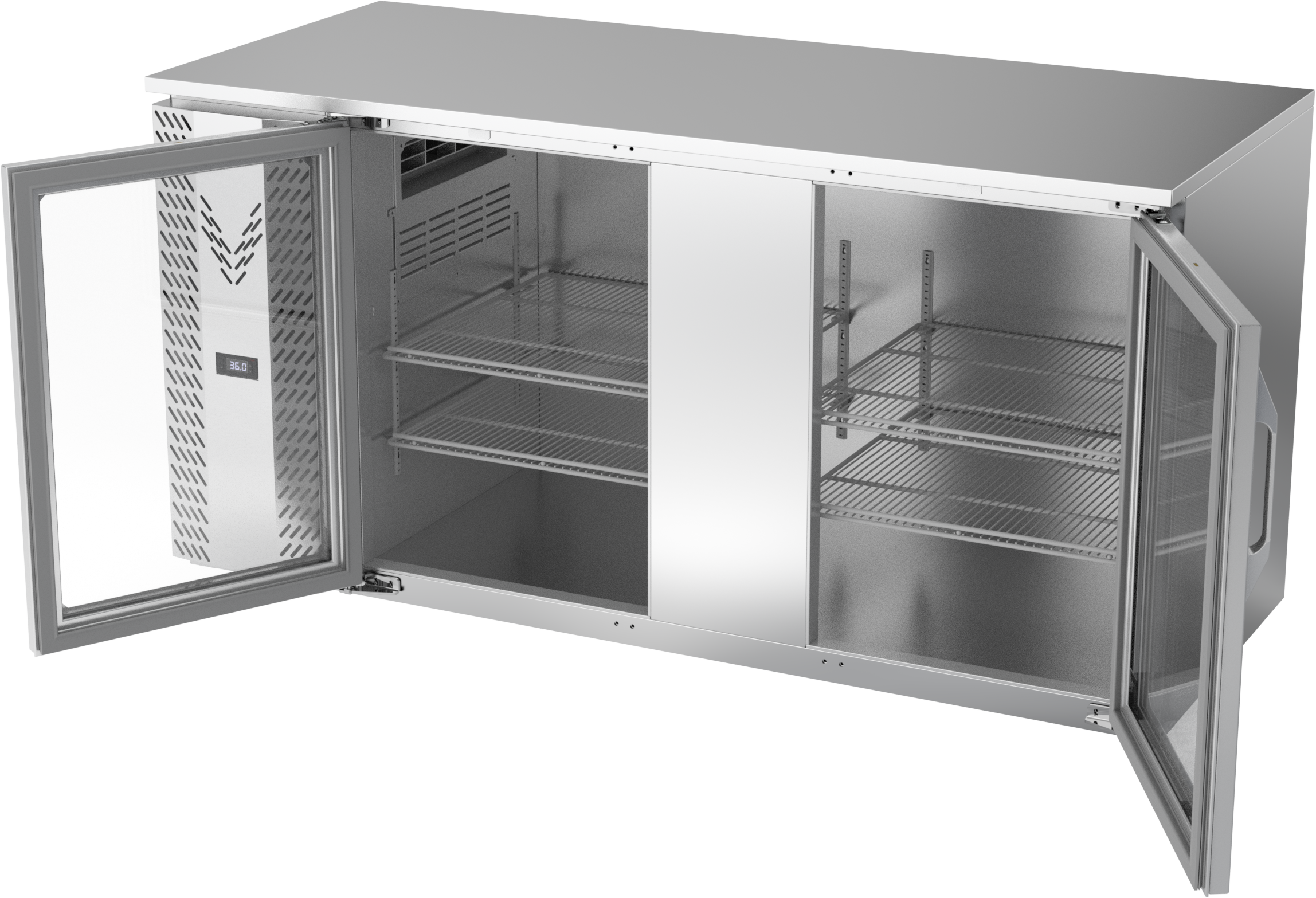 VBB68HC-FG-S | 68" Glass Doors Food Rated Back Bar in Stainless Steel