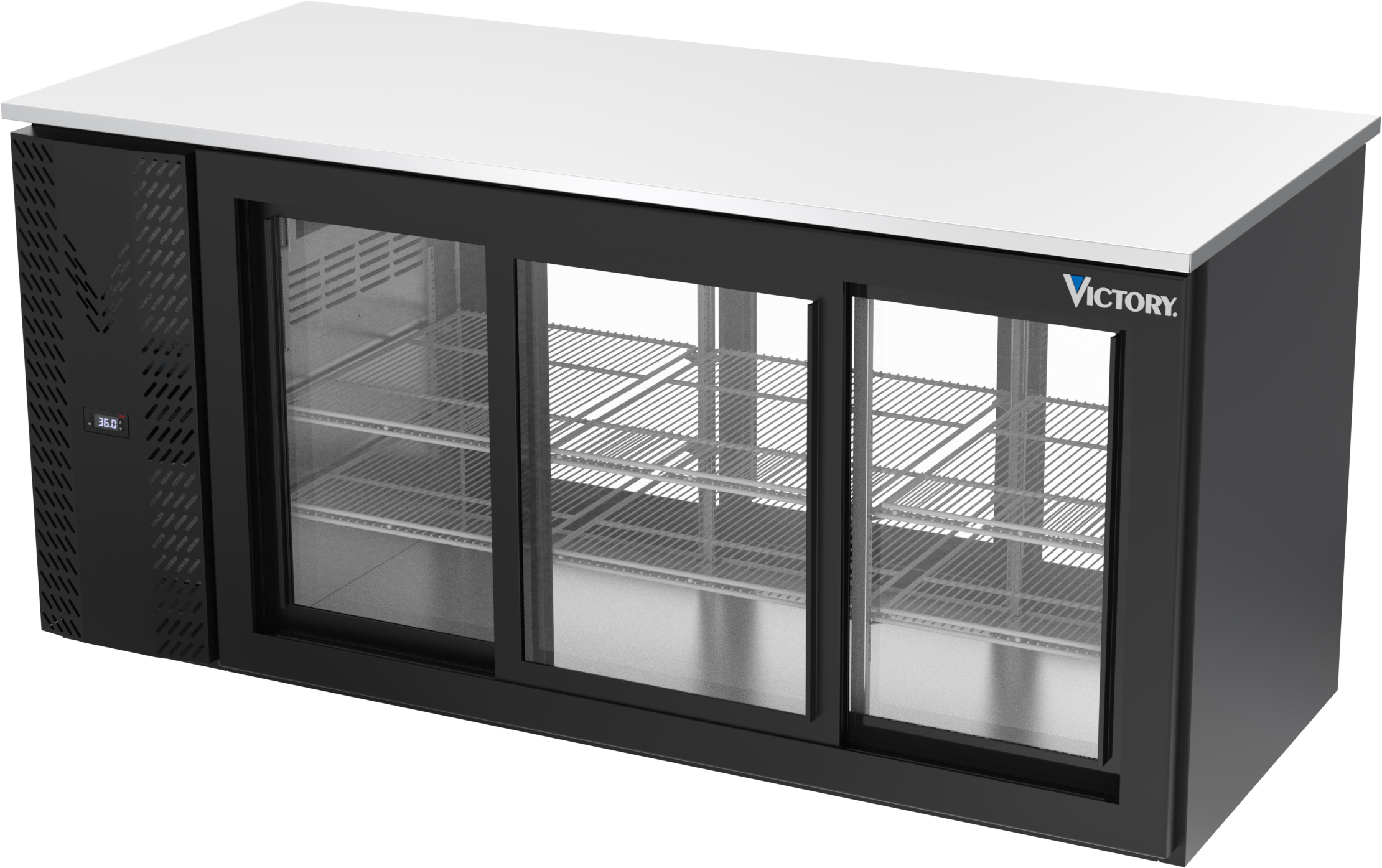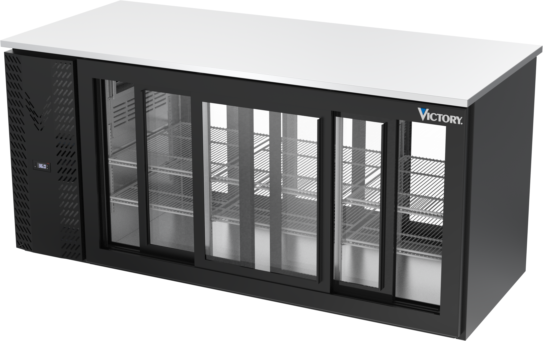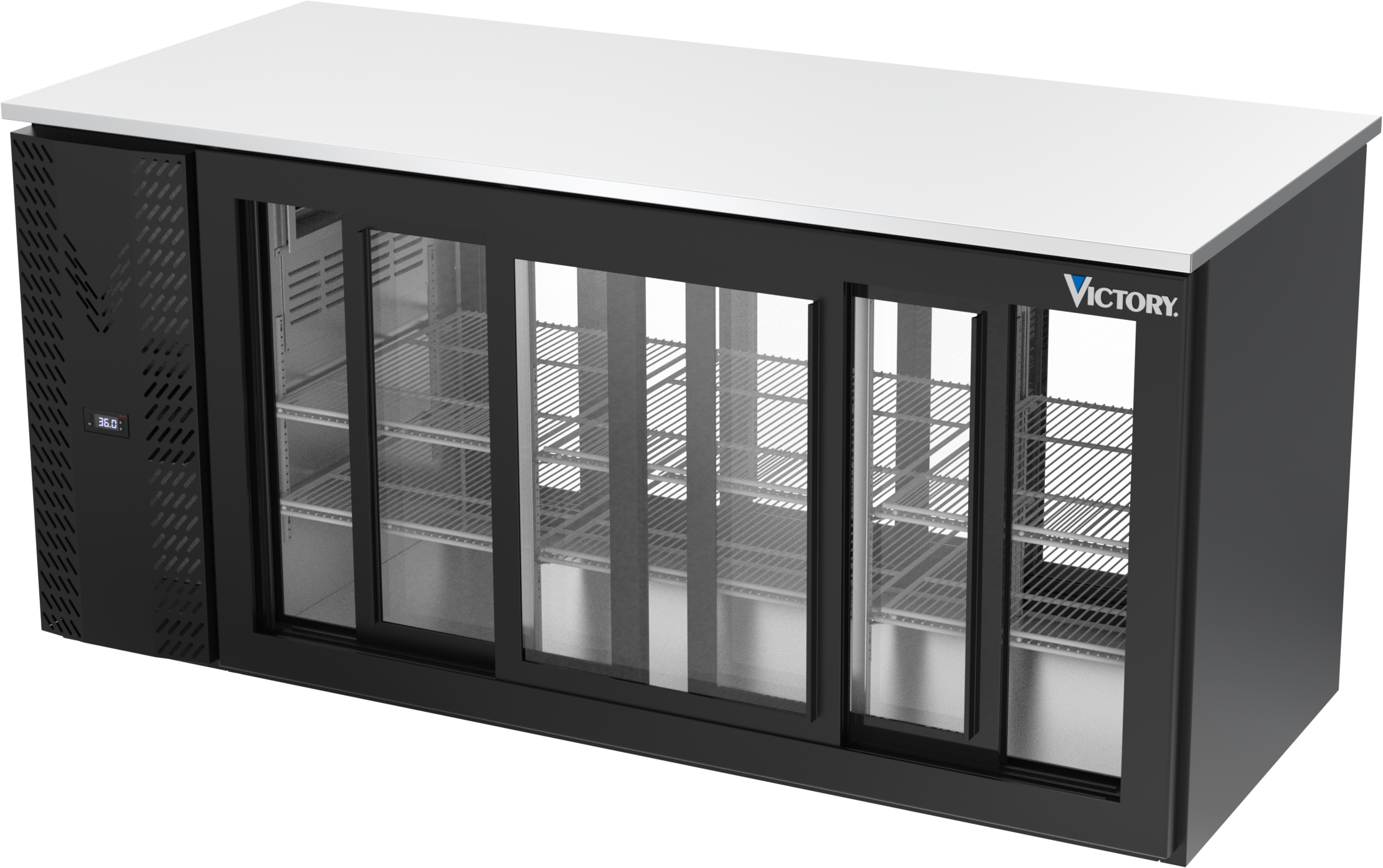 VBB72HC-F-GS-PT-B | 72" Sliding Glass Doors Food Rated Pass-thru Back Bar in Black