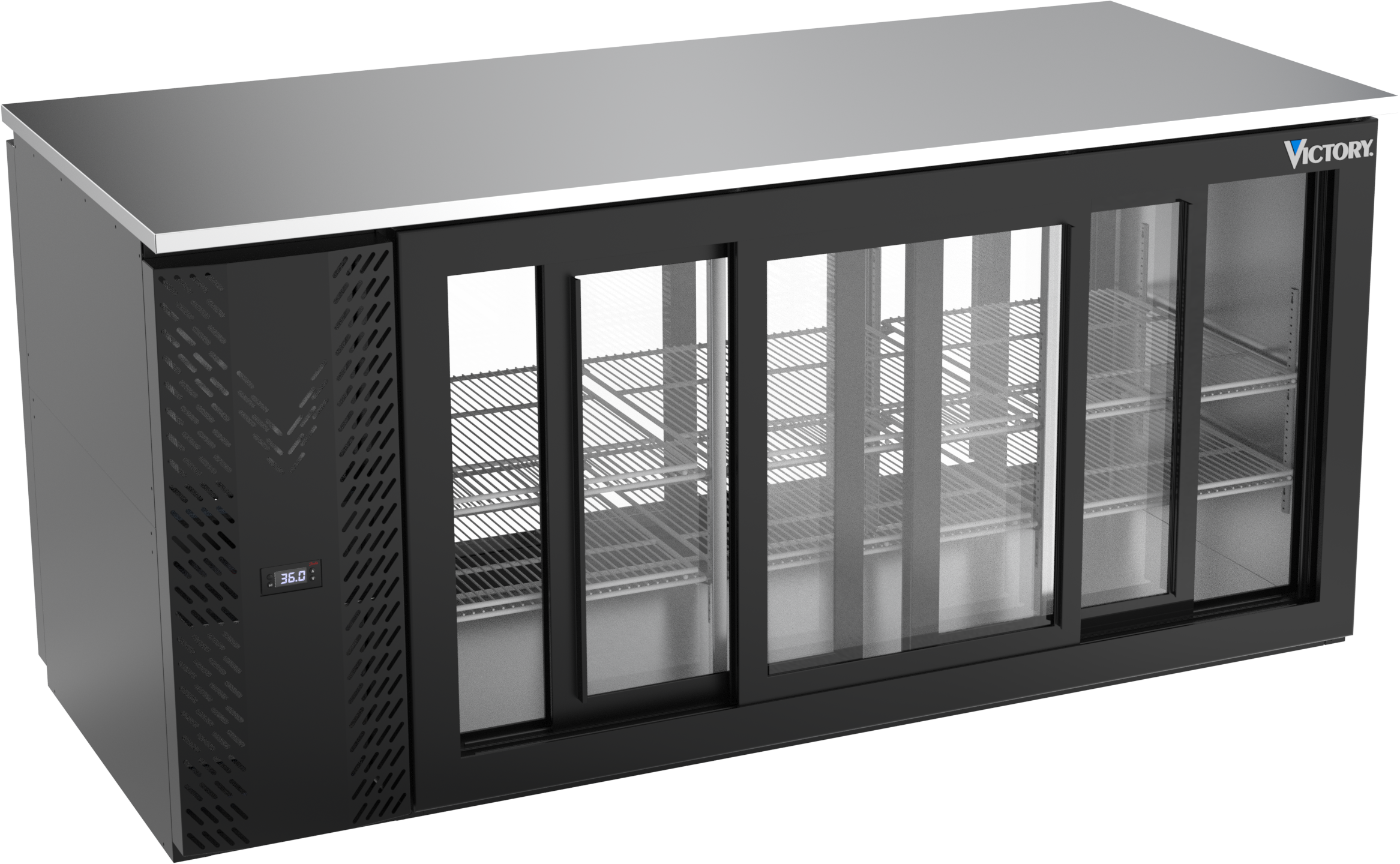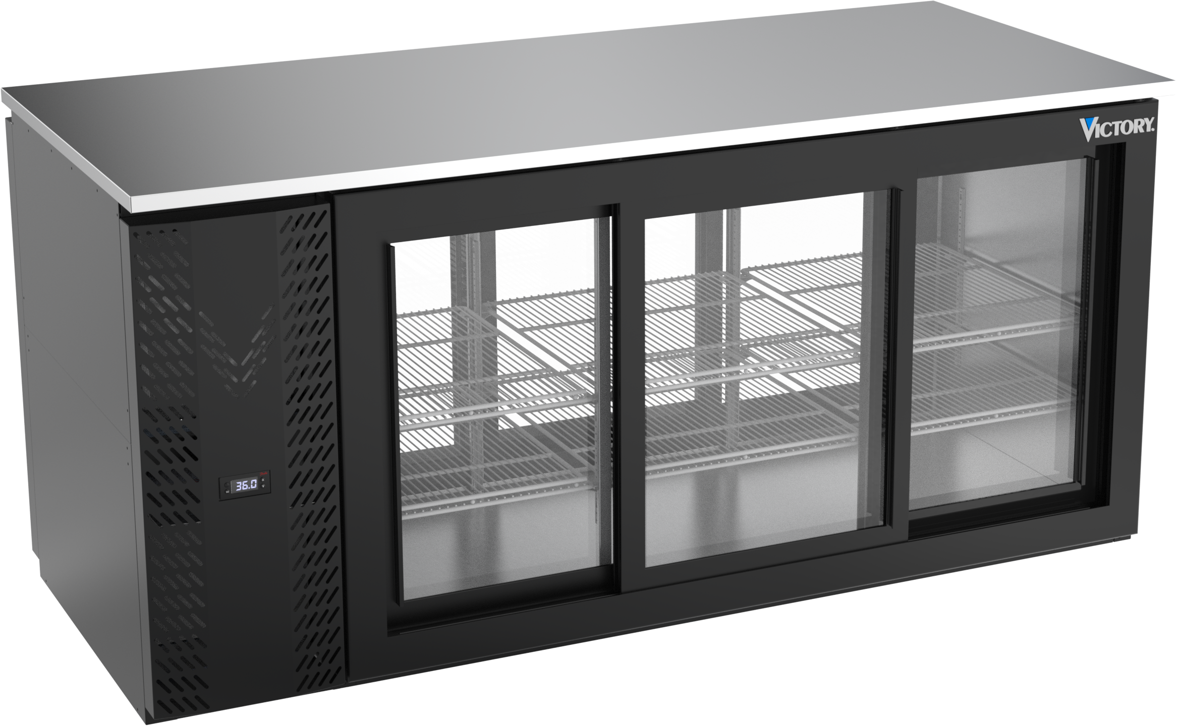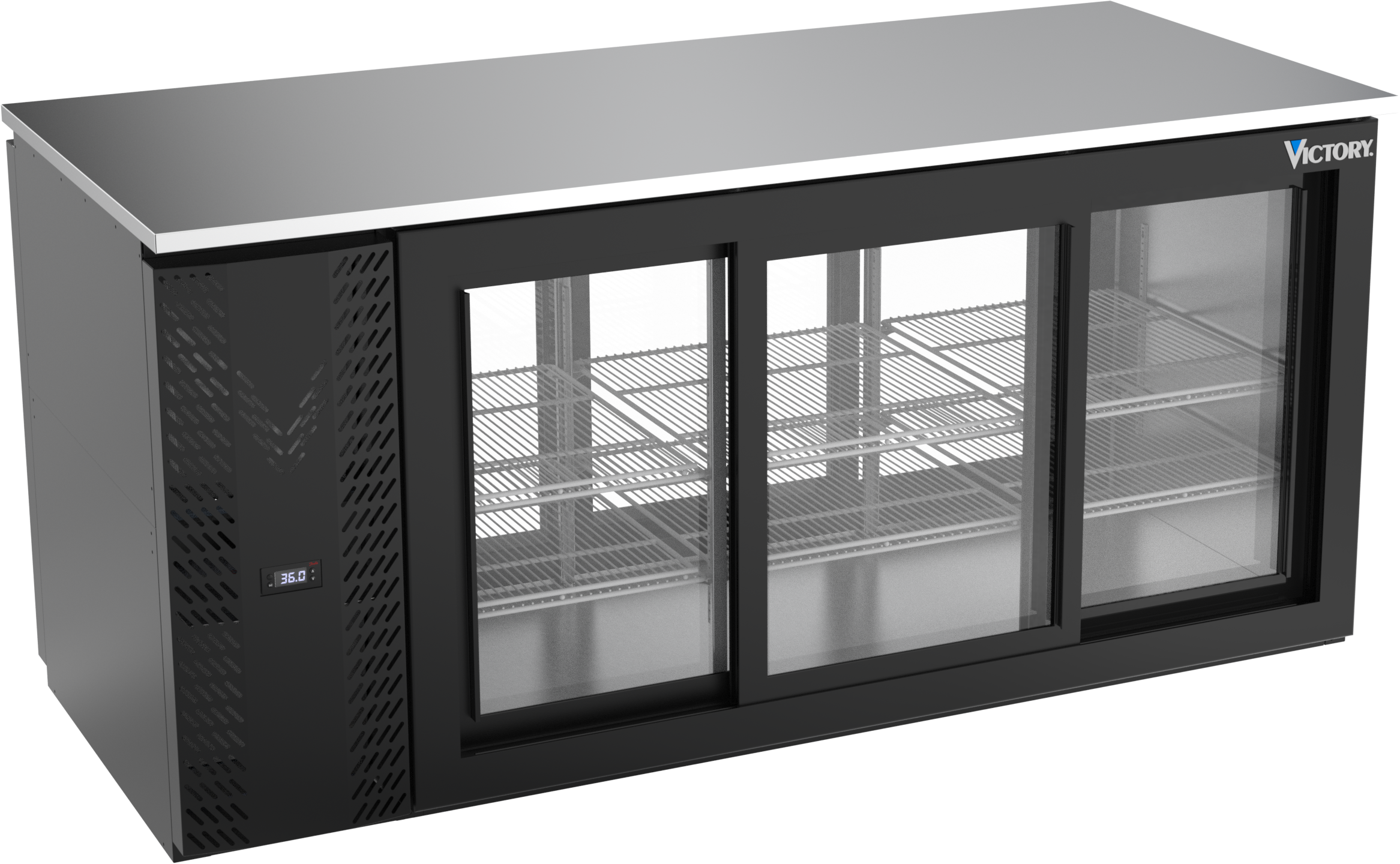 VBB72HC-F-GS-PT-B | 72" Sliding Glass Doors Food Rated Pass-thru Back Bar in Black