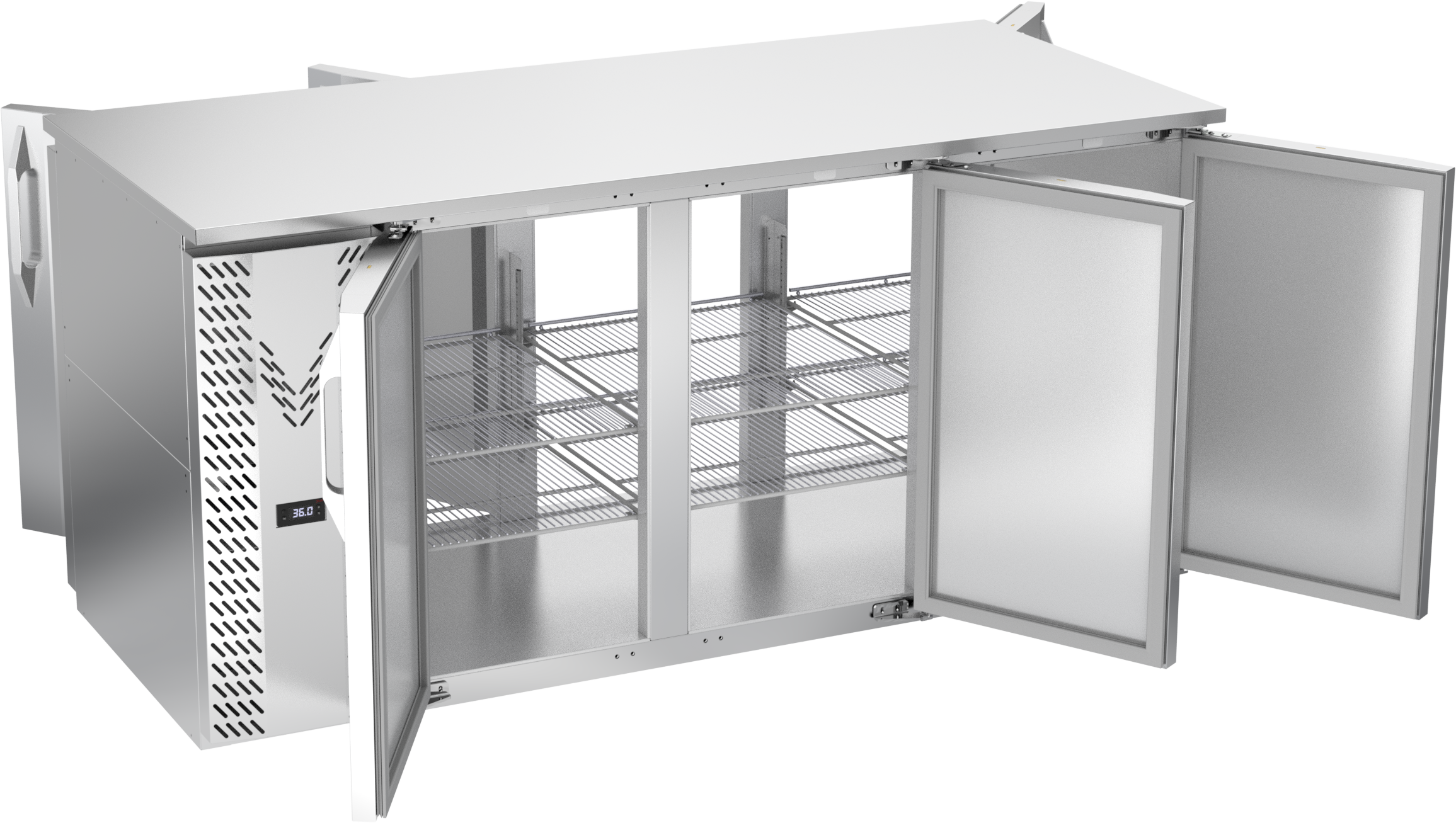 VBB72HC-F-PT-S | 72" Solid Doors Food Rated Pass-thru Back Bar in Stainless Steel