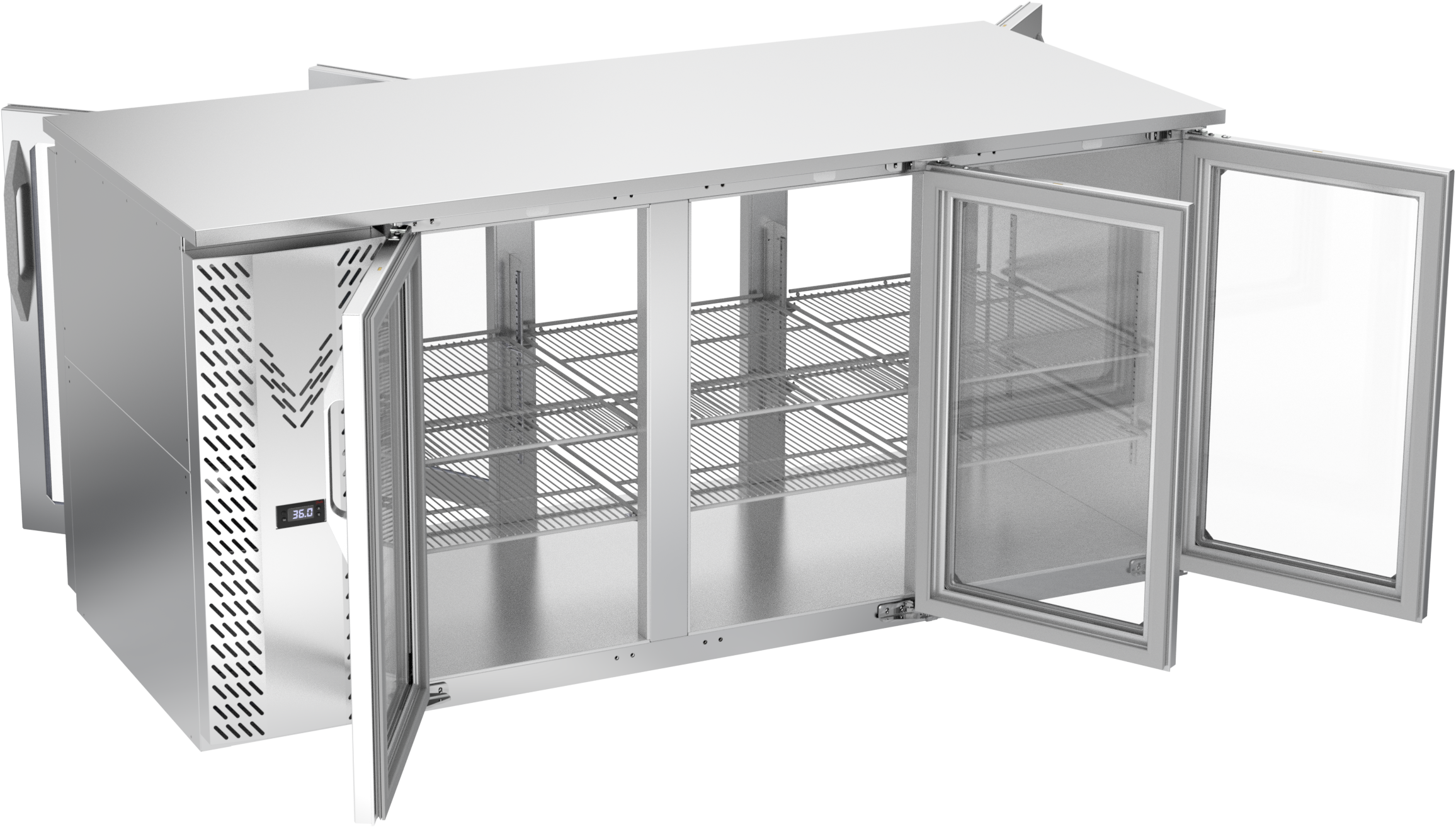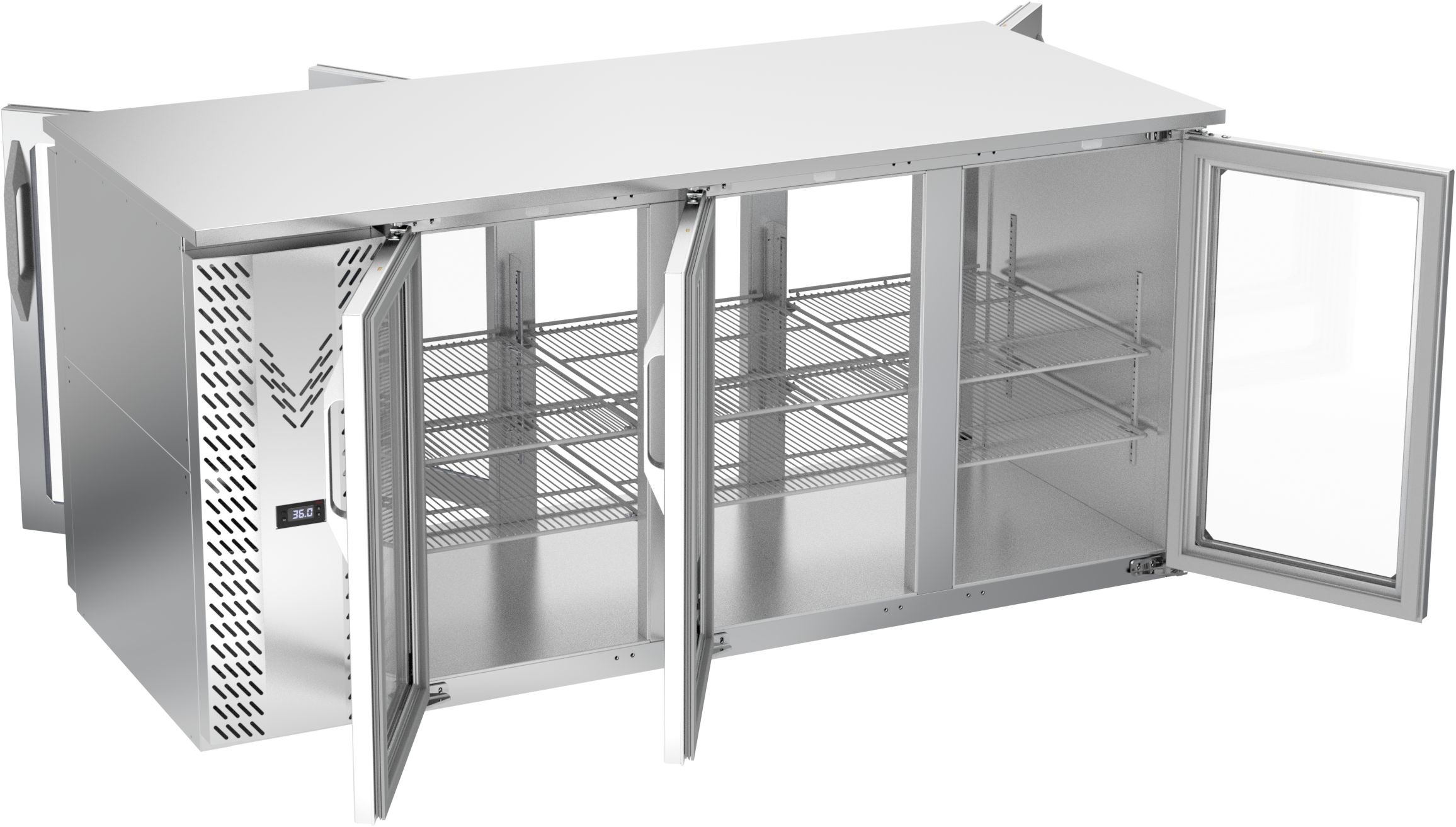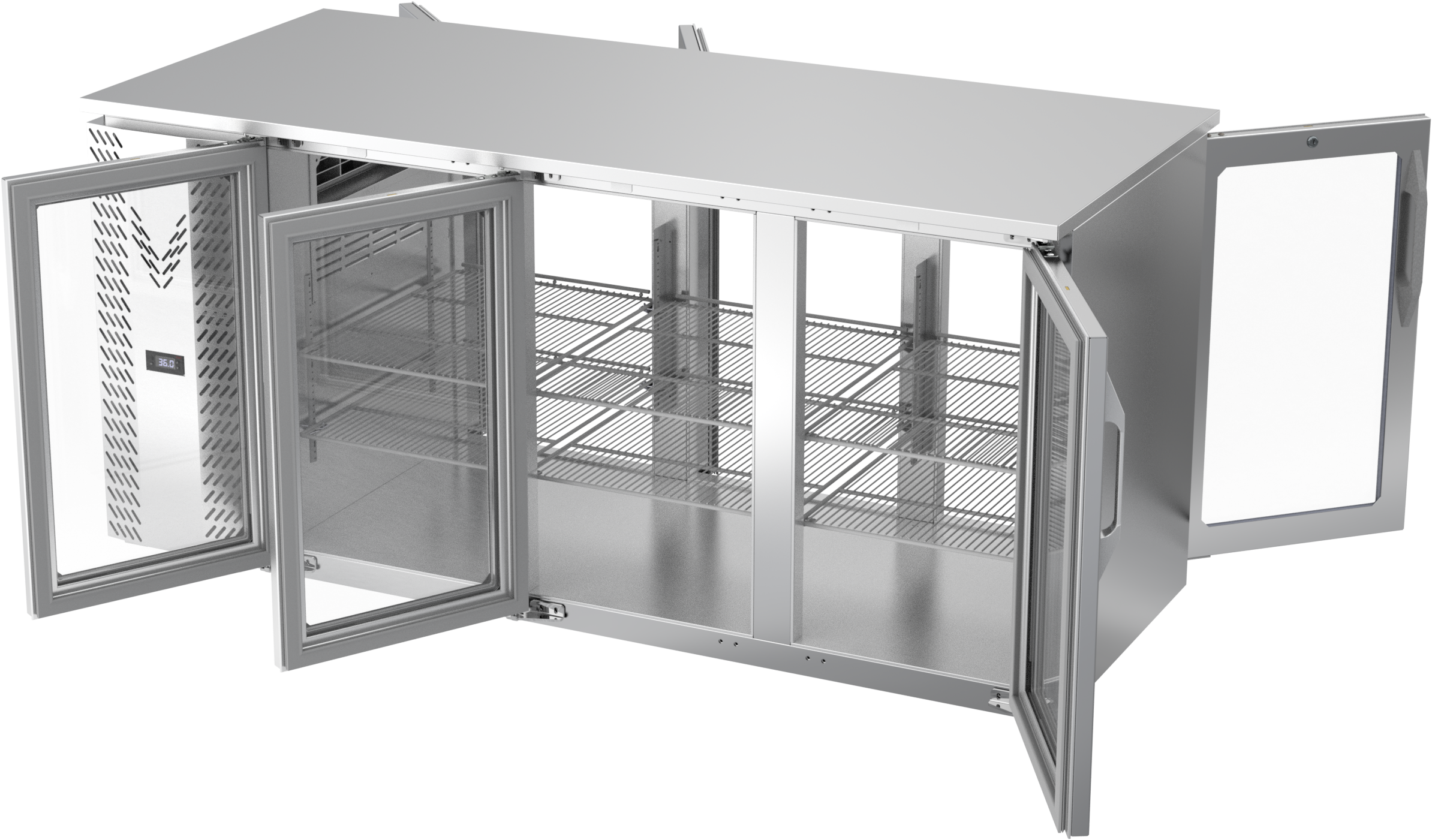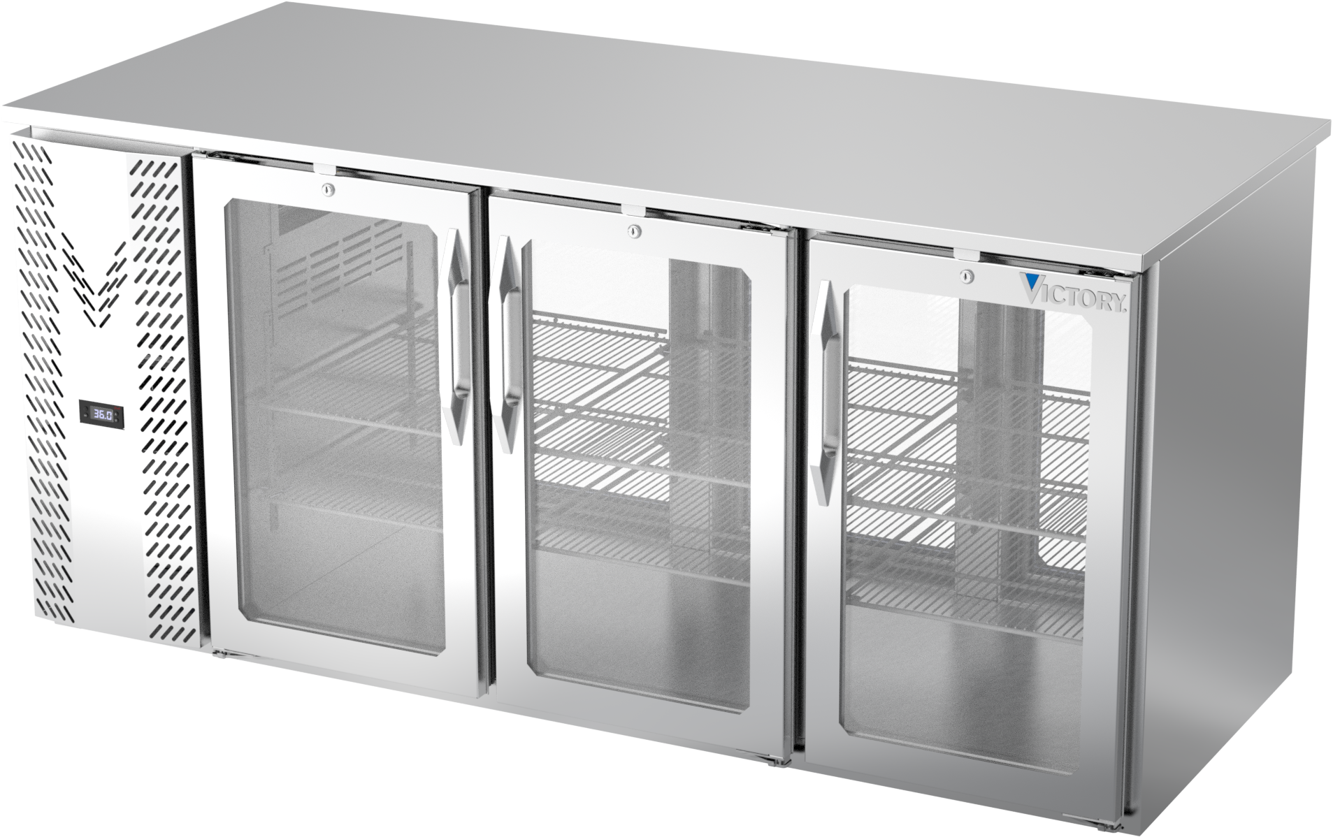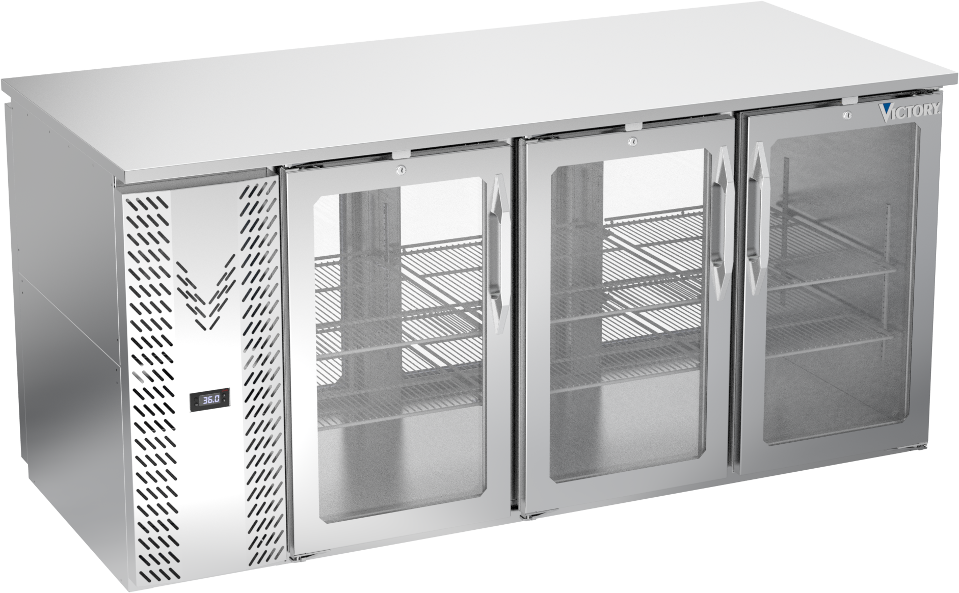 VBB72HC-FG-PT-S | 72" Glass Doors Food Rated Pass-thru Back Bar in Stainless Steel