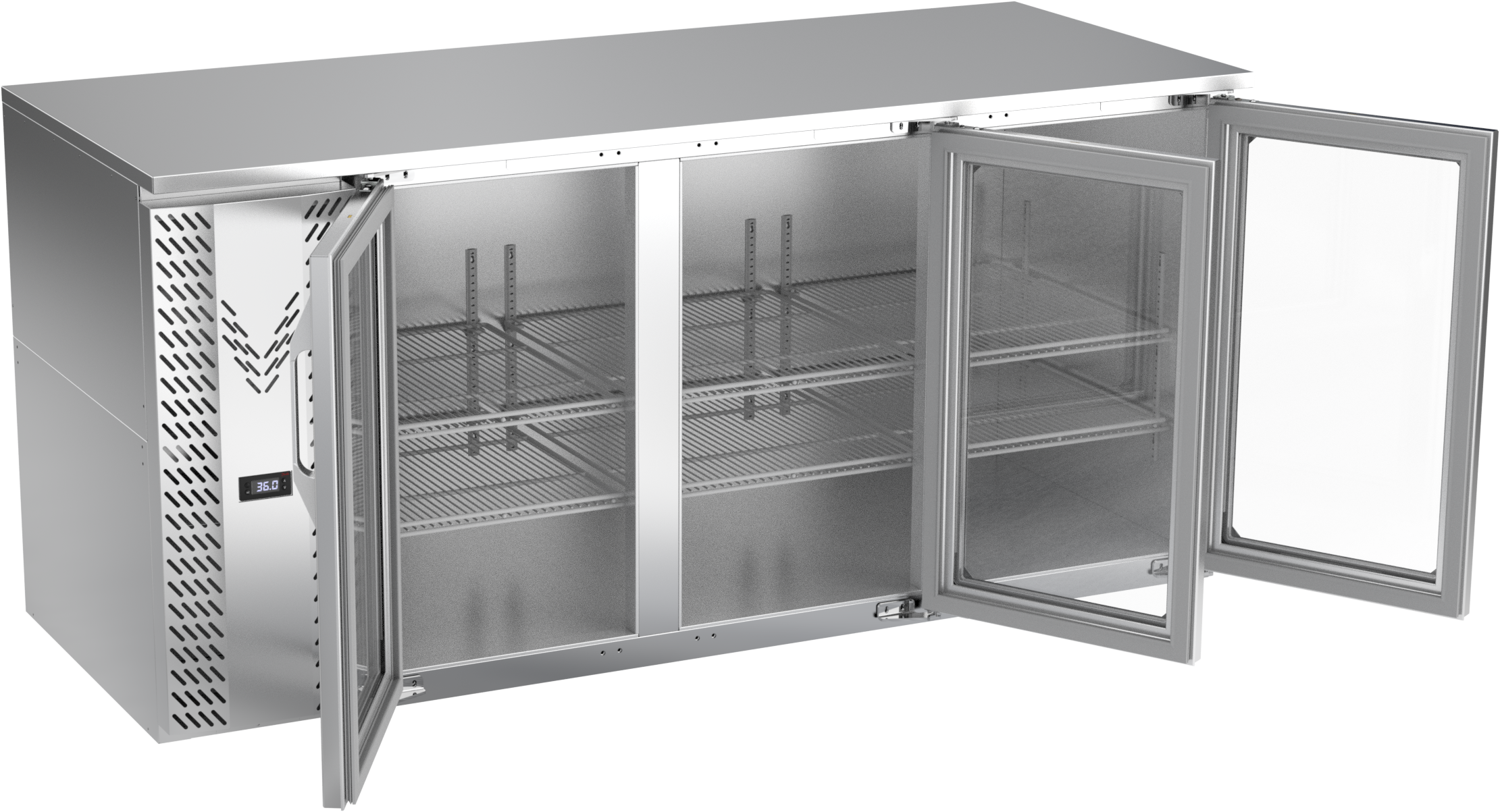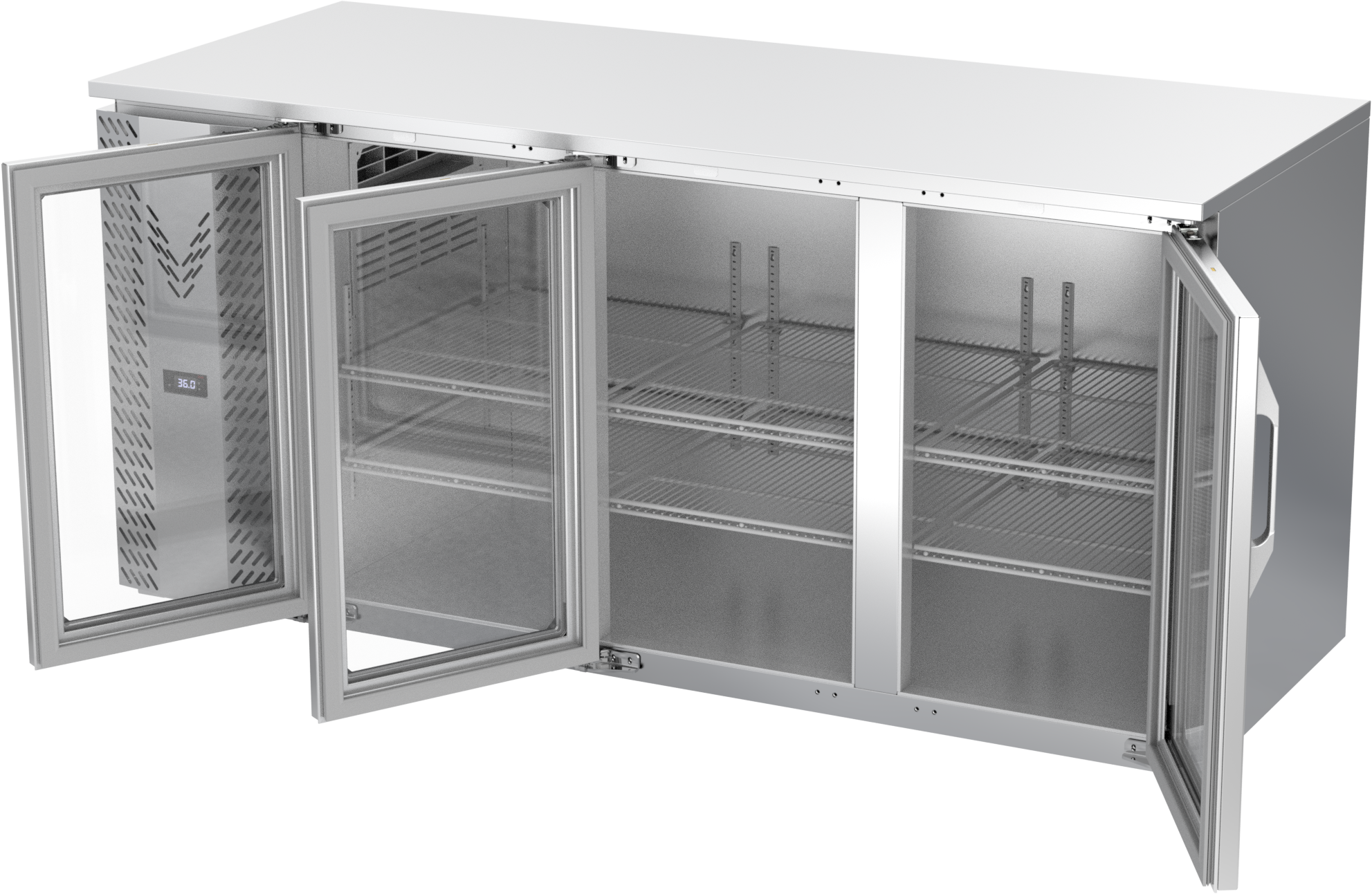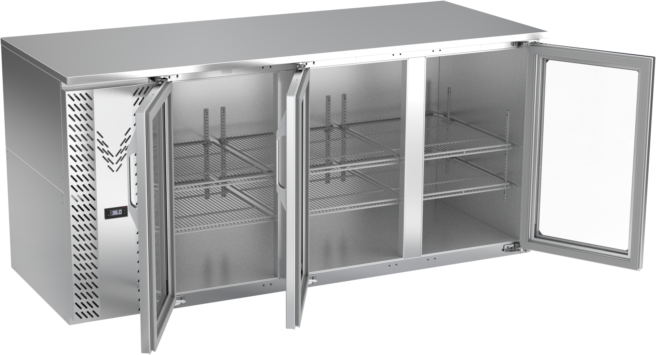 VBB72HC-FG-S | 72" Glass Doors Food Rated Back Bar in Stainless Steel