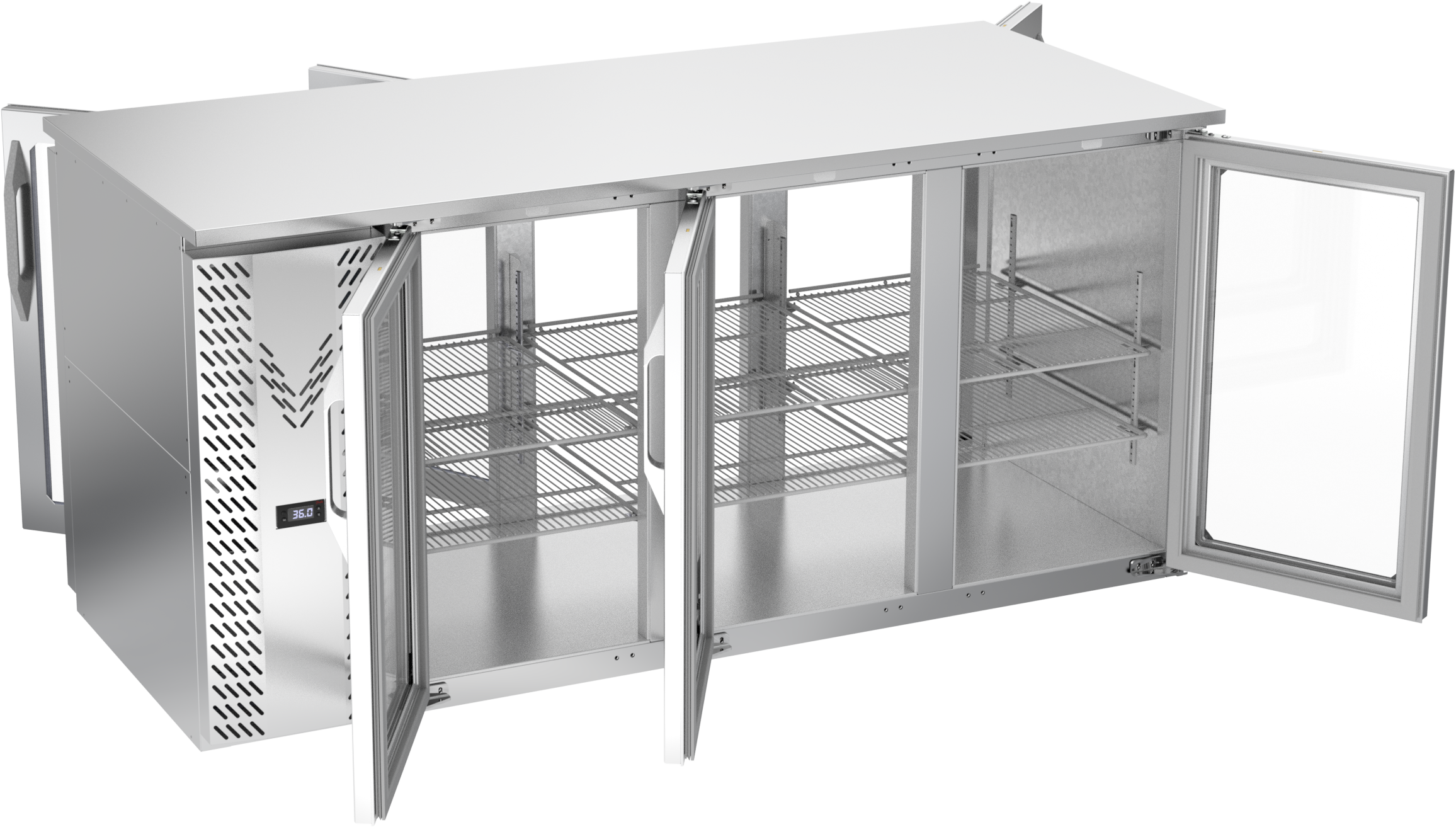 VBB72HC-G-PT-S | 72" Glass Doors Pass-thru Back Bar in Stainless Steel