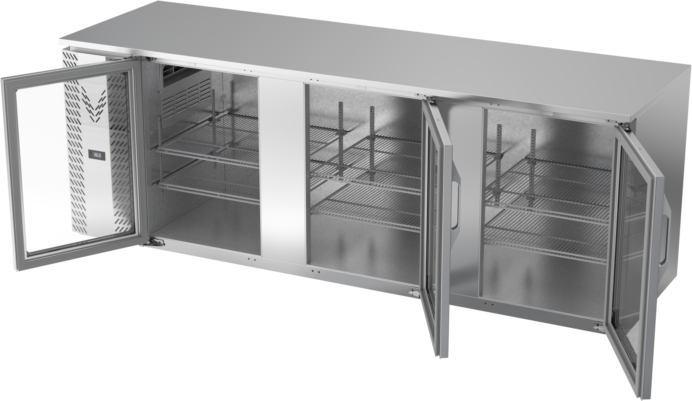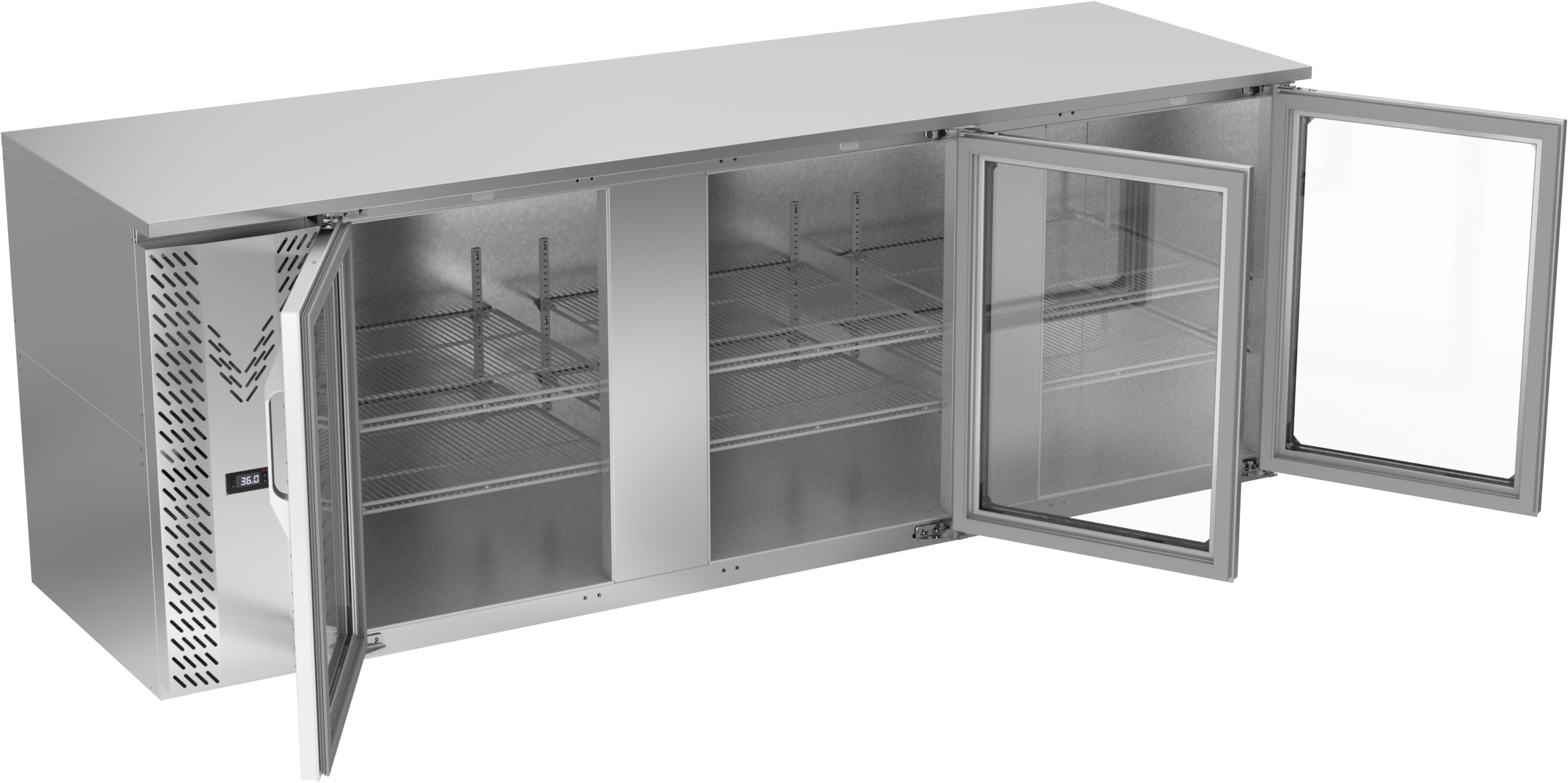 VBB94HC-G-S | 94" Glass Doors Back Bar in Stainless Steel