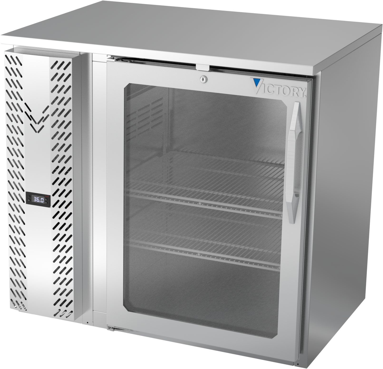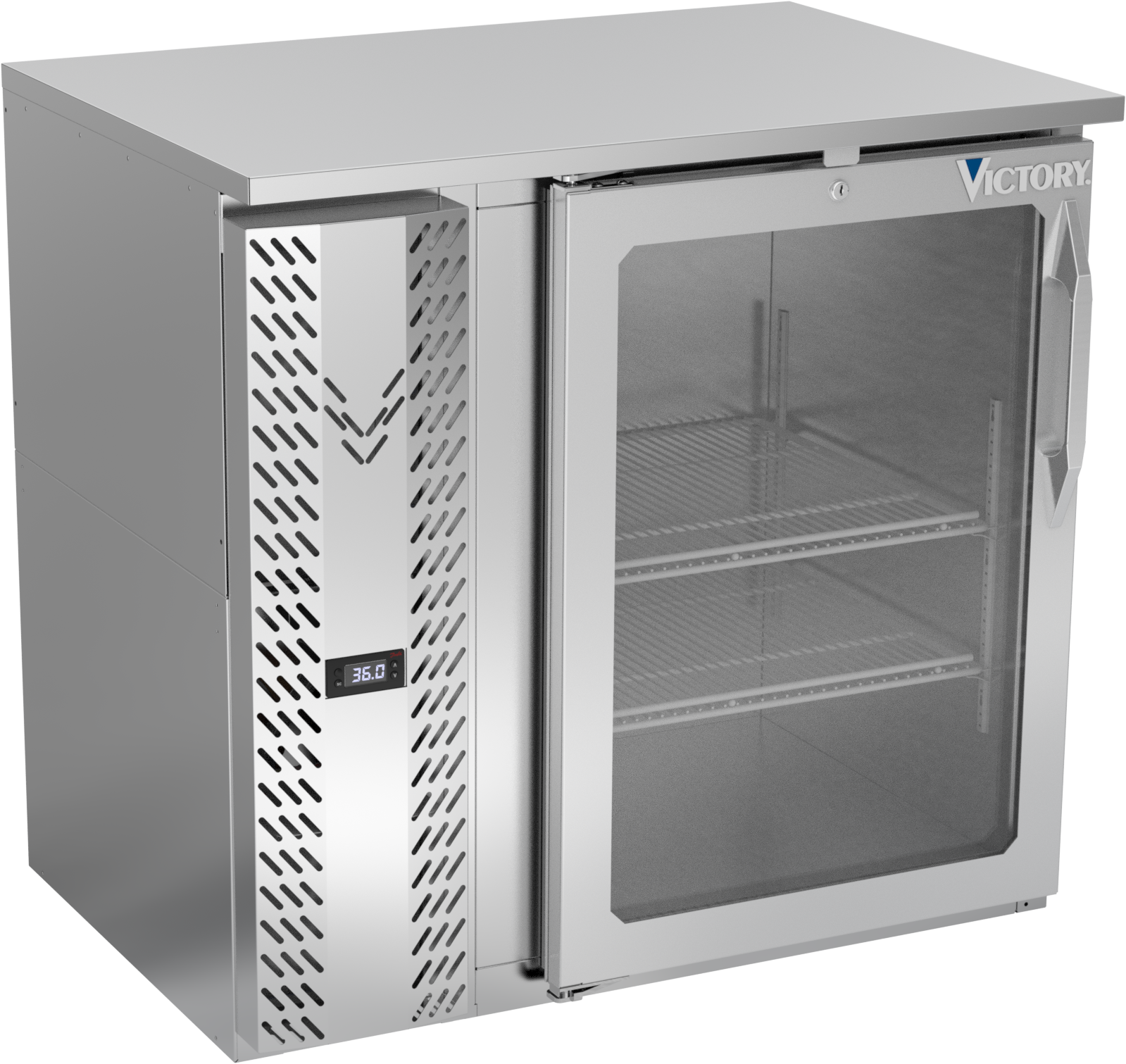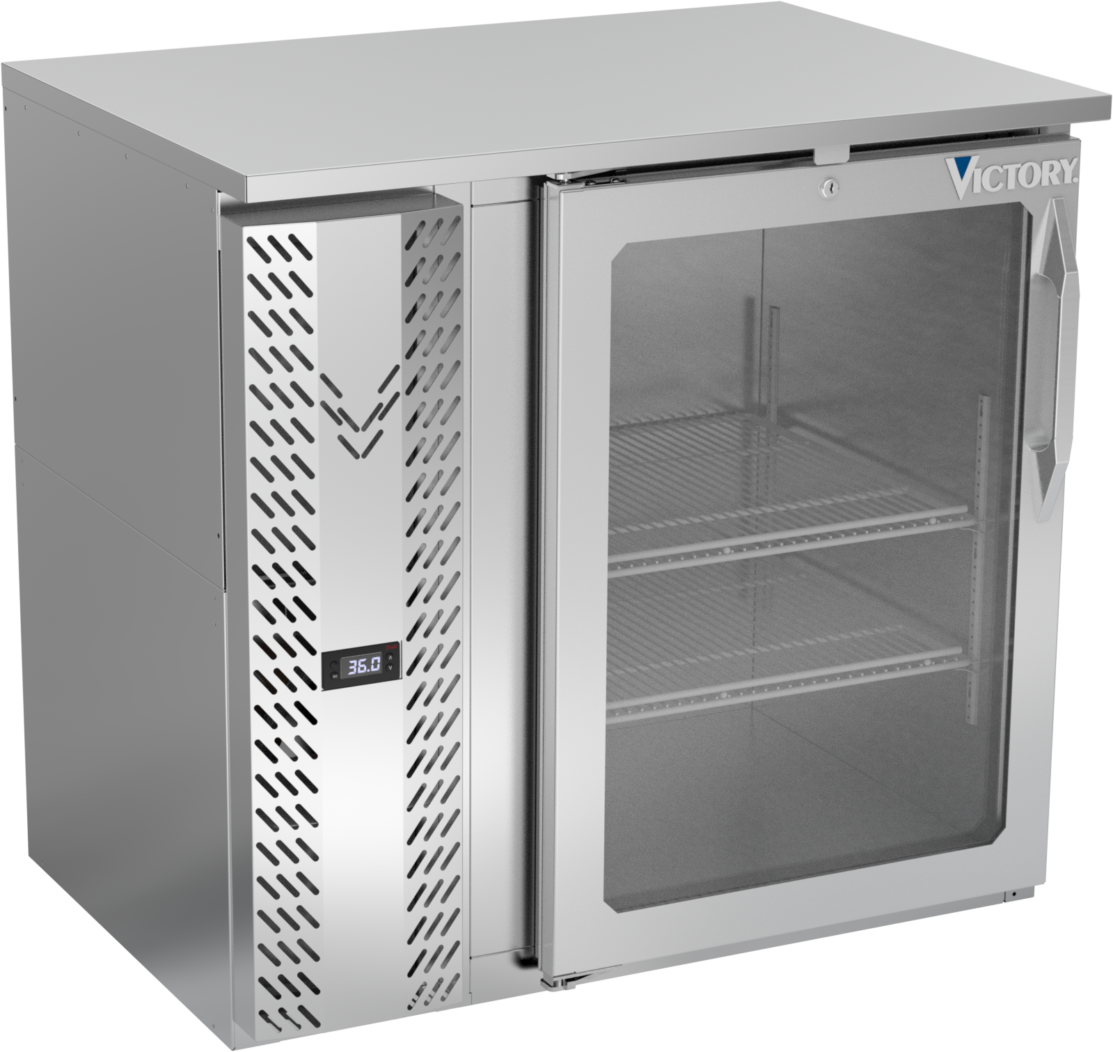 VBBN36HC-FG-S | 36" Narrow Depth Glass Door Food Rated Back Bar in Stainless Steel