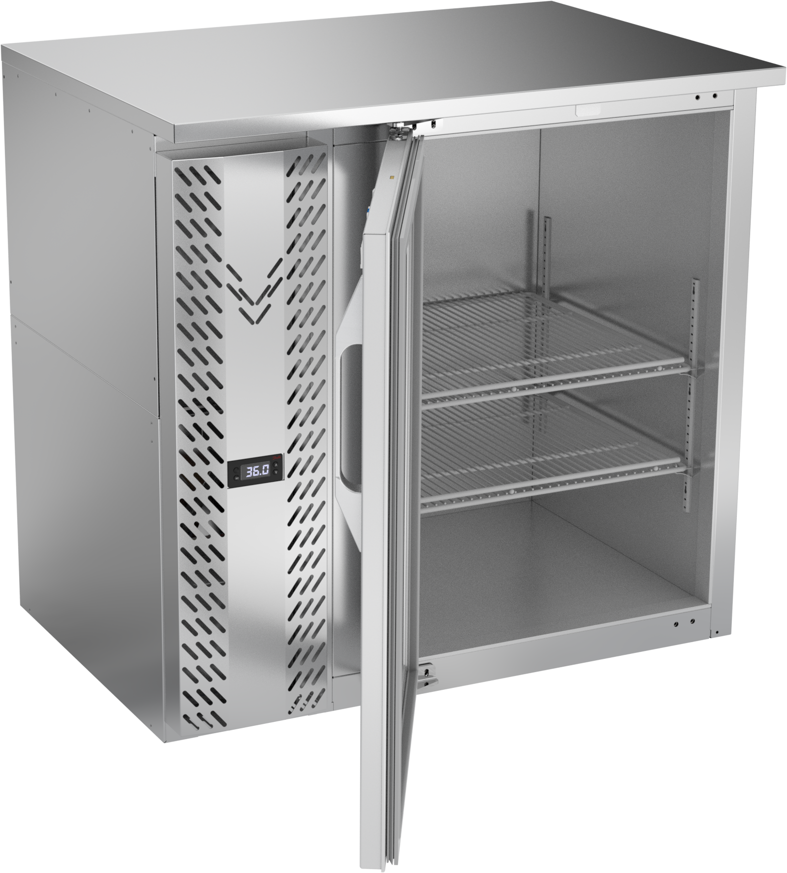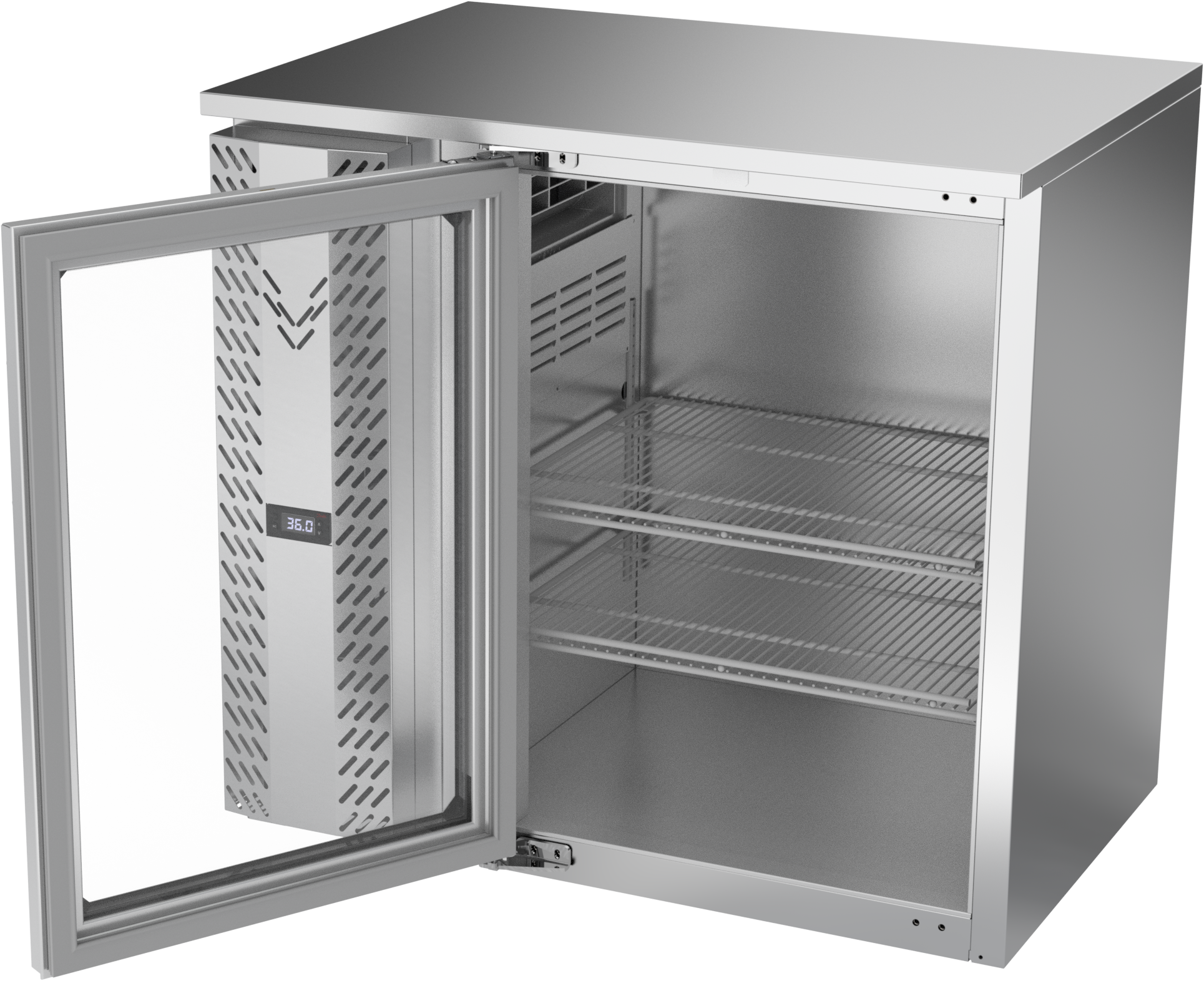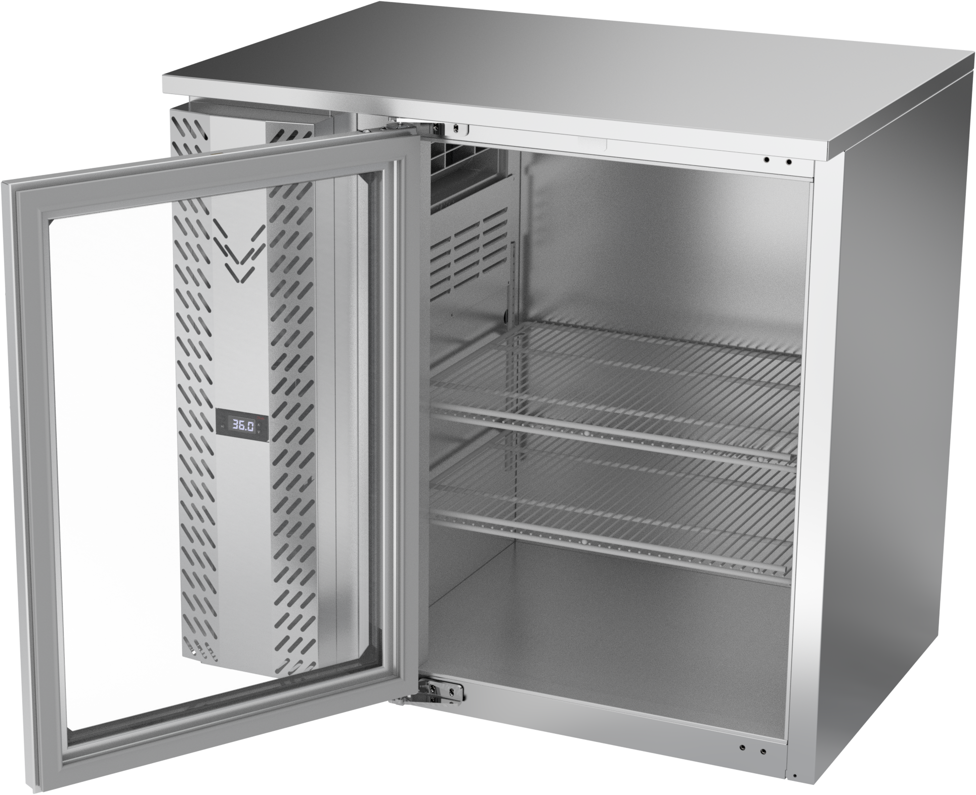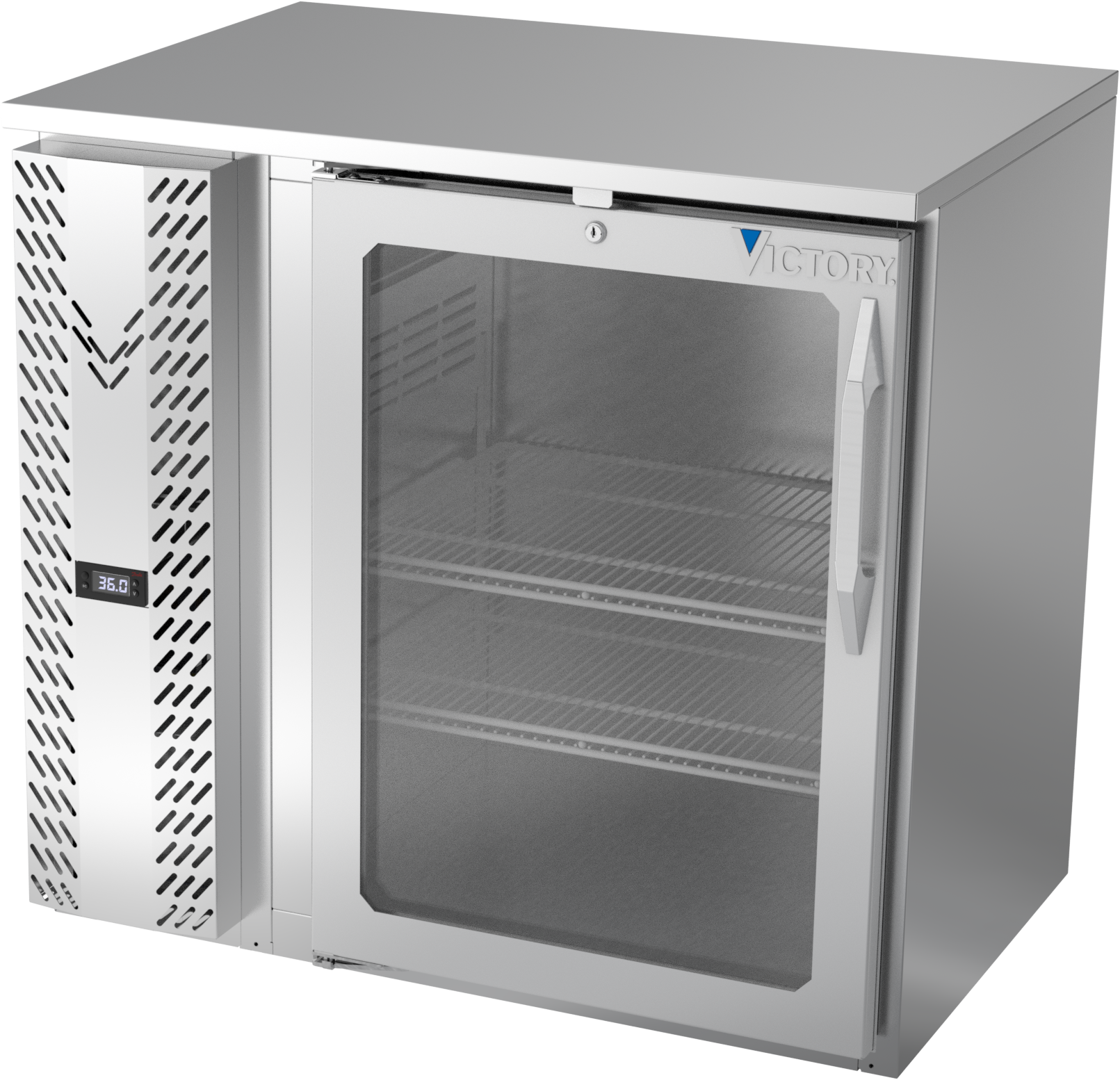 VBBN36HC-FG-S | 36" Narrow Depth Glass Door Food Rated Back Bar in Stainless Steel