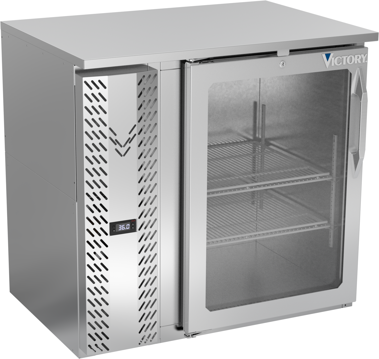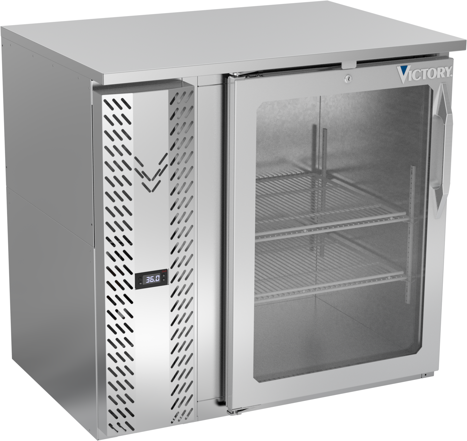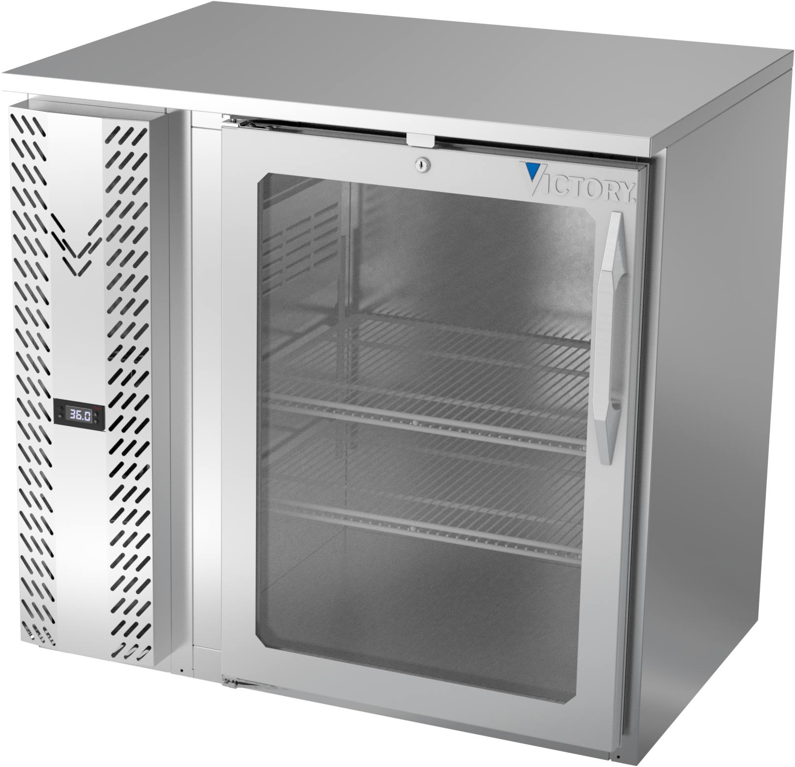 VBBN36HC-G-S | 36" Narrow Depth Glass Door Back Bar in Stainless Steel
