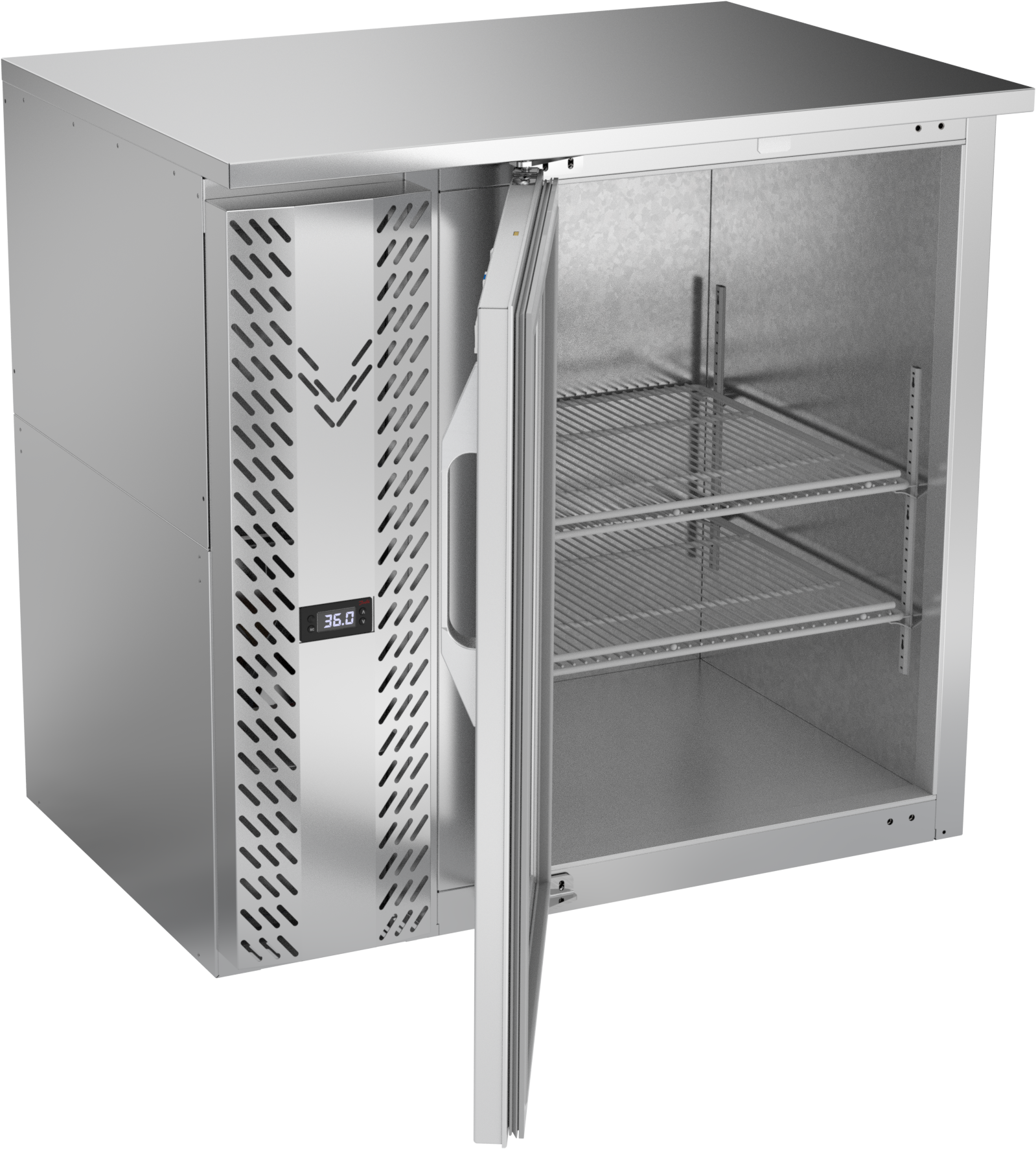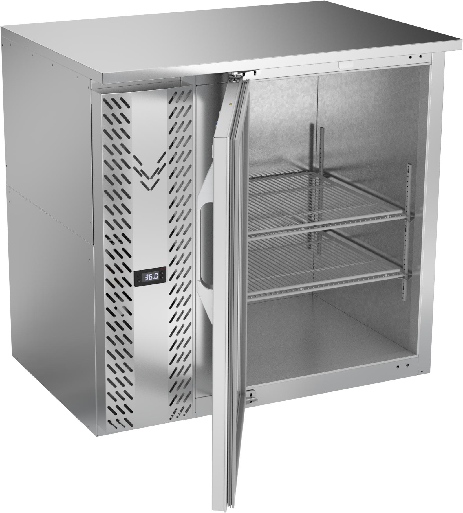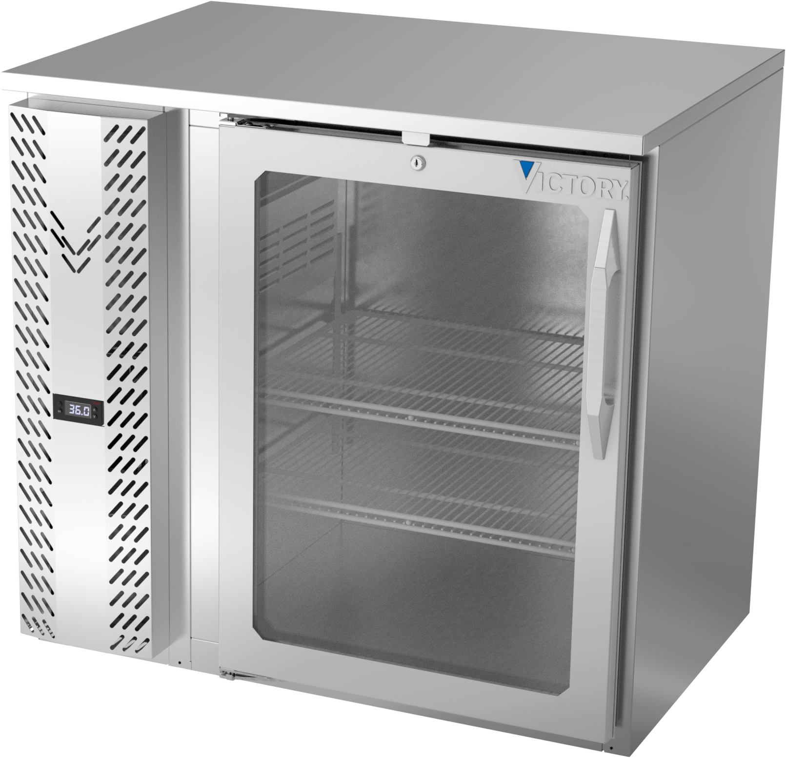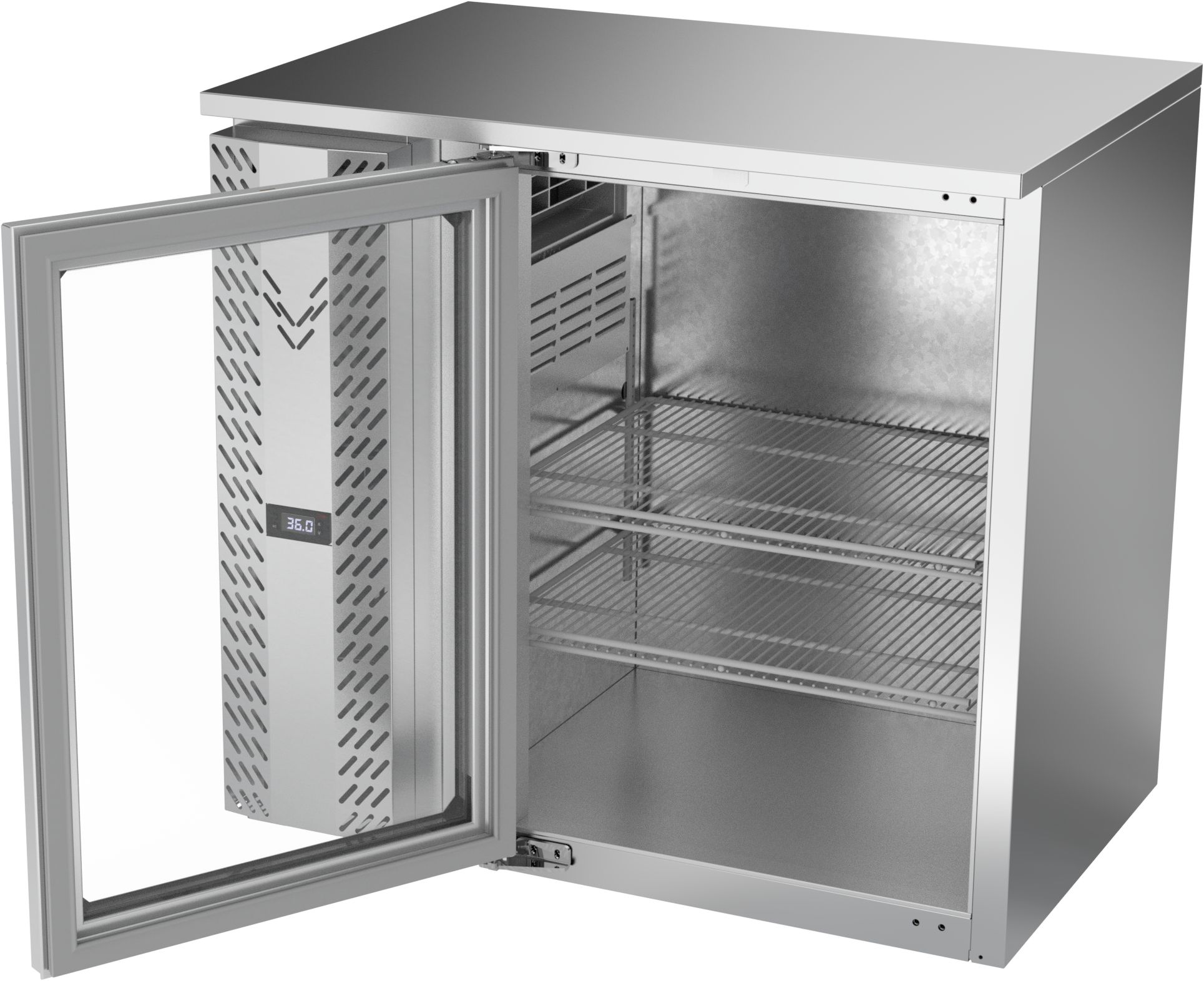 VBBN36HC-G-S | 36" Narrow Depth Glass Door Back Bar in Stainless Steel