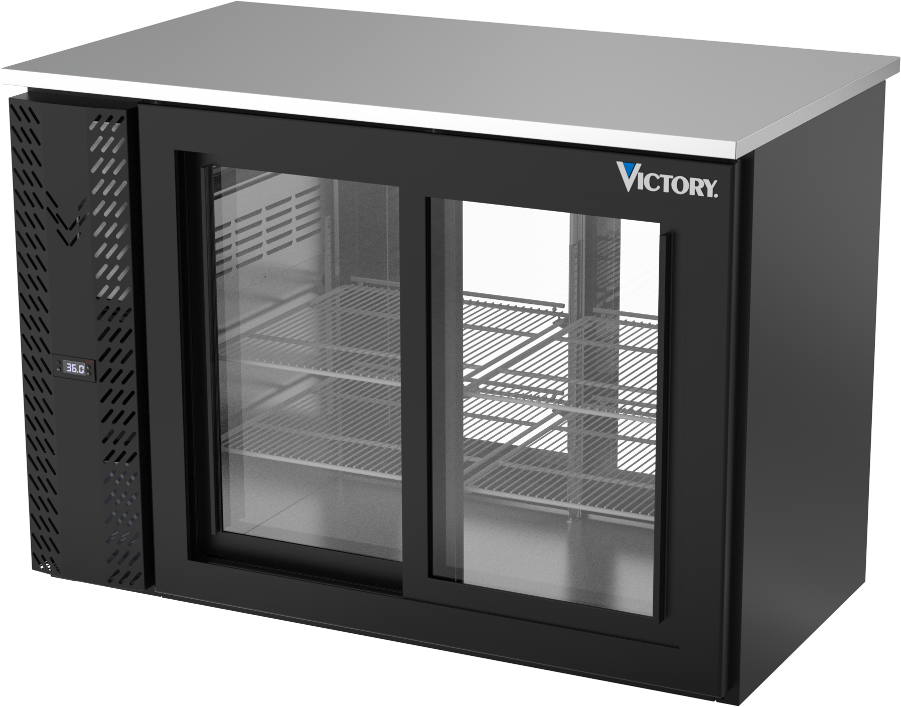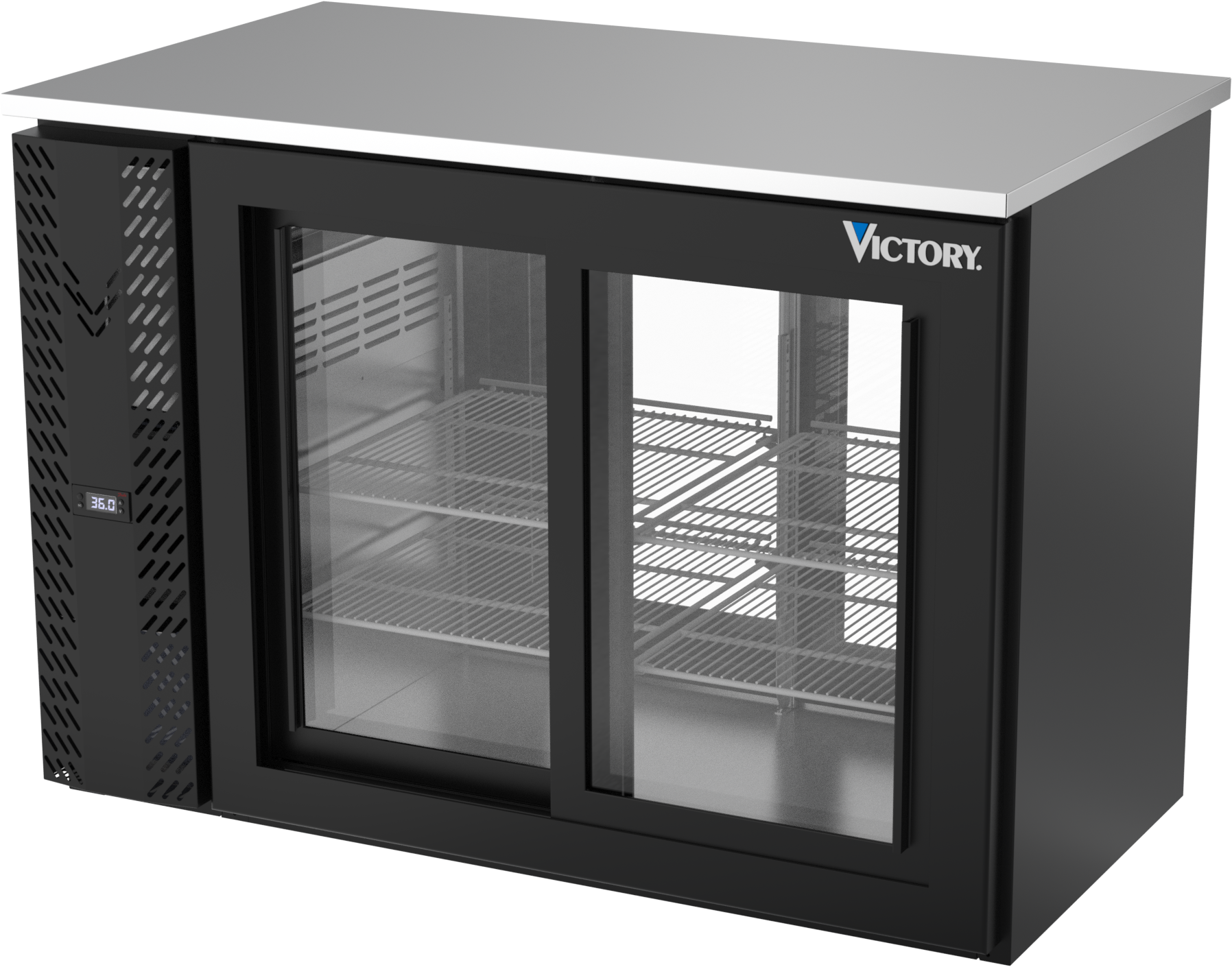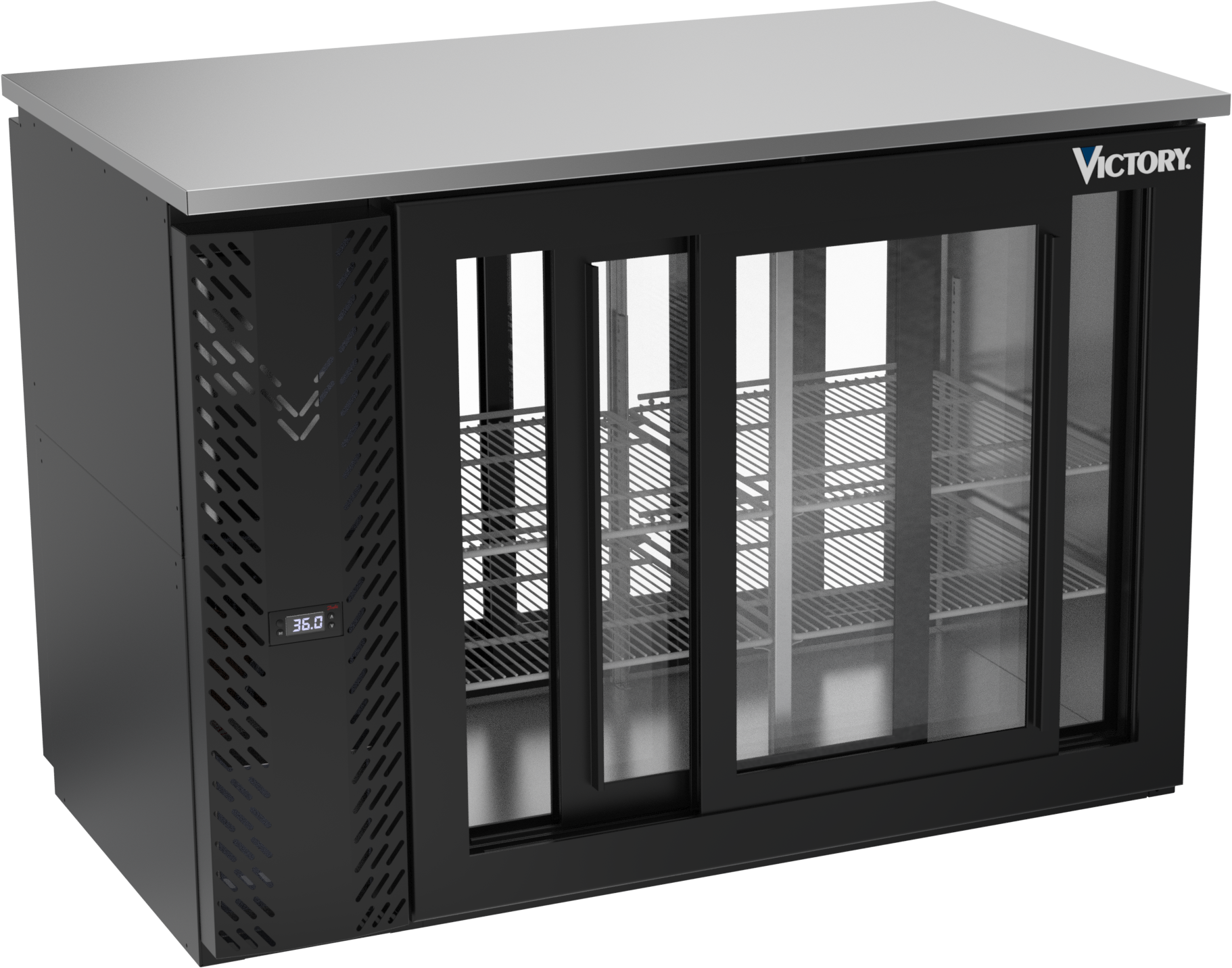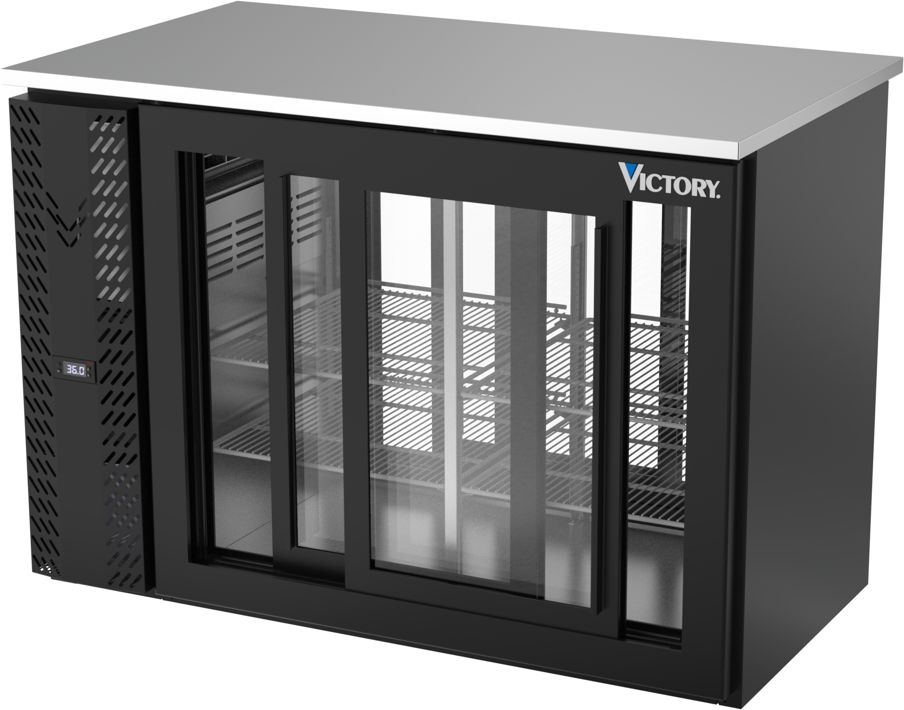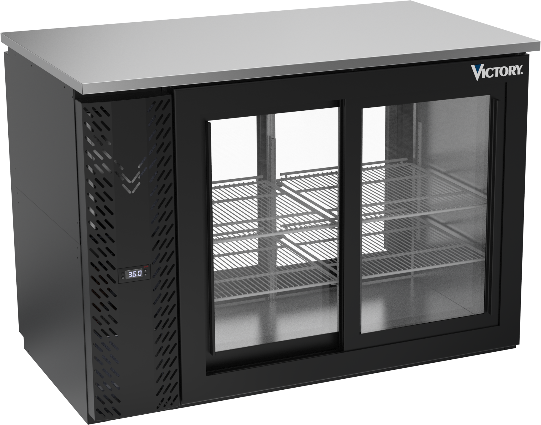 VBBN48HC-F-GS-PT-B | 48" Narrow Depth Sliding Glass Doors Food Rated Pass-thru Back Bar in Black