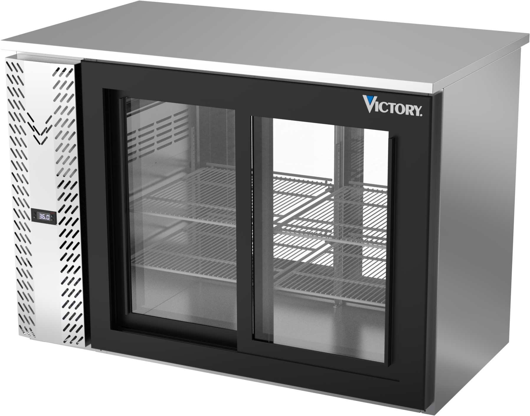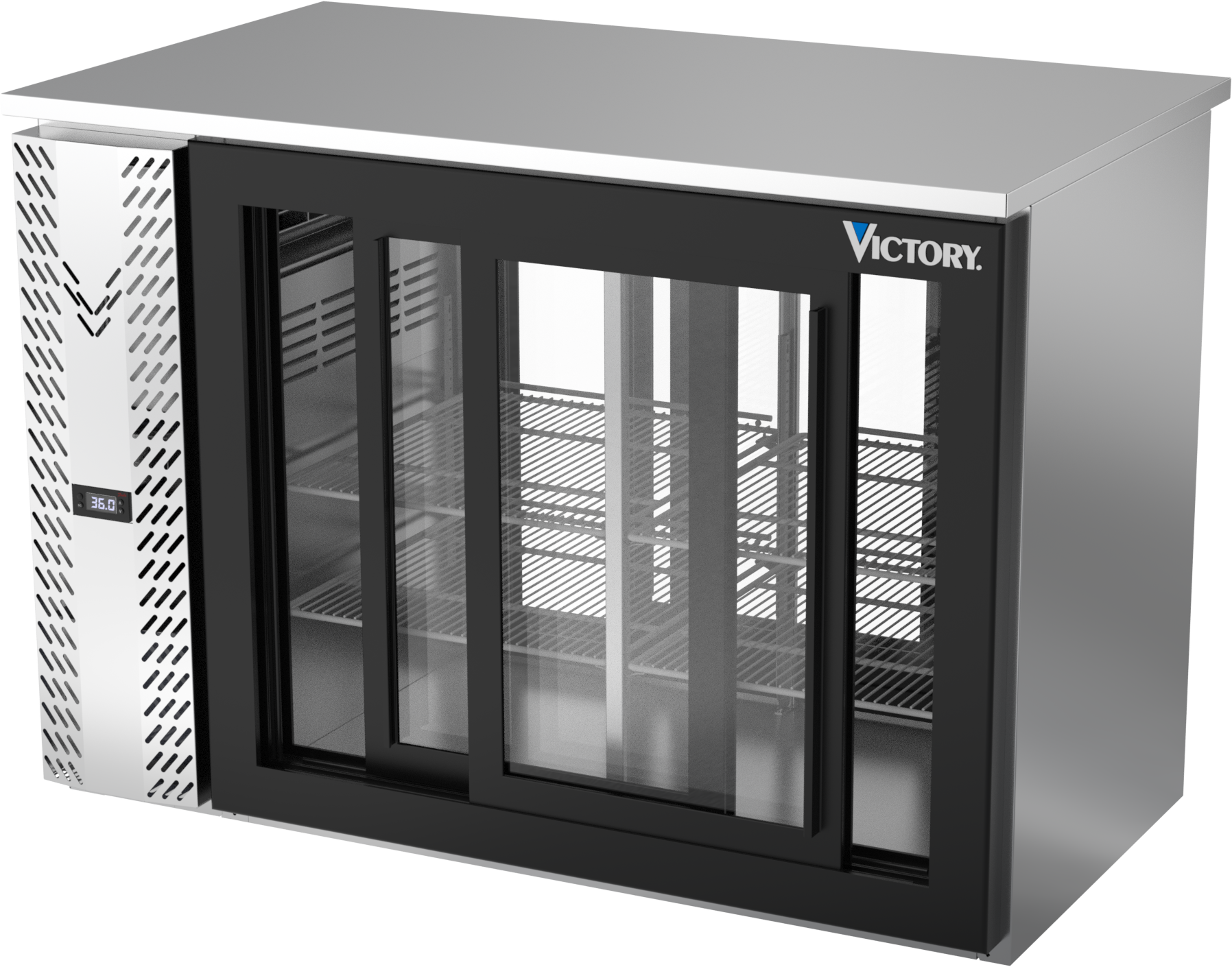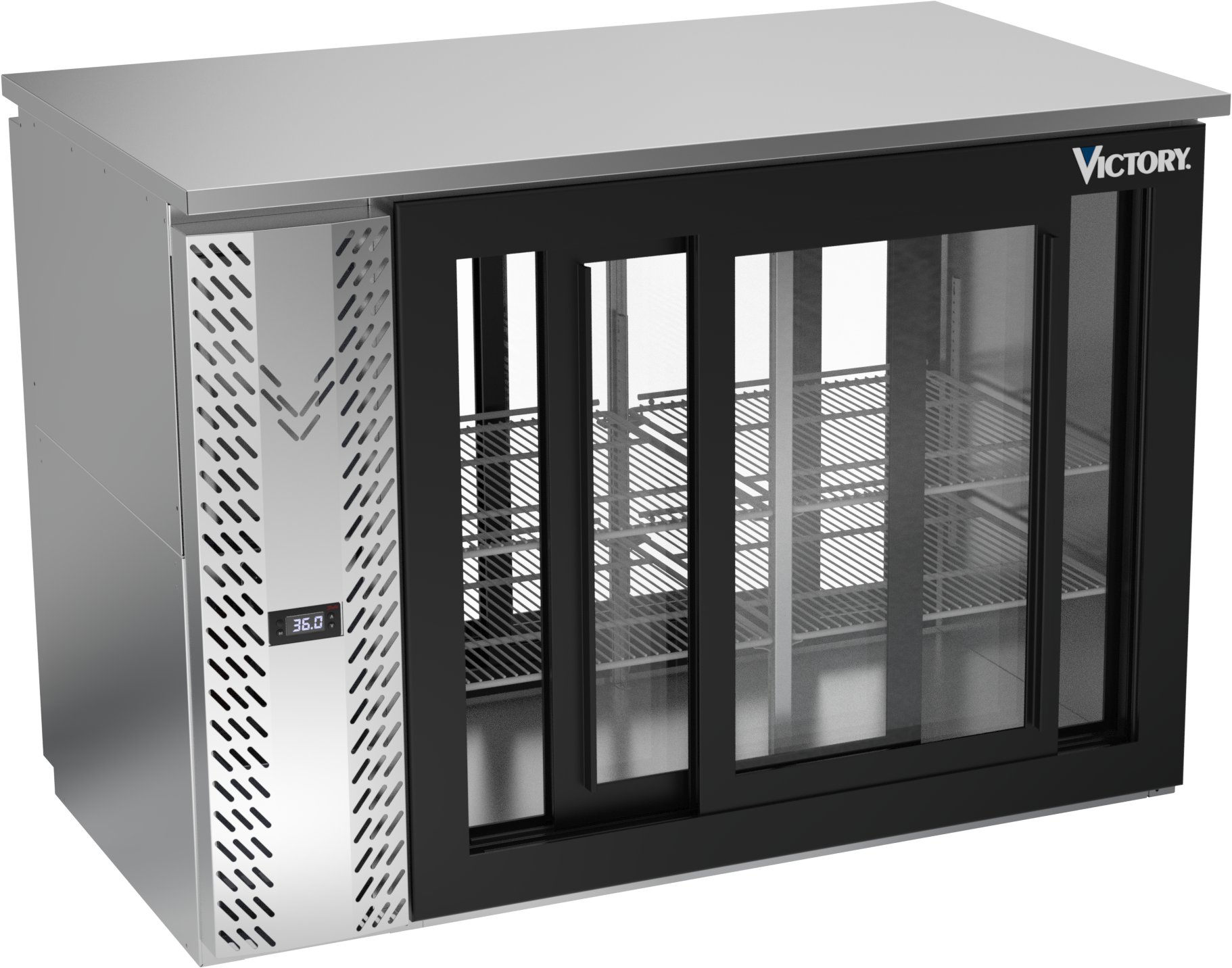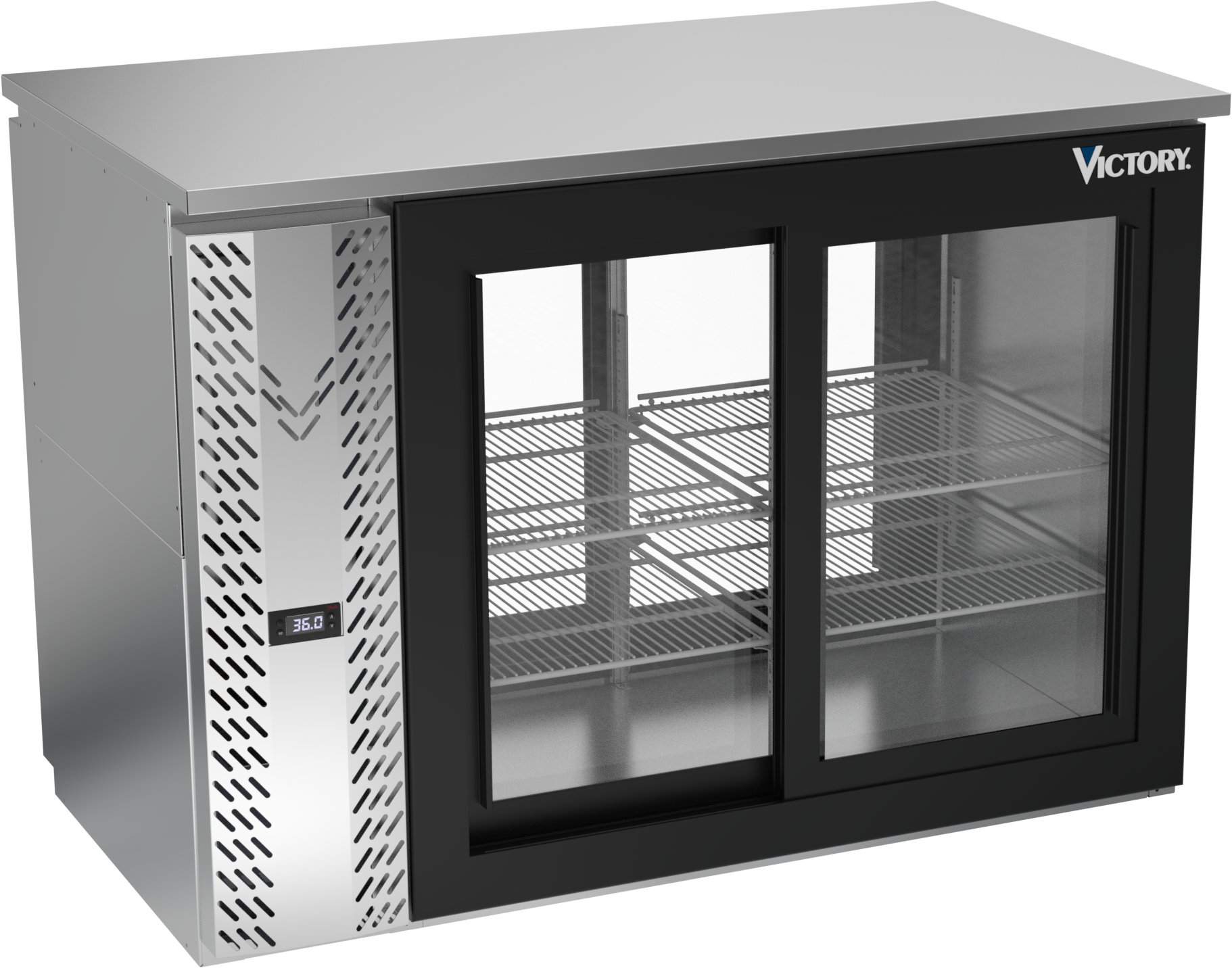 VBBN48HC-F-GS-PT-S | 48" Narrow Depth Sliding Glass Doors Food Rated Pass-thru Back Bar in Stainless Steel