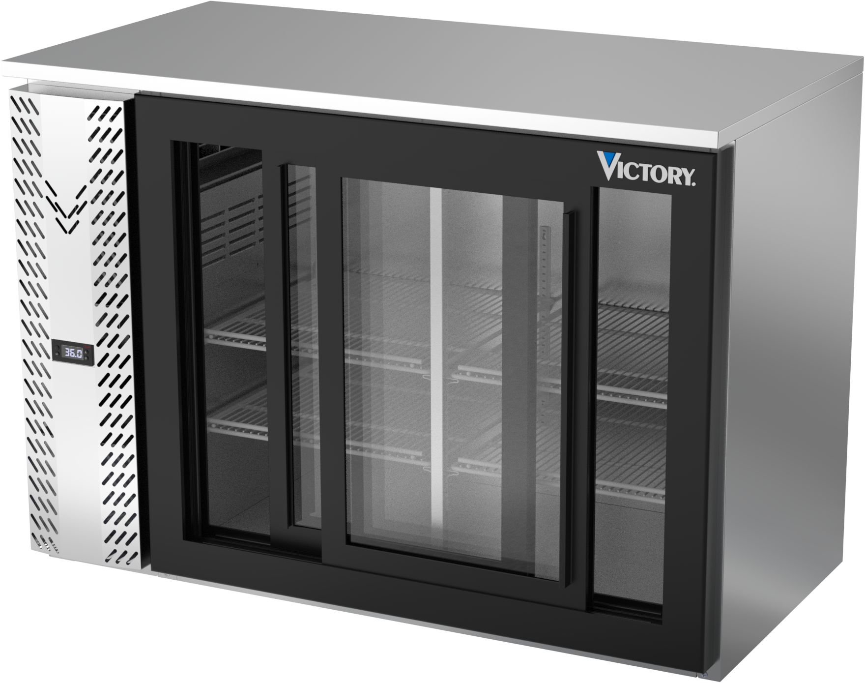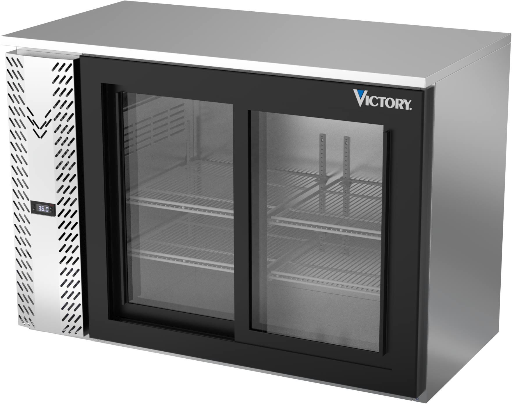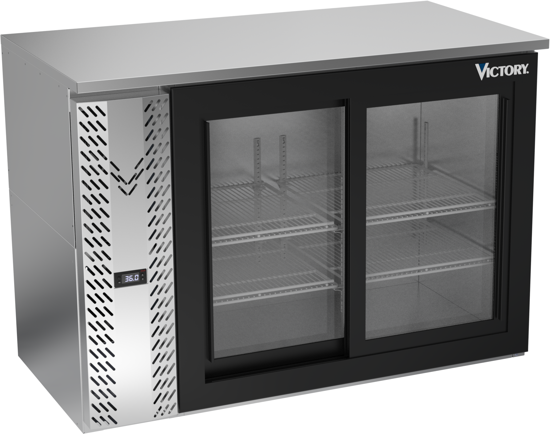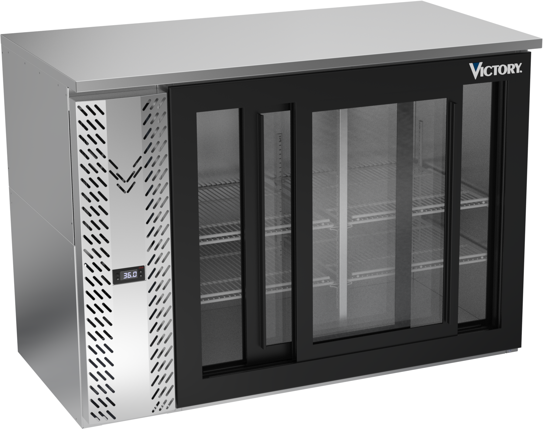 VBBN48HC-F-GS-S | 48" Narrow Depth Sliding Glass Doors Food Rated Back Bar in Stainless Steel