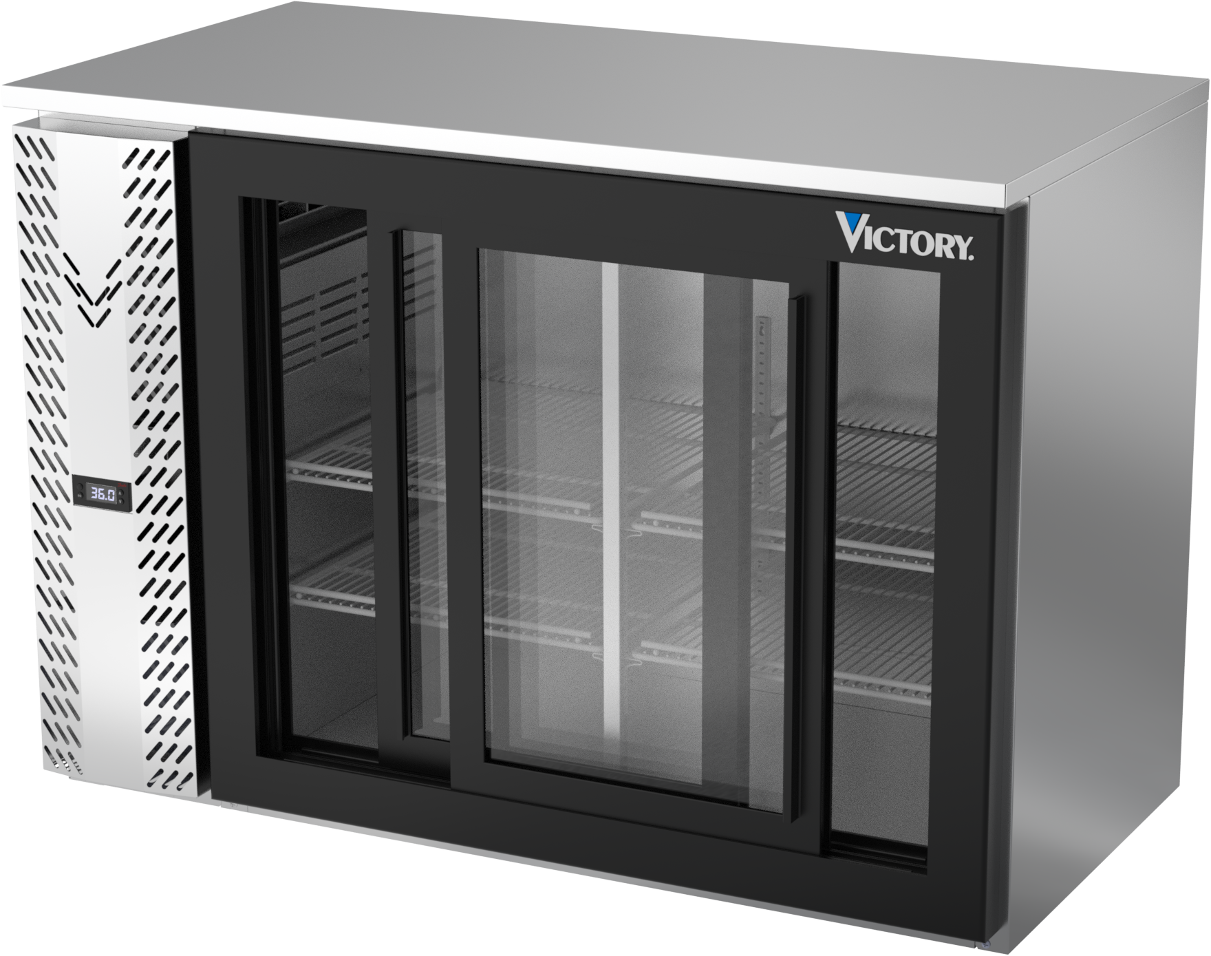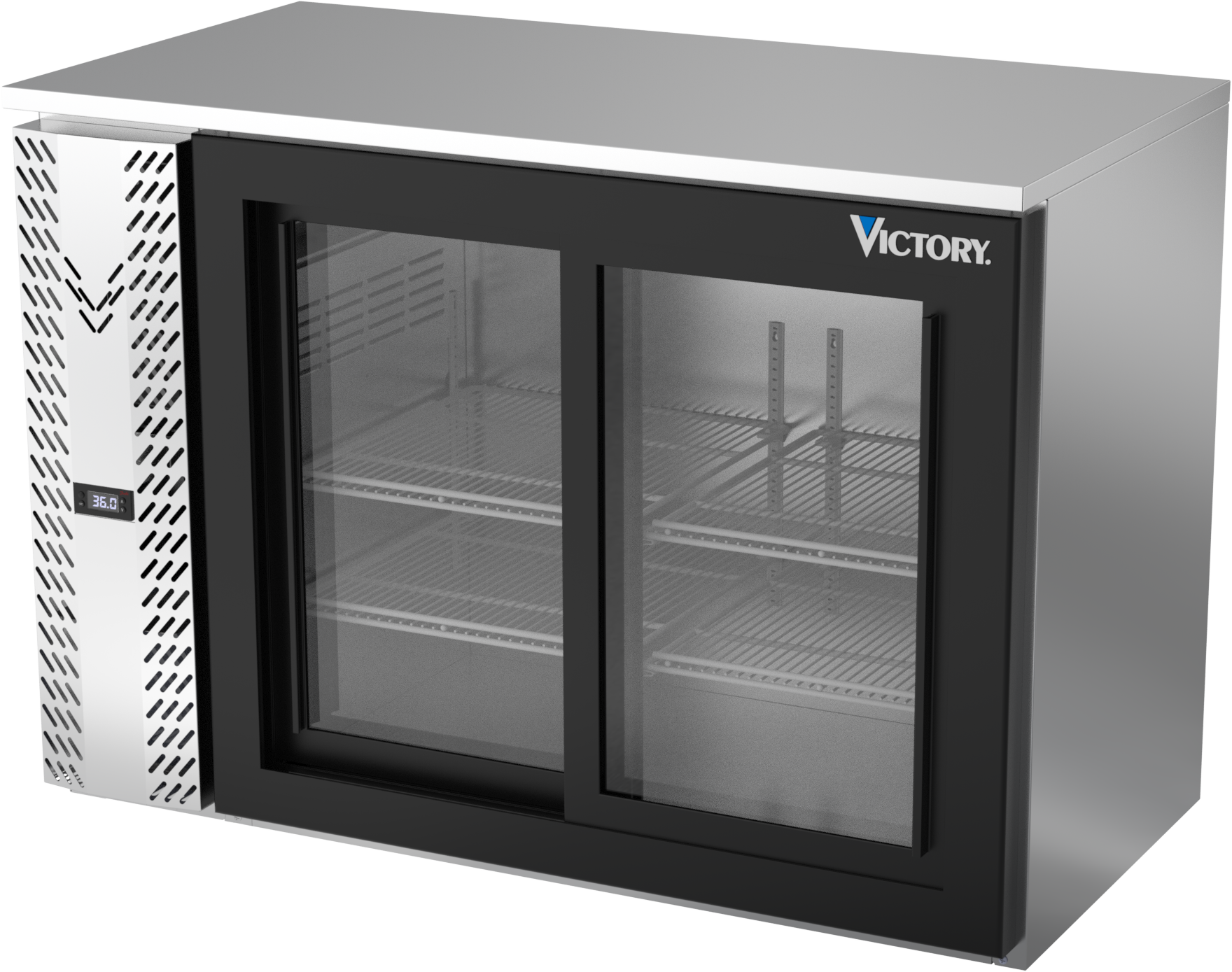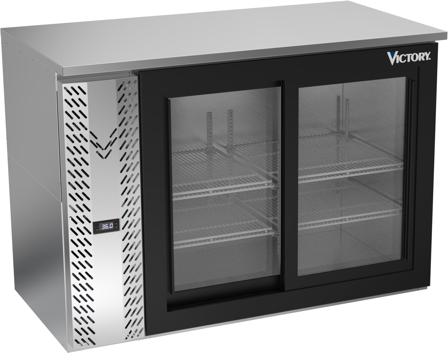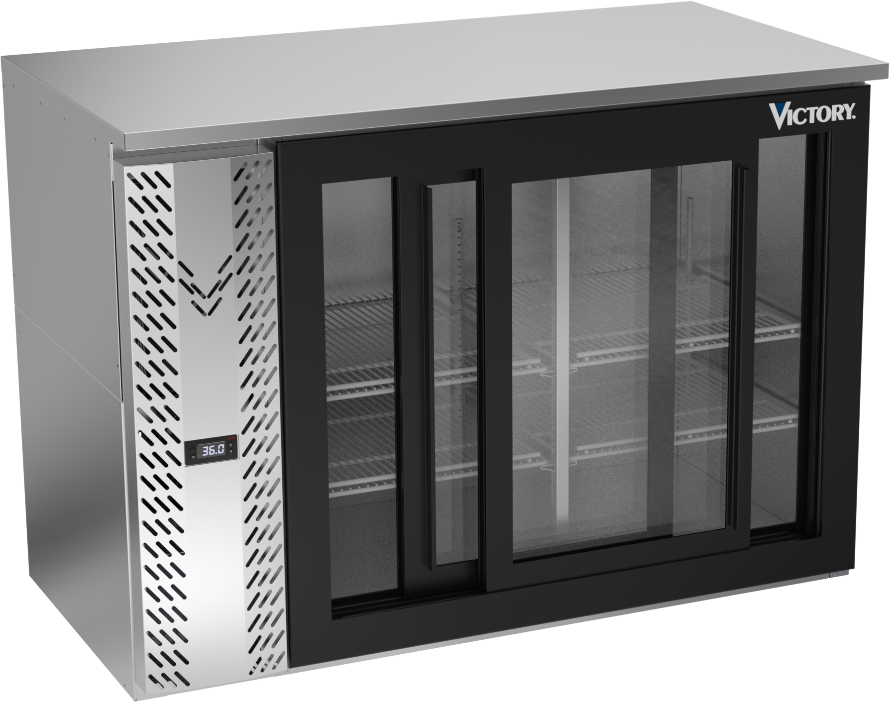 VBBN48HC-F-GS-S | 48" Narrow Depth Sliding Glass Doors Food Rated Back Bar in Stainless Steel