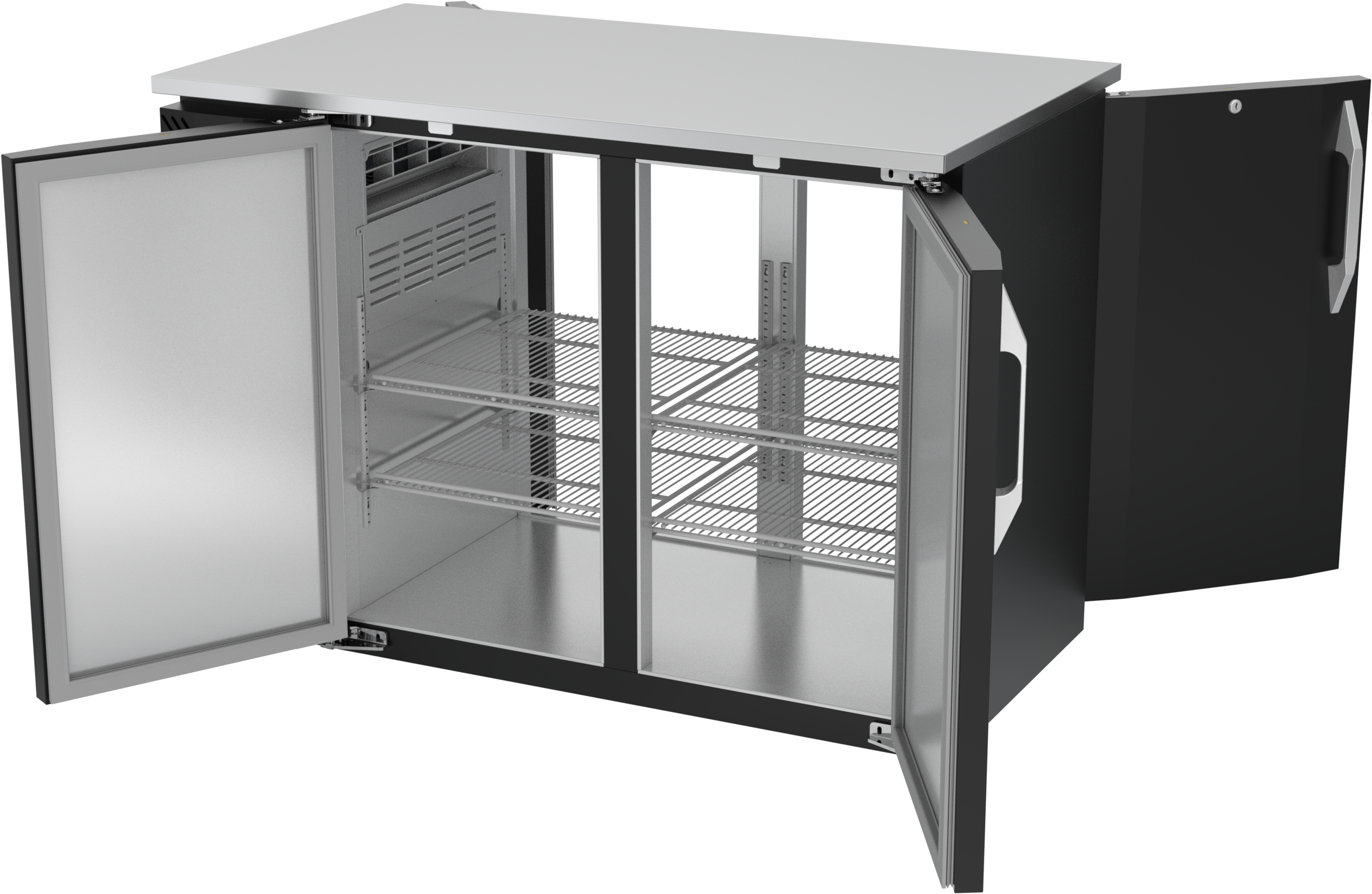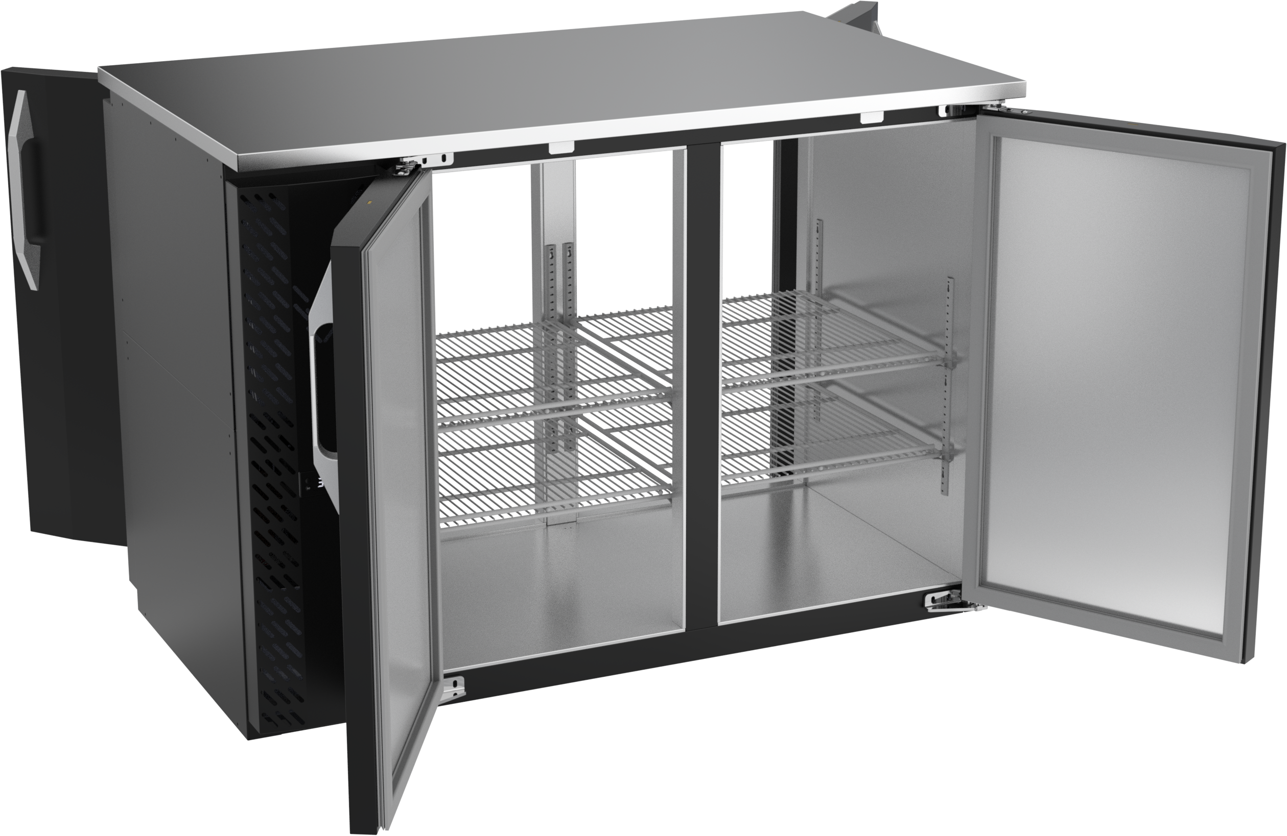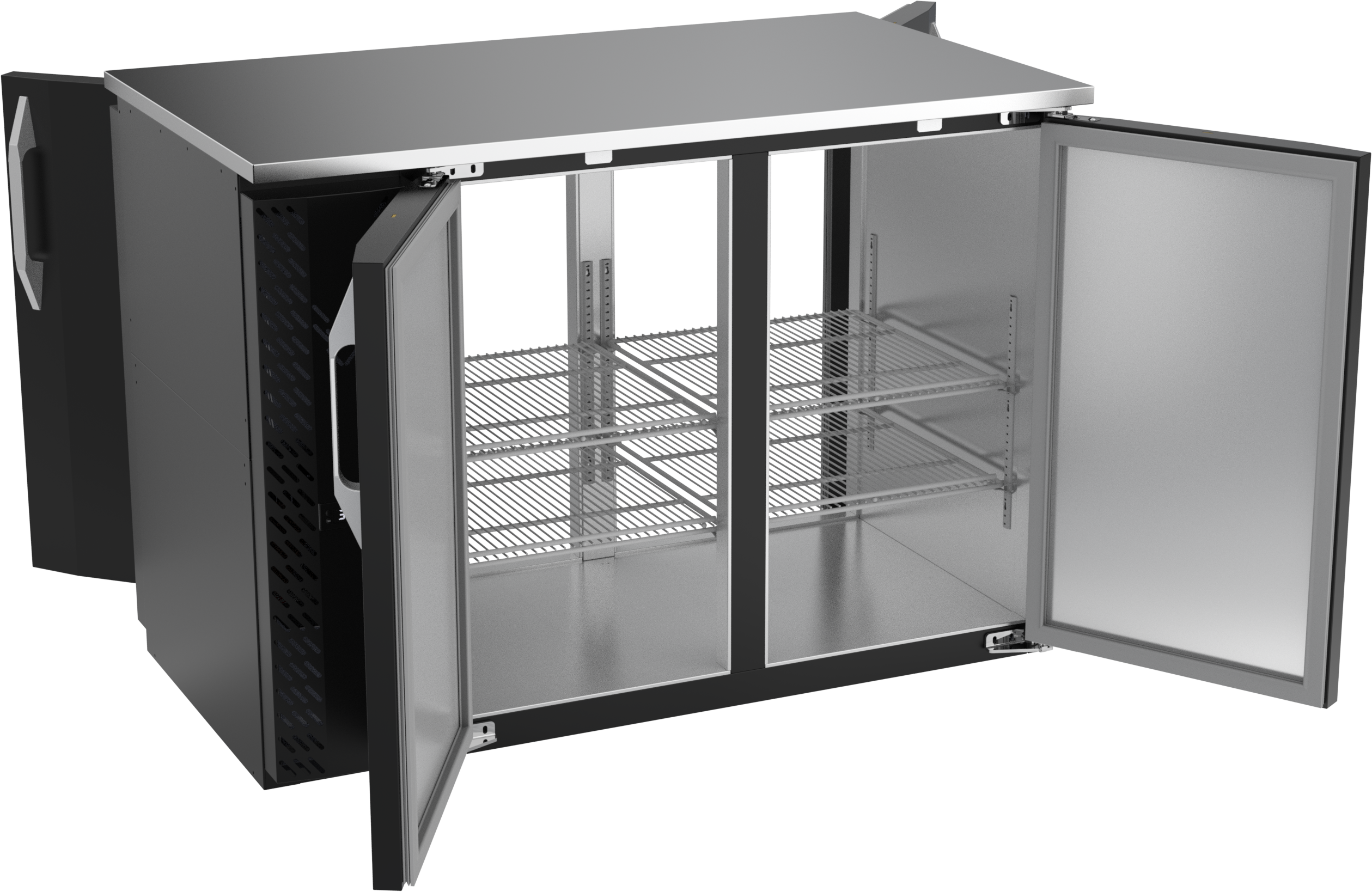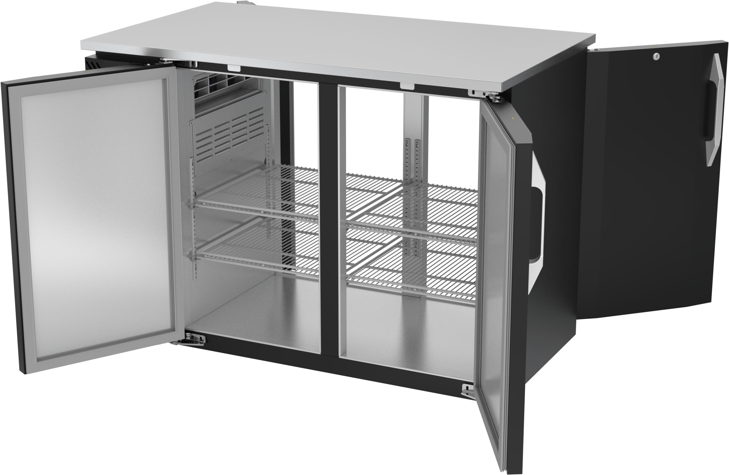 VBBN48HC-F-PT-B | 48" Narrow Depth Solid Doors Food Rated Pass-thru Back Bar in Black