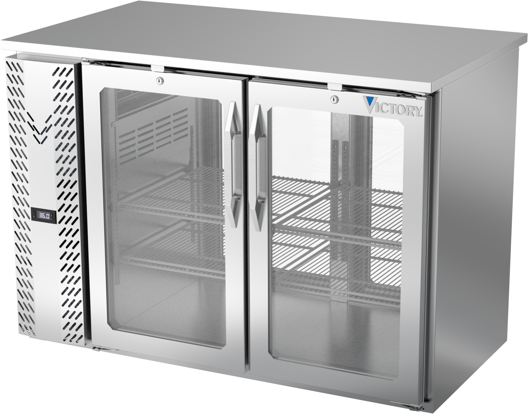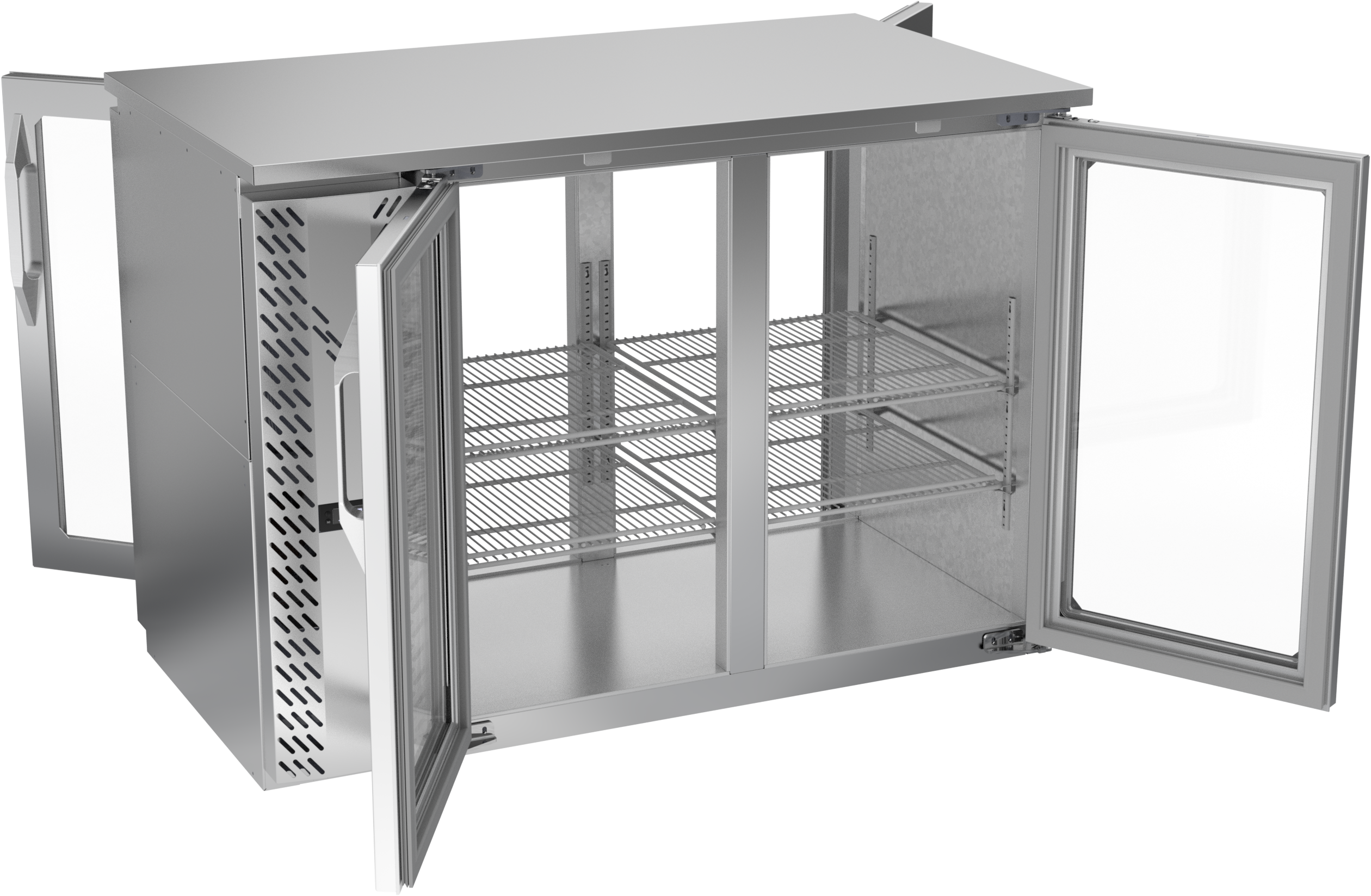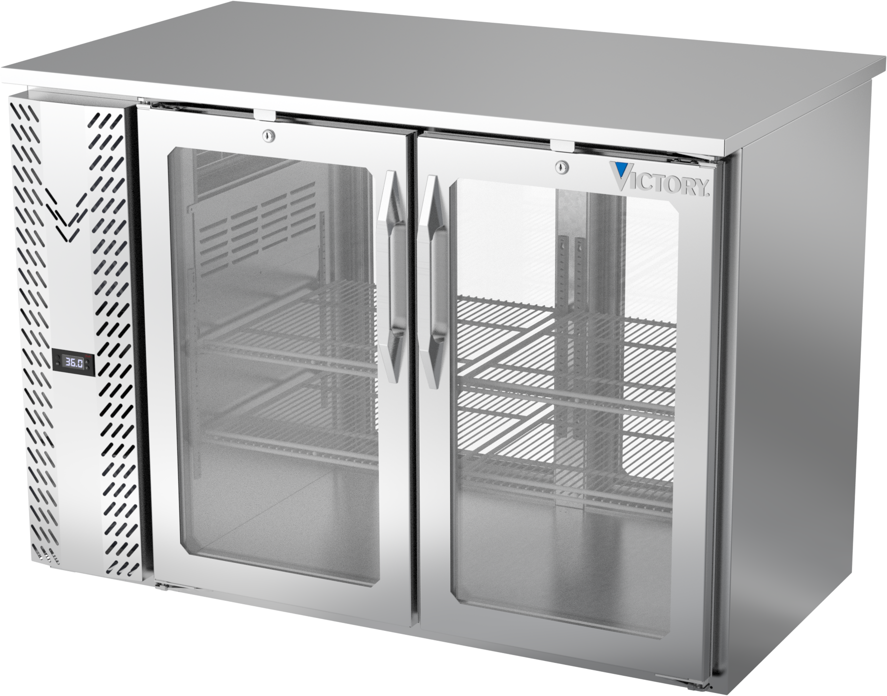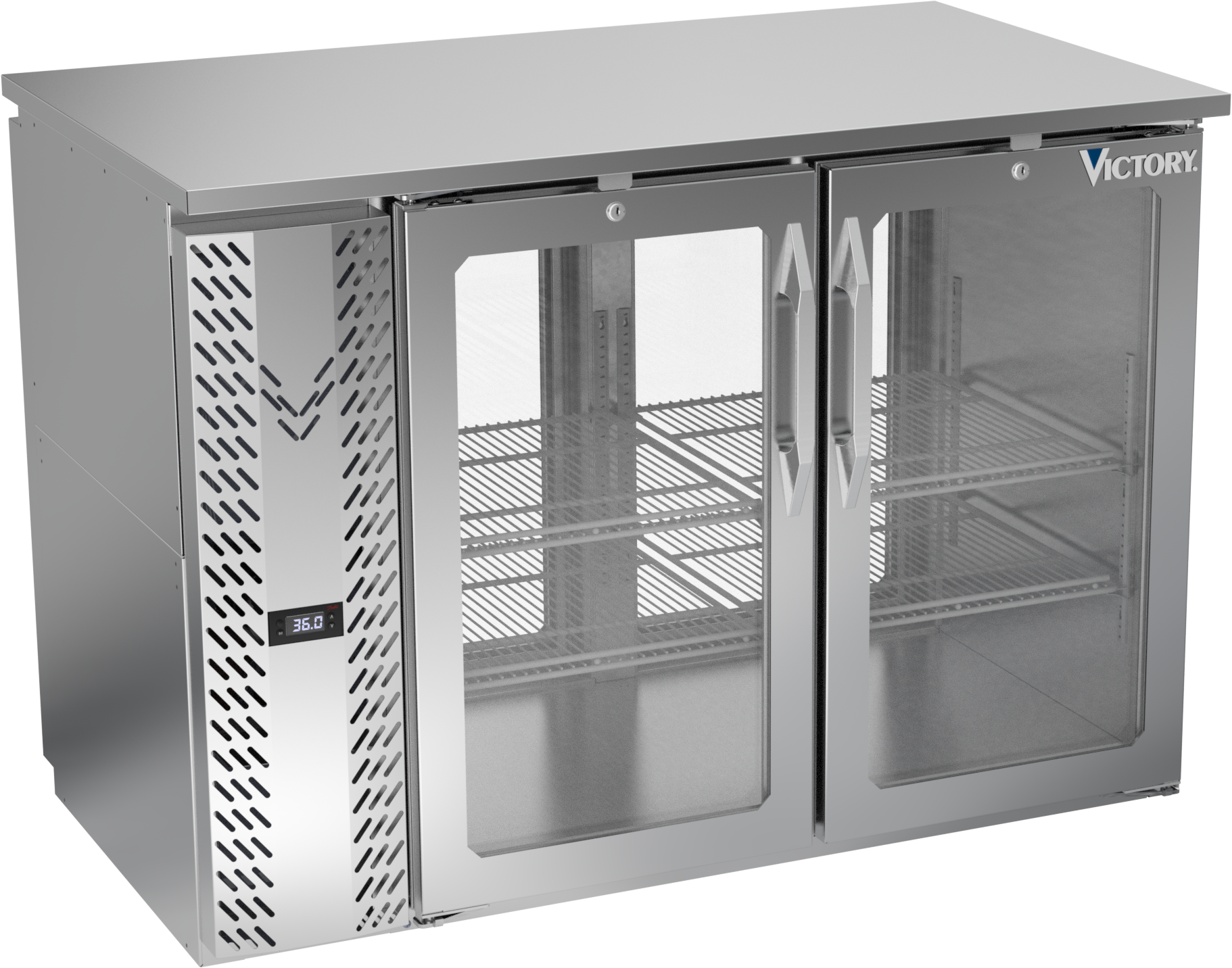 VBBN48HC-FG-PT-S | 48" Narrow Depth Glass Doors Food Rated Pass-thru Back Bar in Stainless Steel