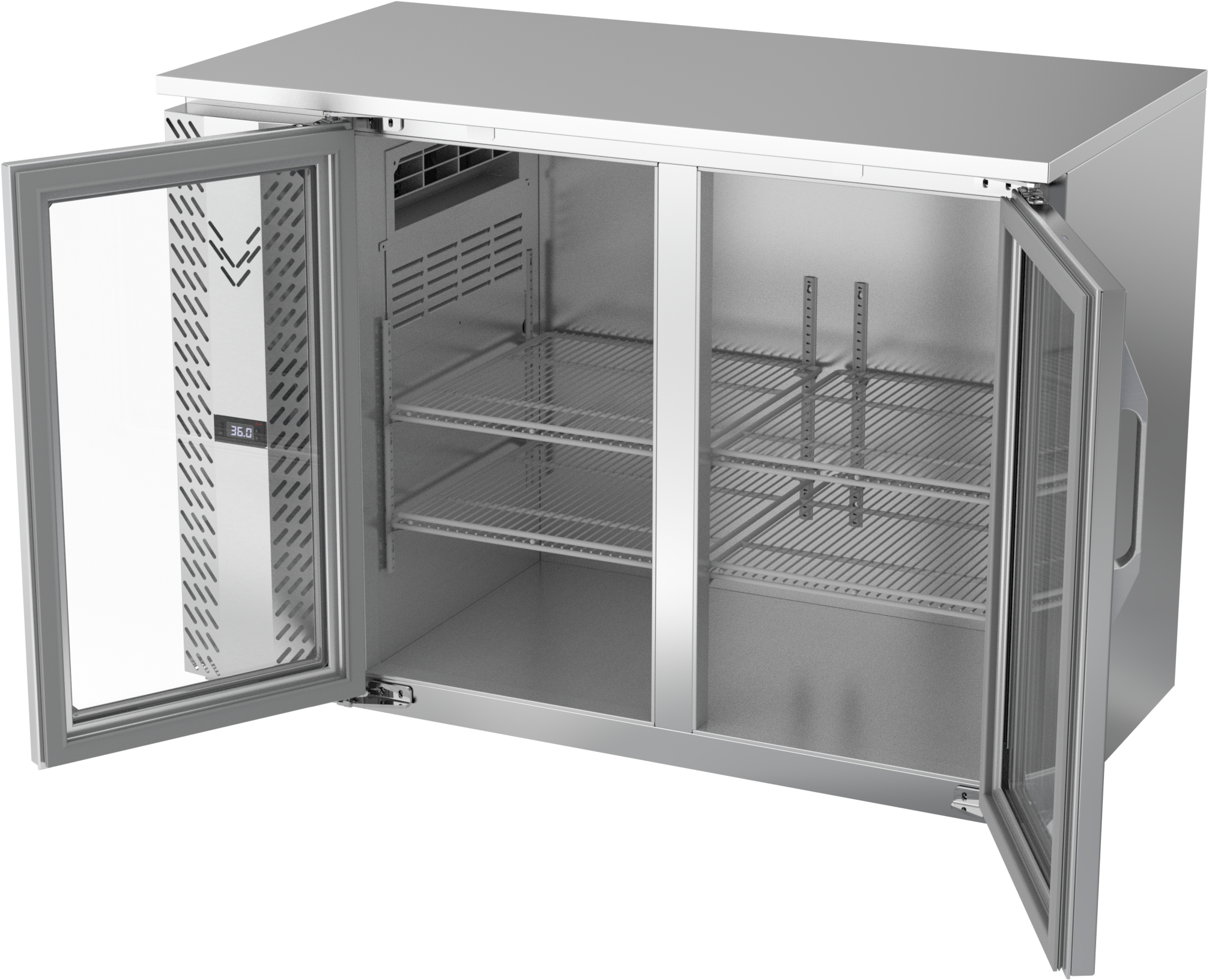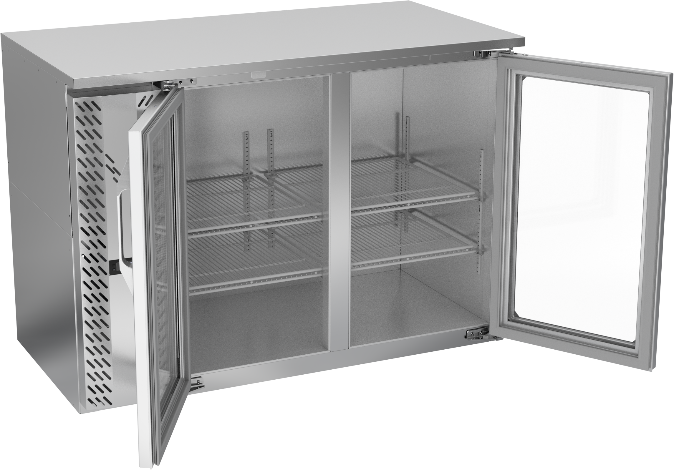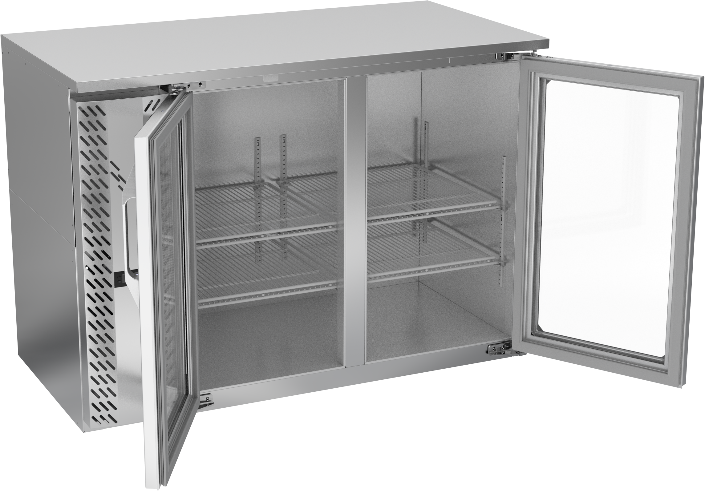 VBBN48HC-FG-S | 48" Narrow Depth Glass Doors Food Rated Back Bar in Stainless Steel