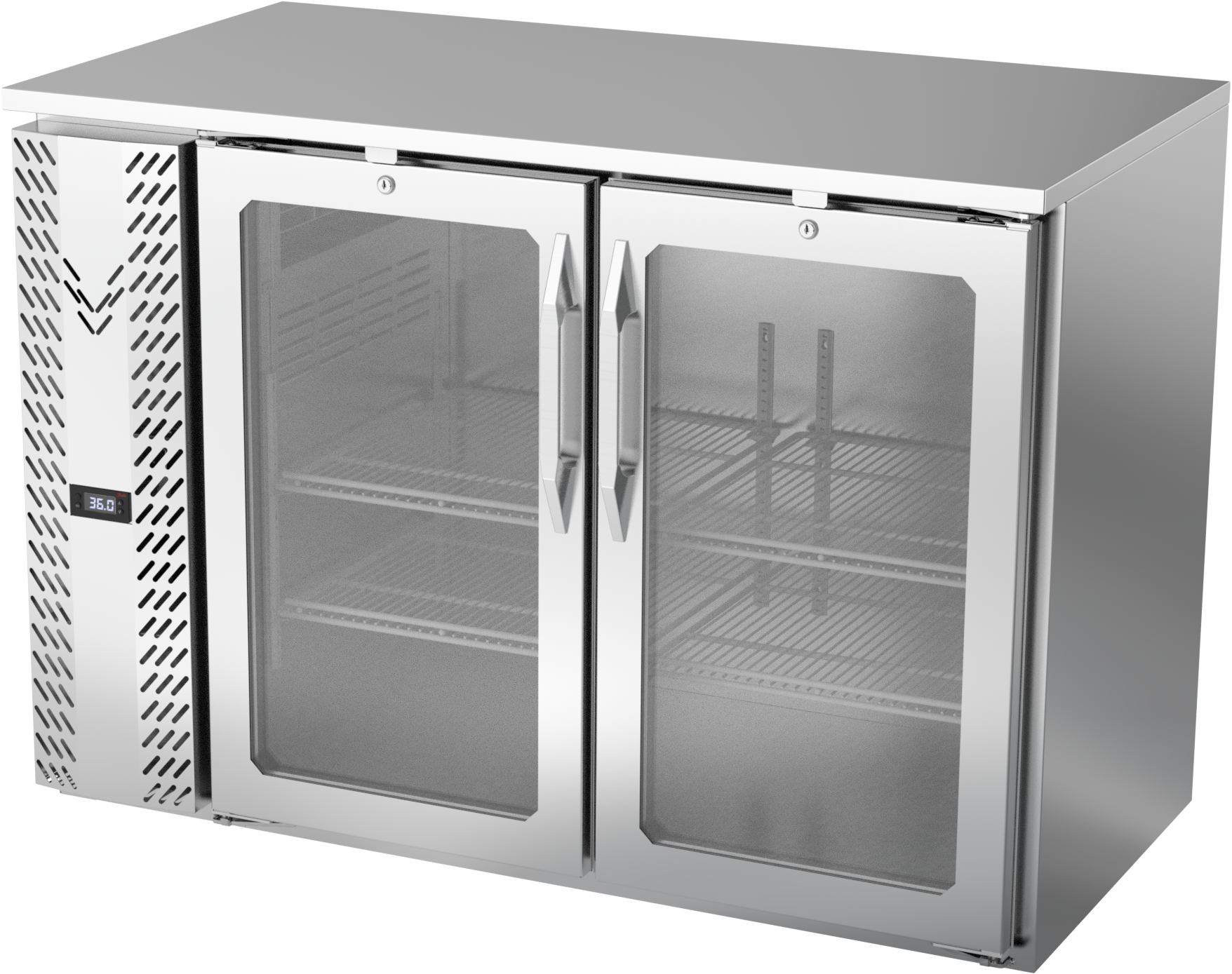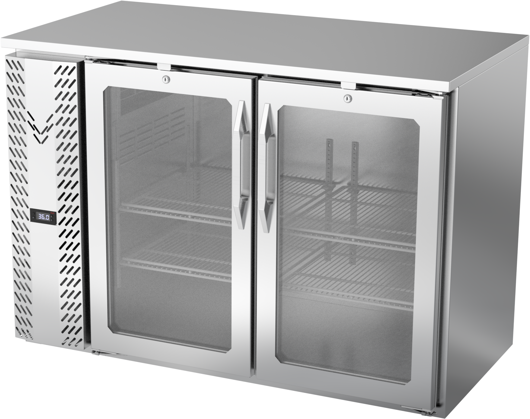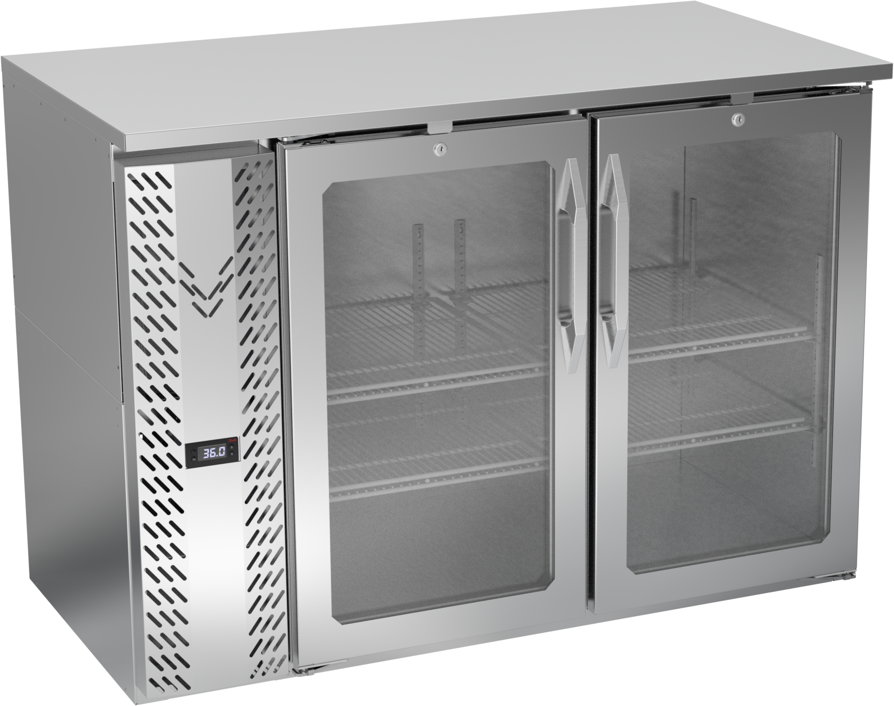 VBBN48HC-FG-S | 48" Narrow Depth Glass Doors Food Rated Back Bar in Stainless Steel