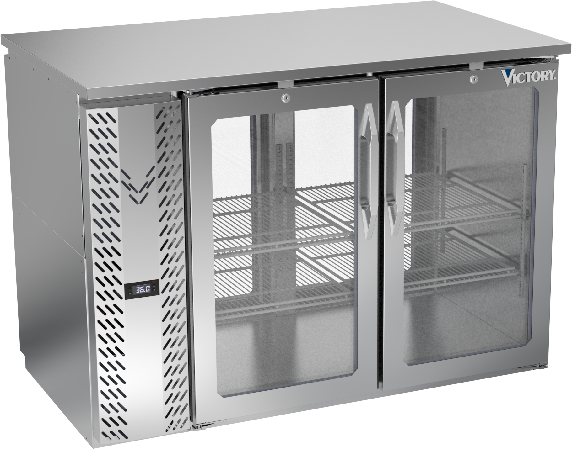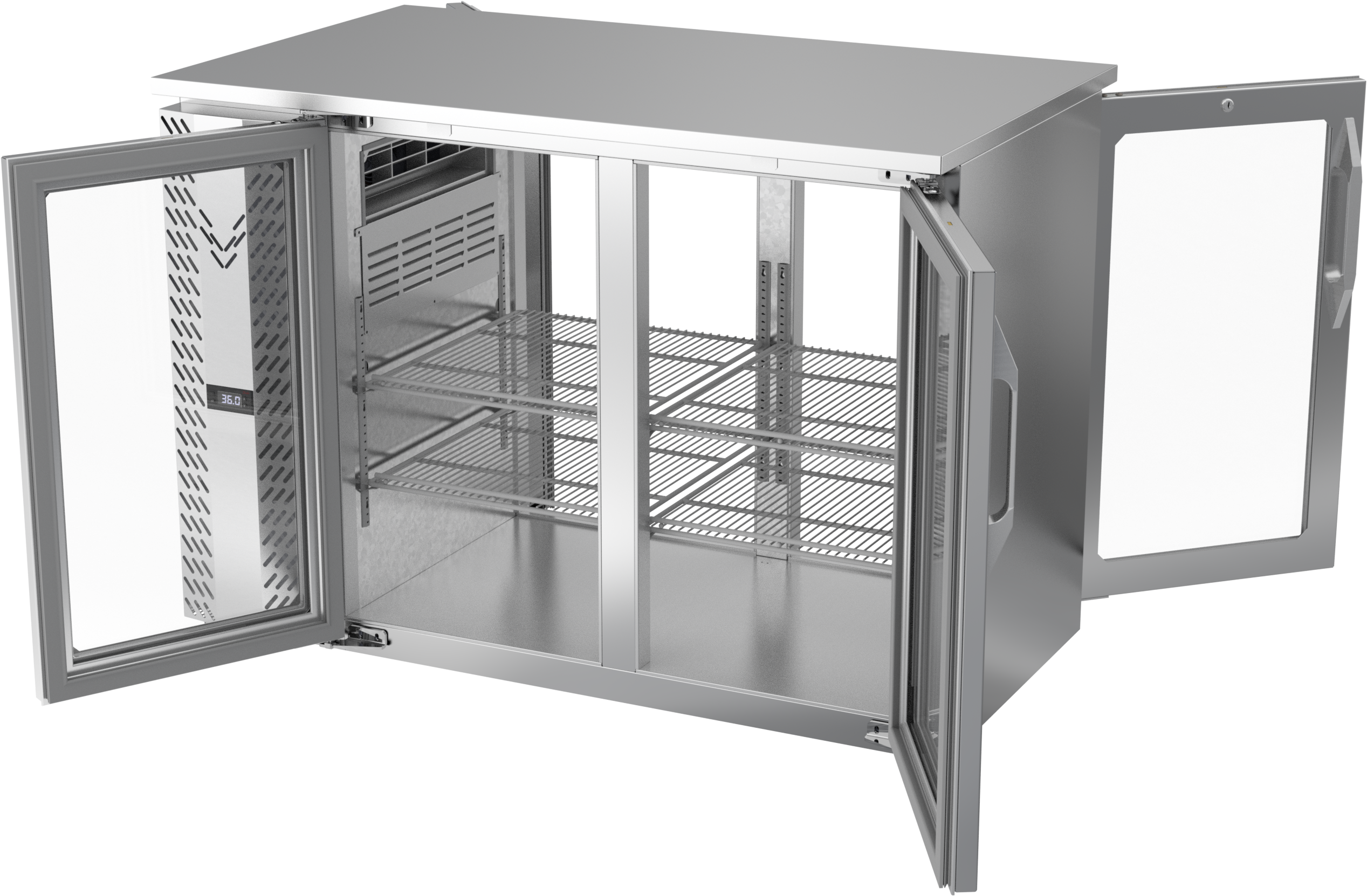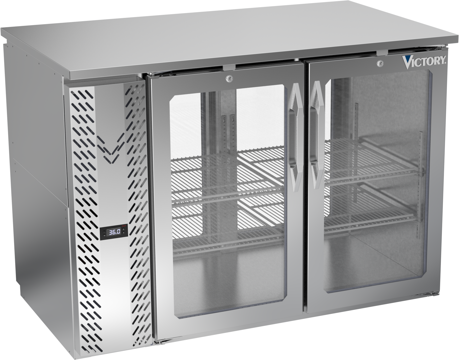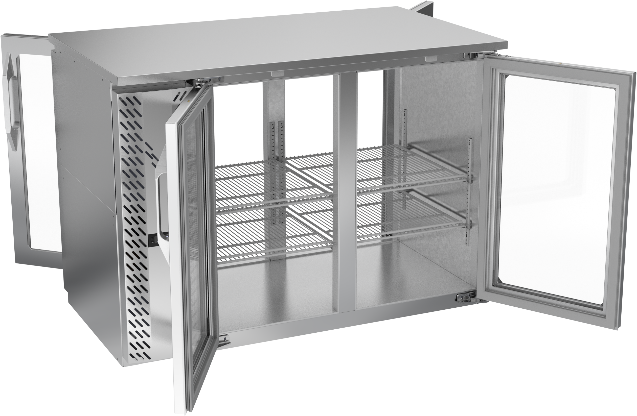 VBBN48HC-G-PT-S | 48" Narrow Depth Glass Doors Pass-thru Back Bar in Stainless Steel