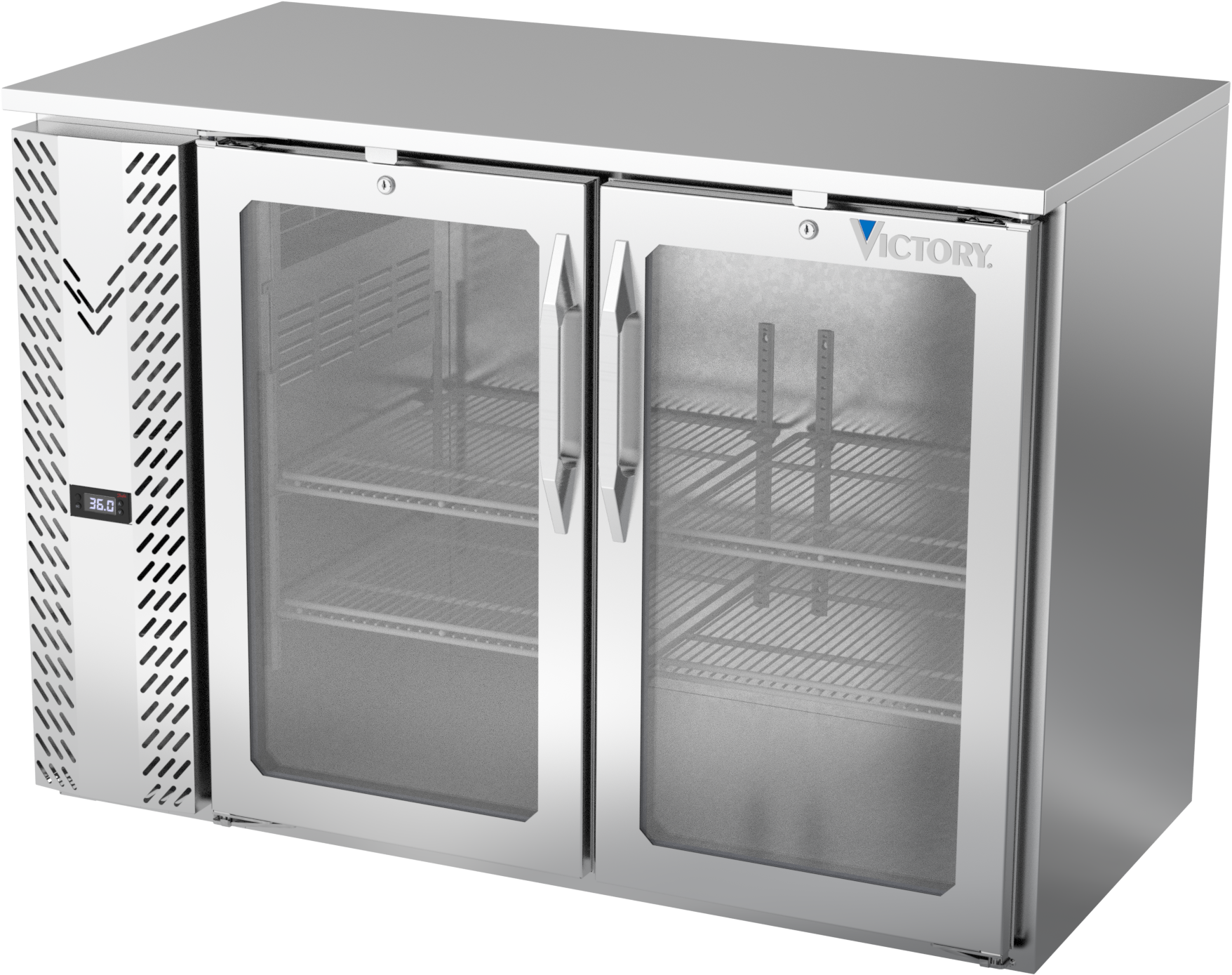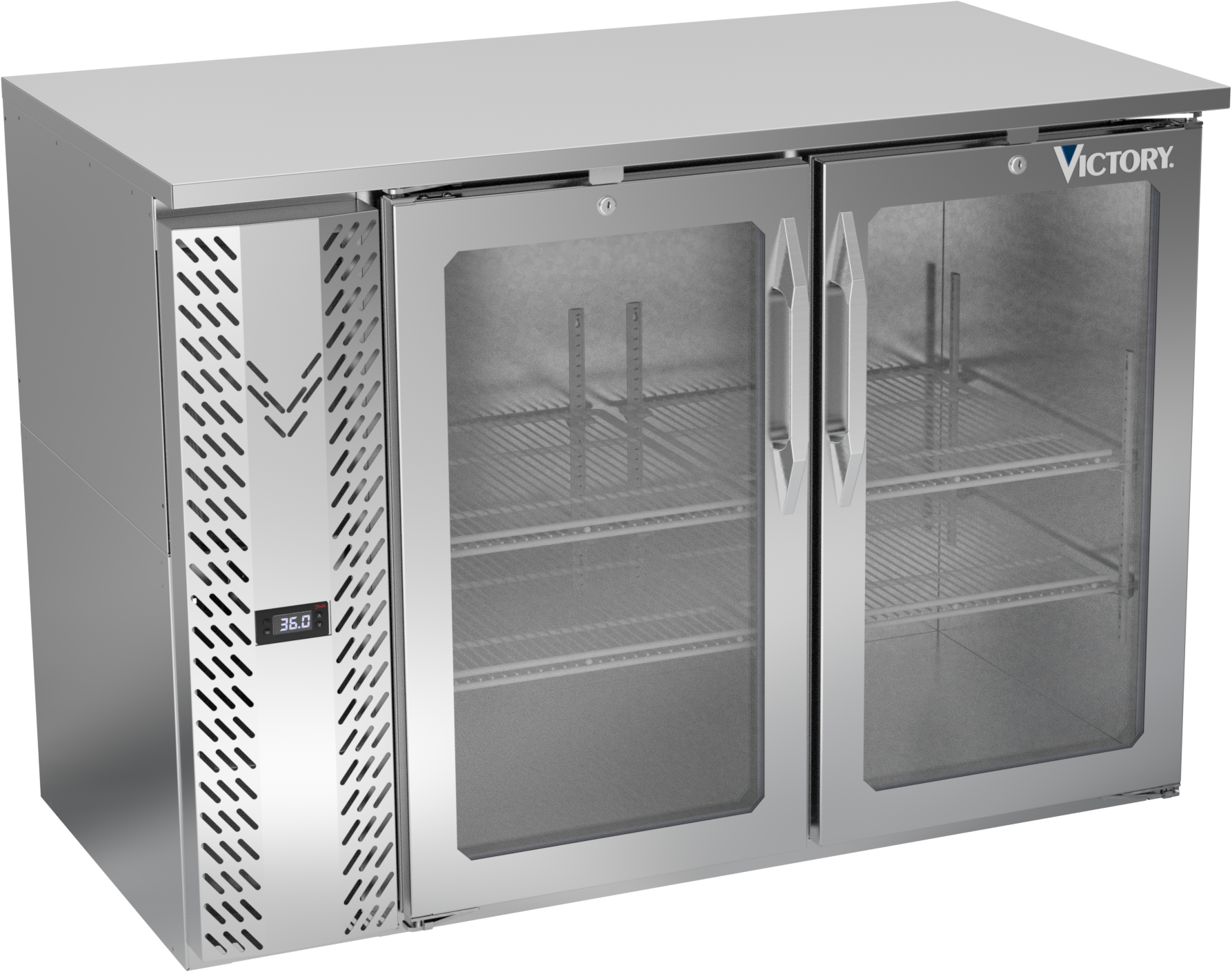 VBBN48HC-G-S | 48" Narrow Depth Glass Doors Back Bar in Stainless Steel