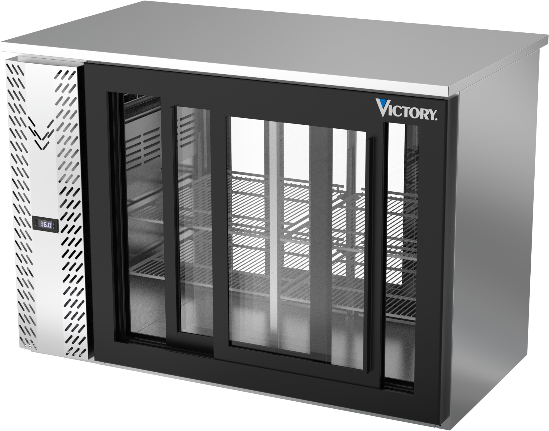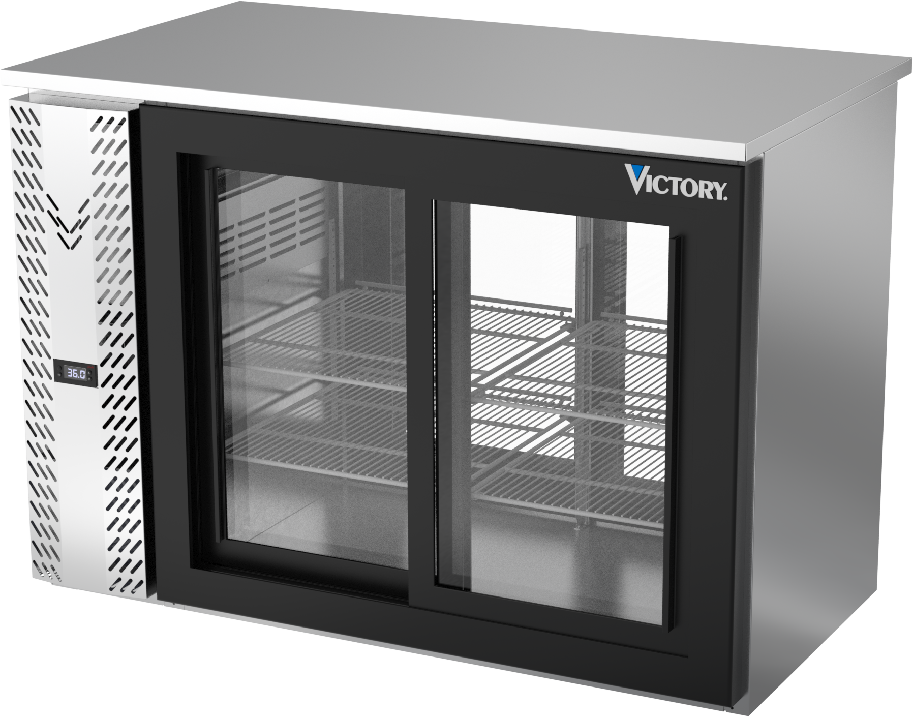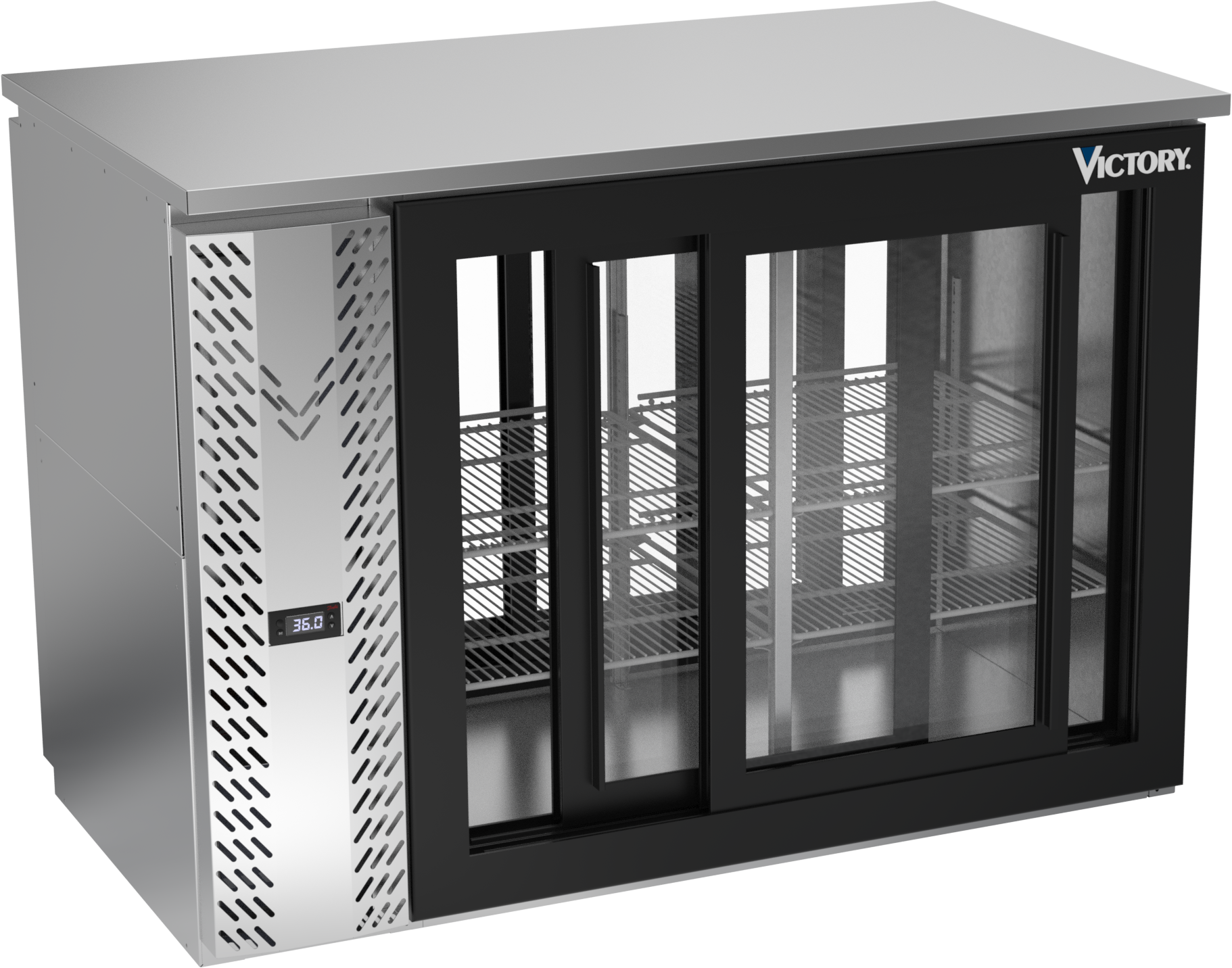 VBBN48HC-GS-PT-S | 48" Narrow Depth Sliding Glass Doors Pass-thru Back Bar in Stainless Steel