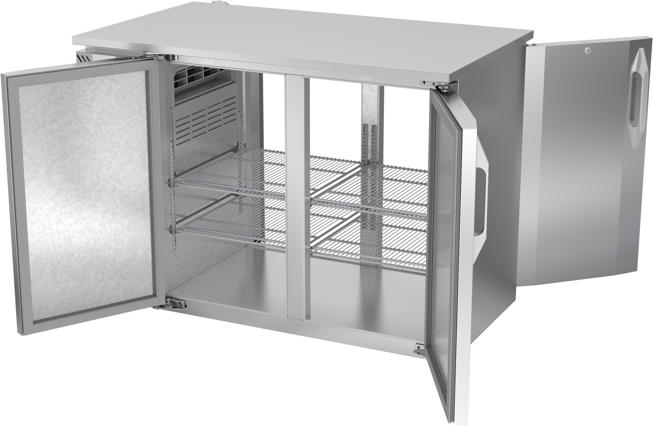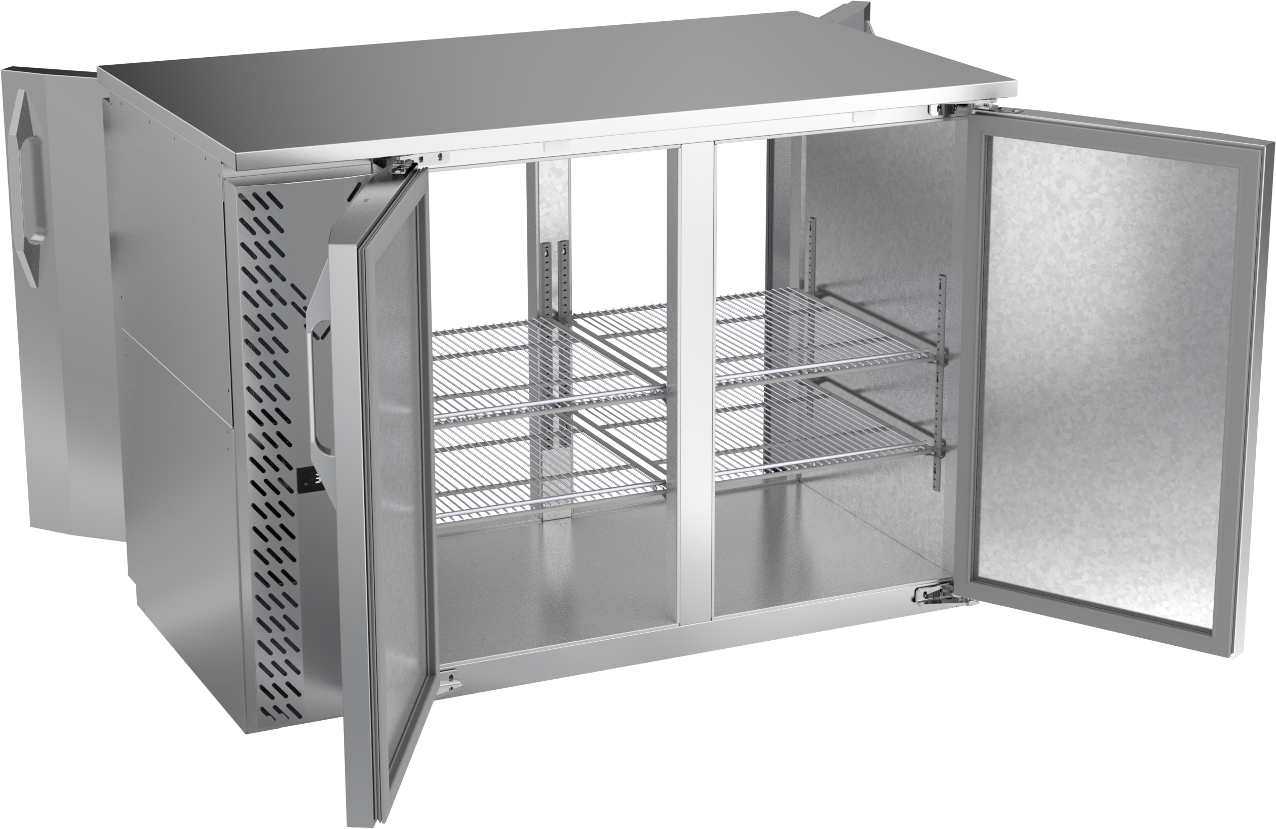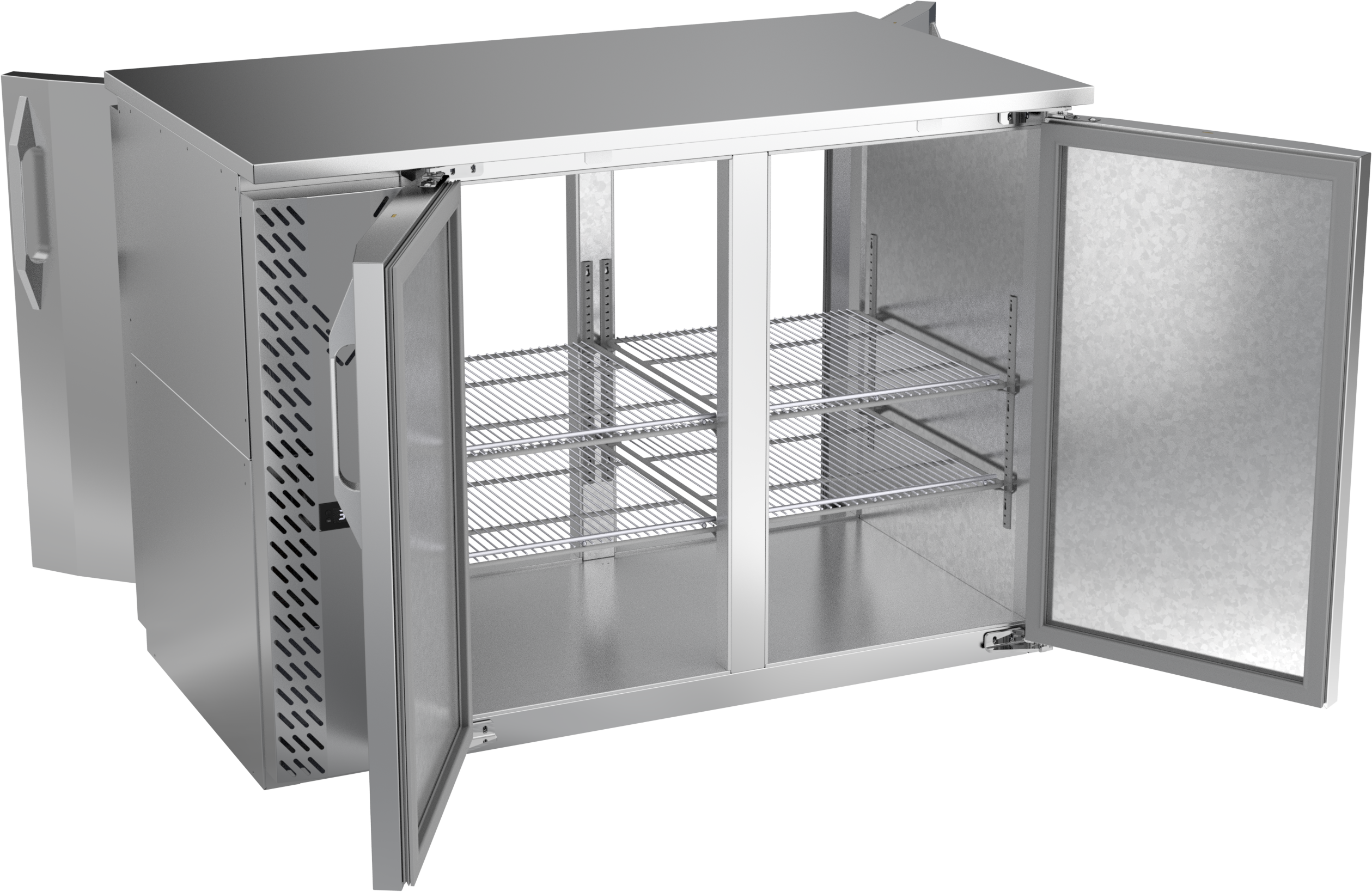 VBBN48HC-PT-S | 48" Narrow Depth Solid Doors Pass-thru Back Bar in Stainless Steel