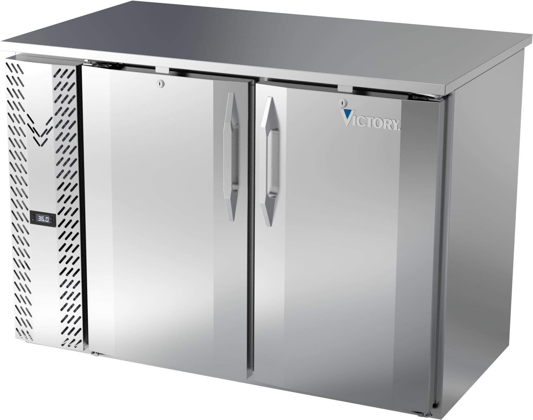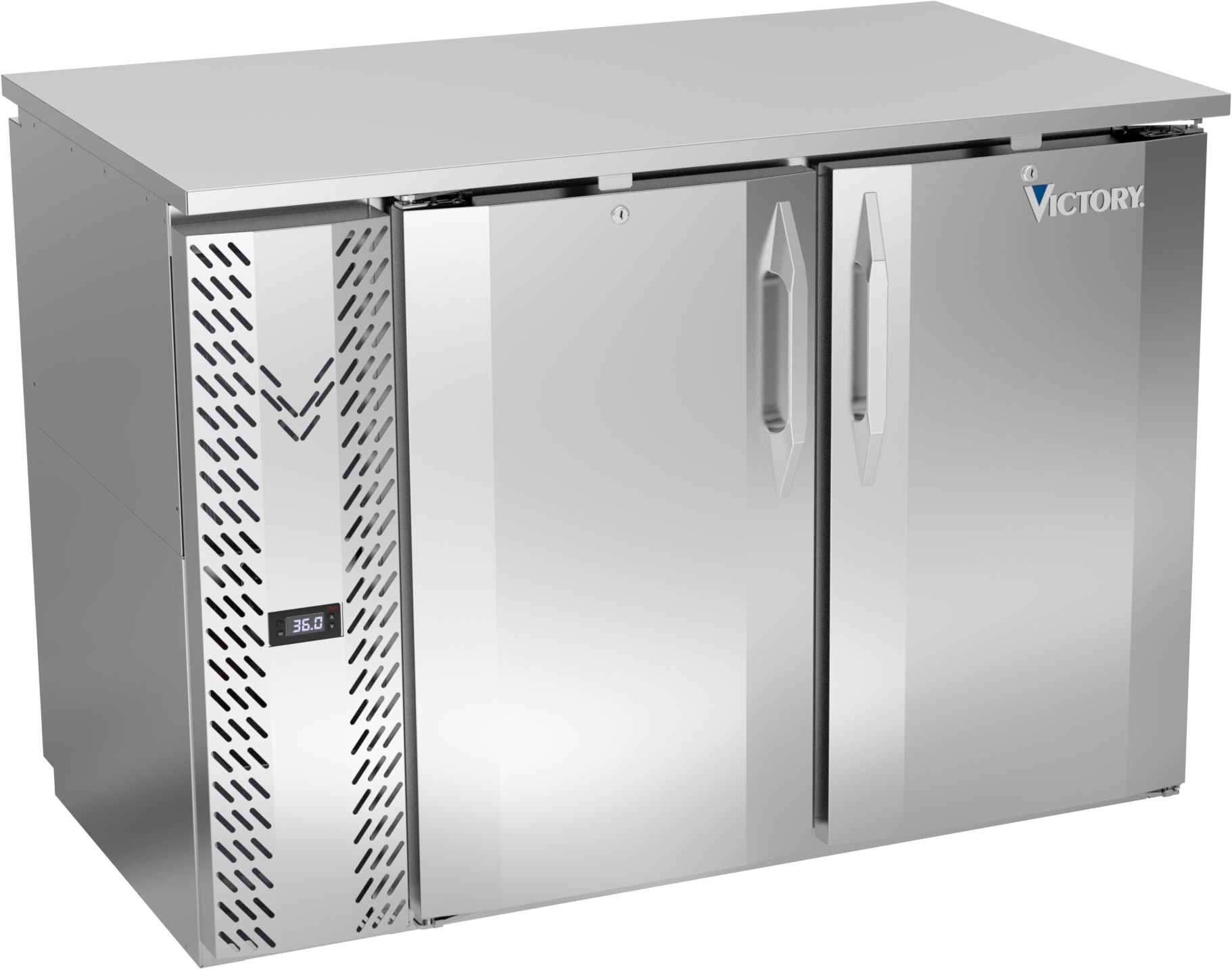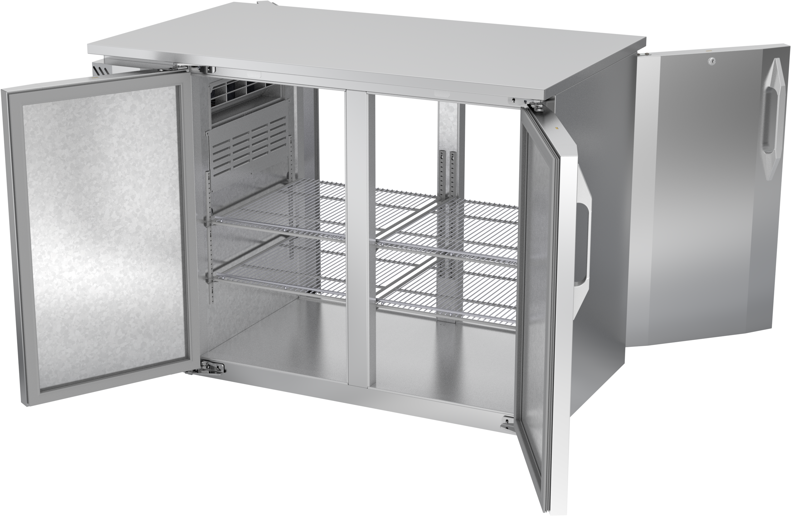 VBBN48HC-PT-S | 48" Narrow Depth Solid Doors Pass-thru Back Bar in Stainless Steel