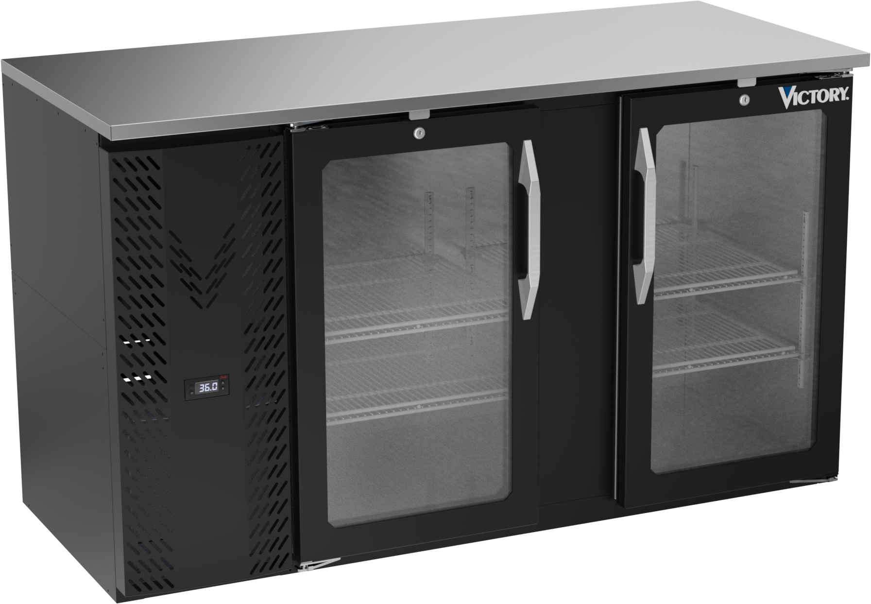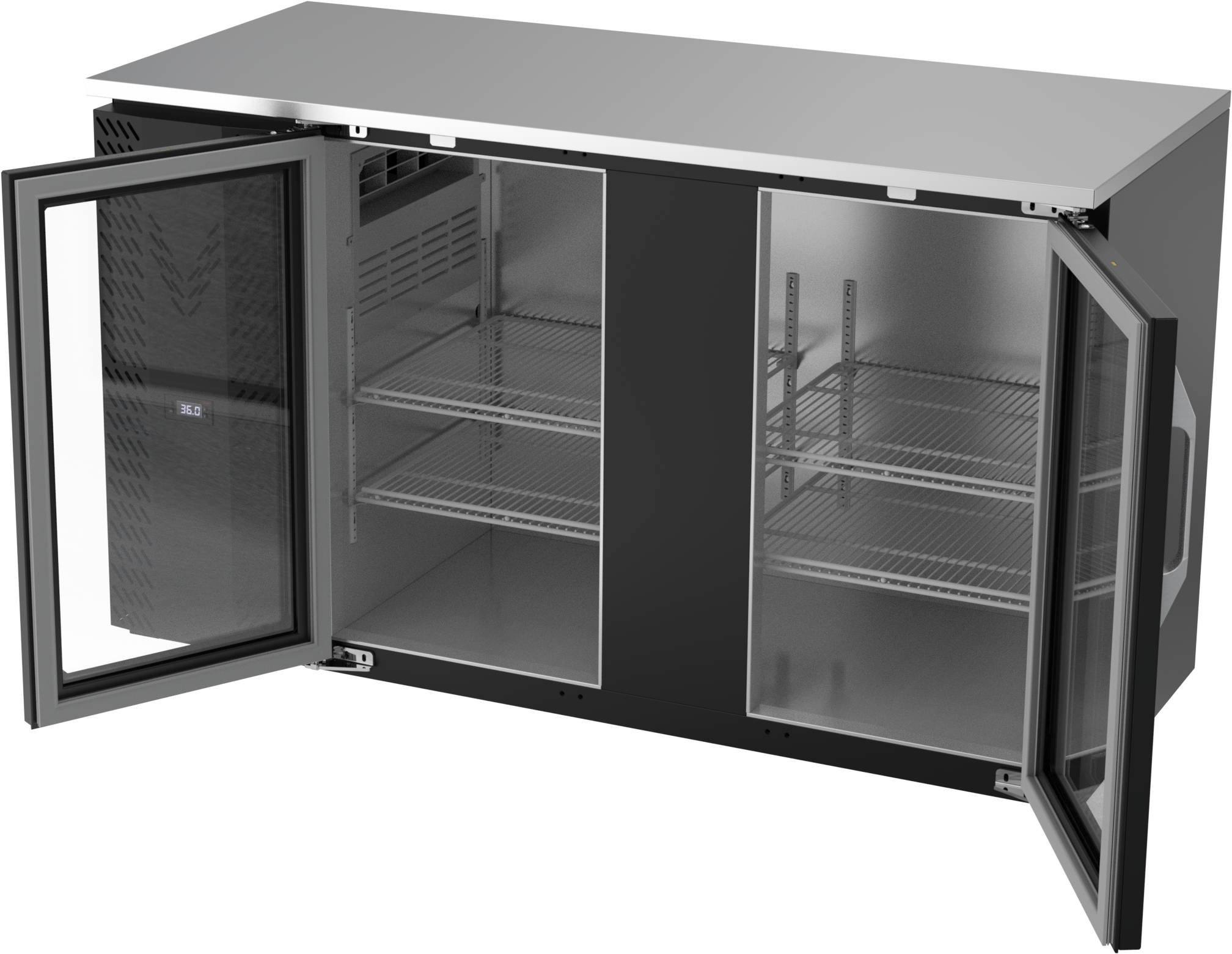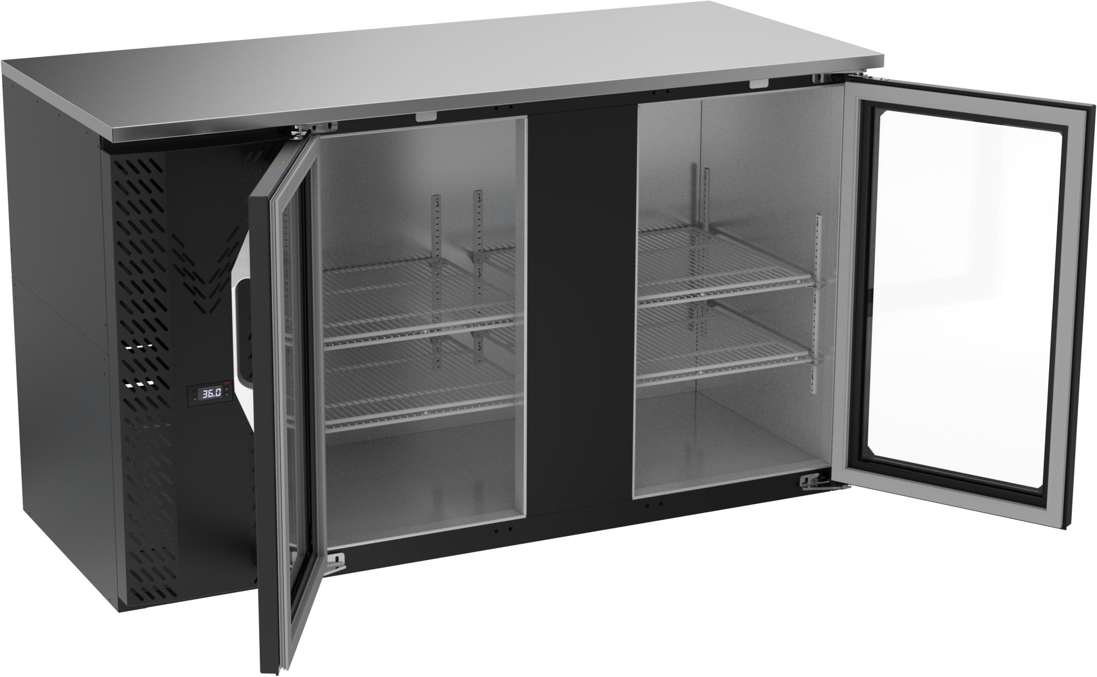 VBBN58HC-FG-B | 58" Narrow Depth Glass Doors Food Rated Back Bar in Black