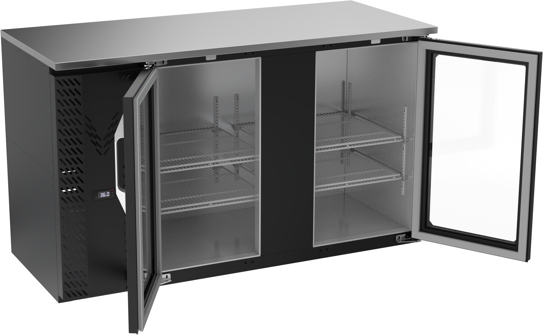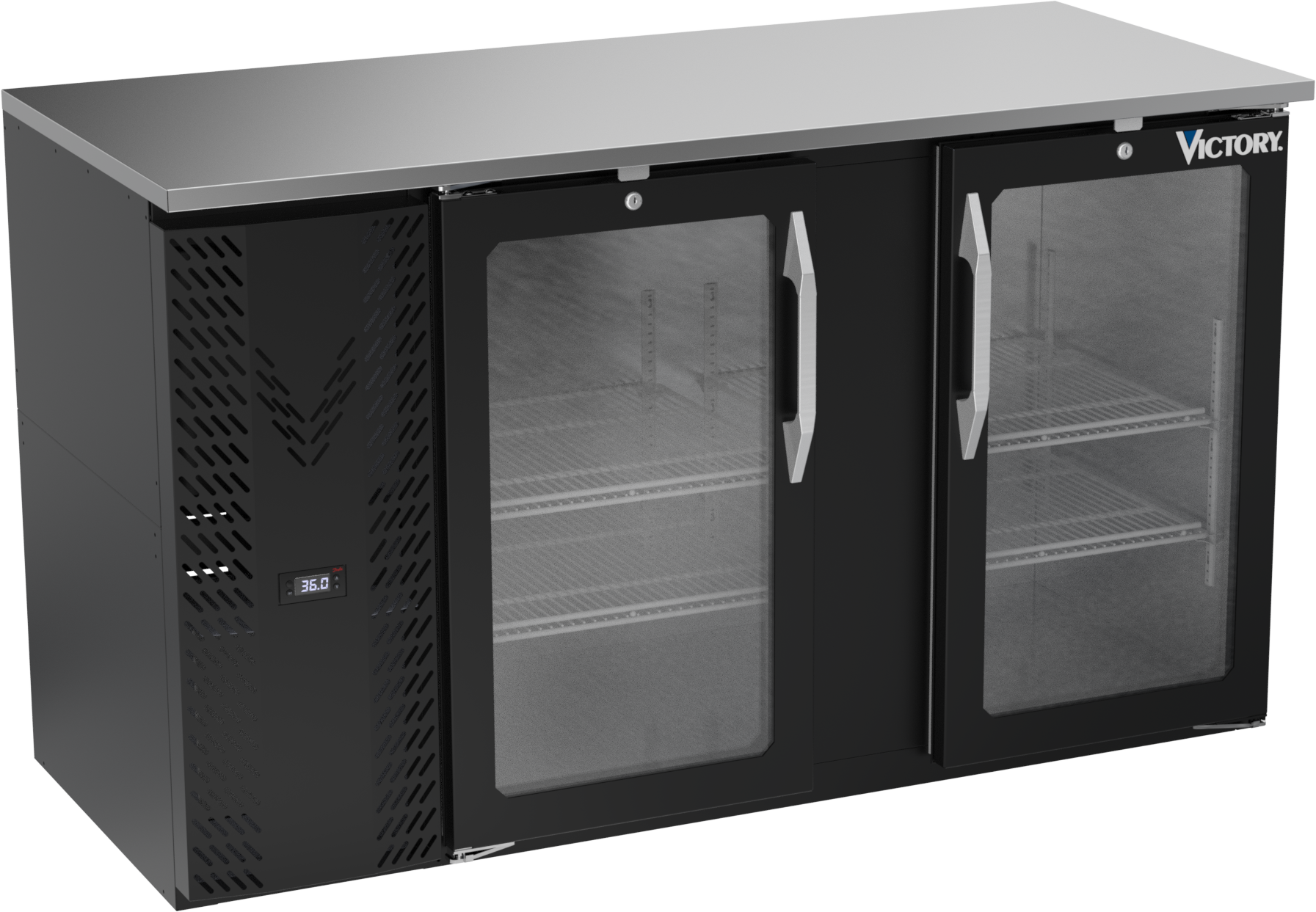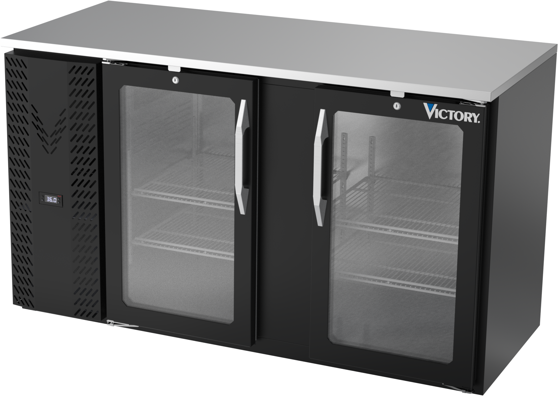 VBBN58HC-FG-B | 58" Narrow Depth Glass Doors Food Rated Back Bar in Black