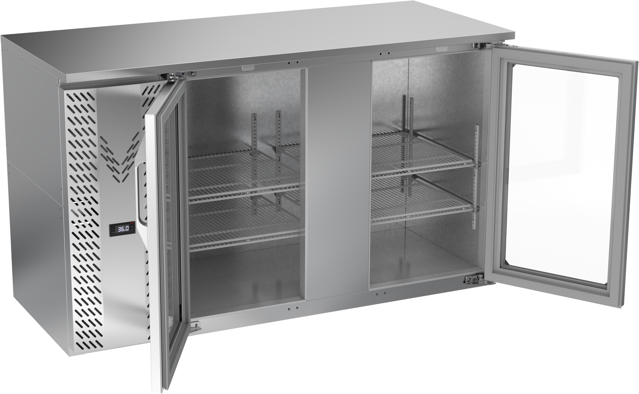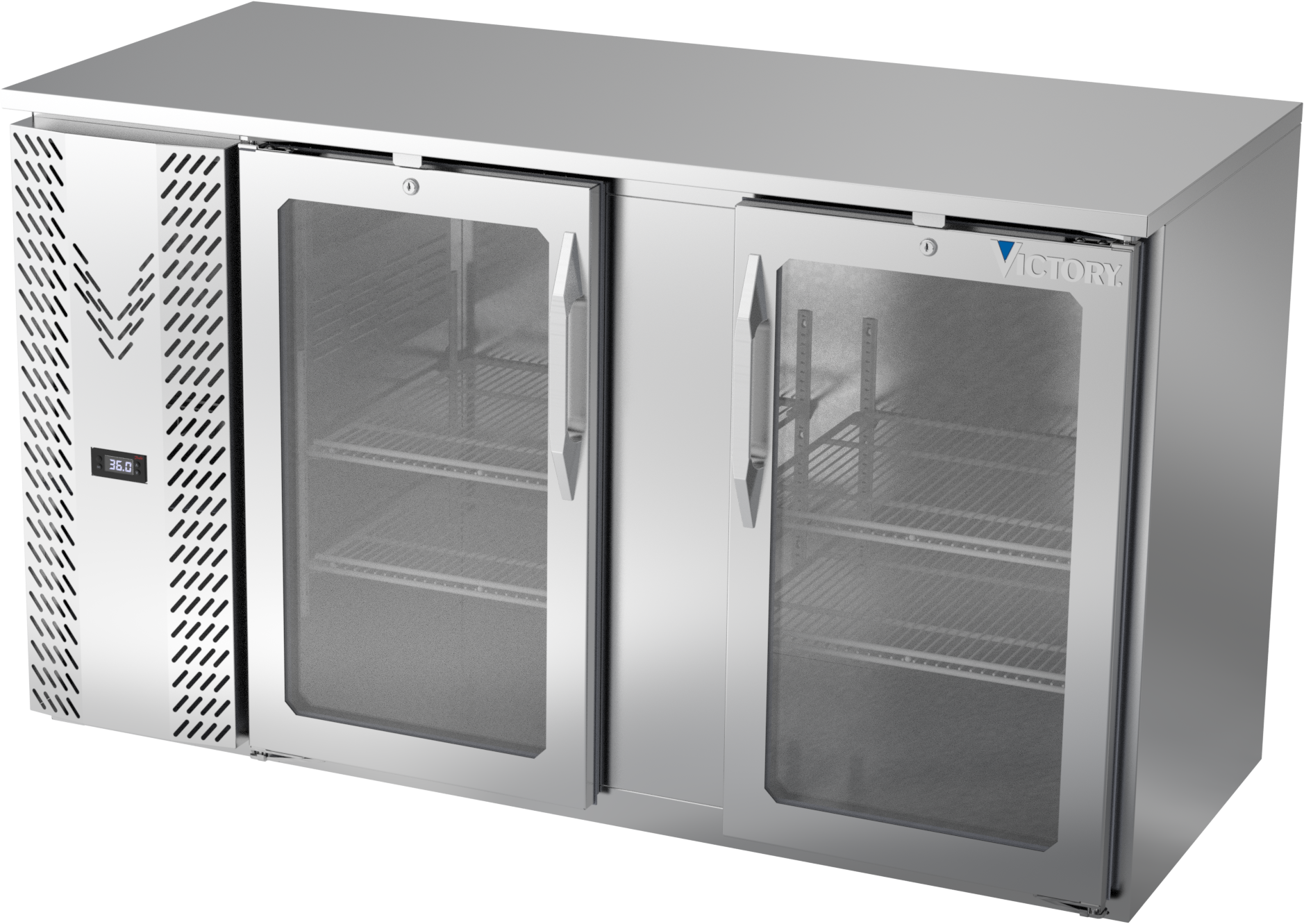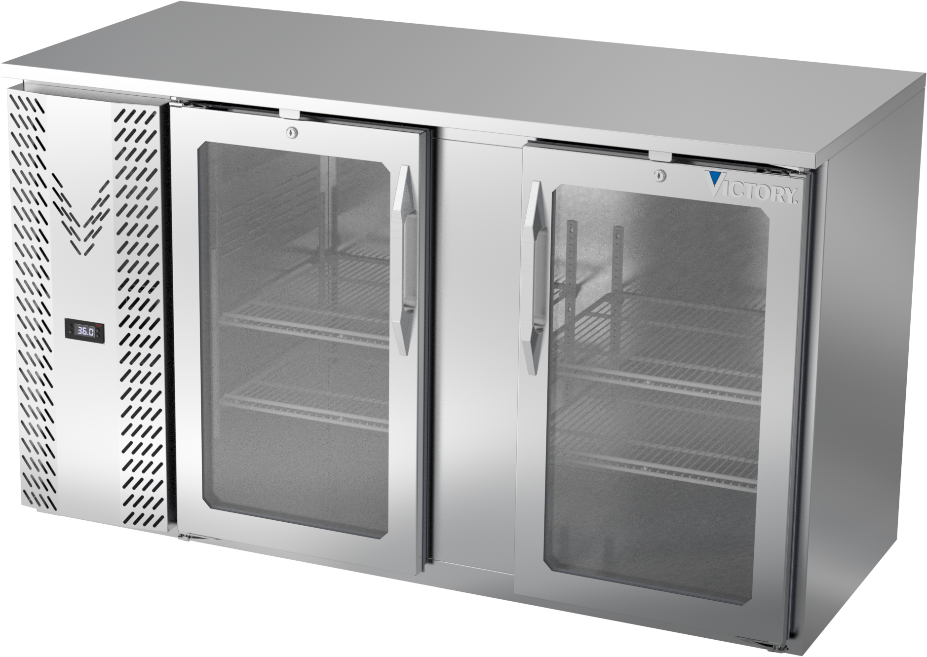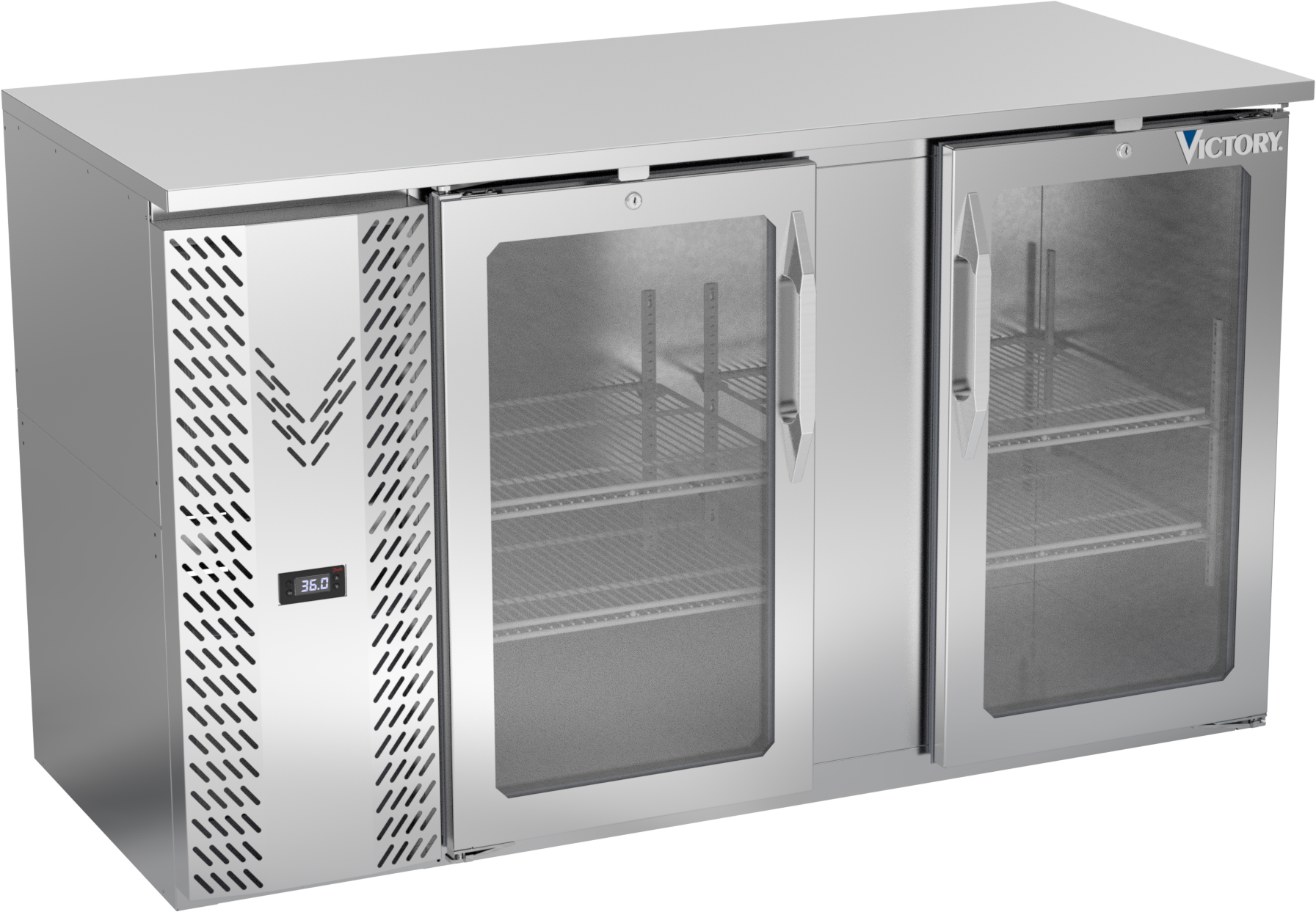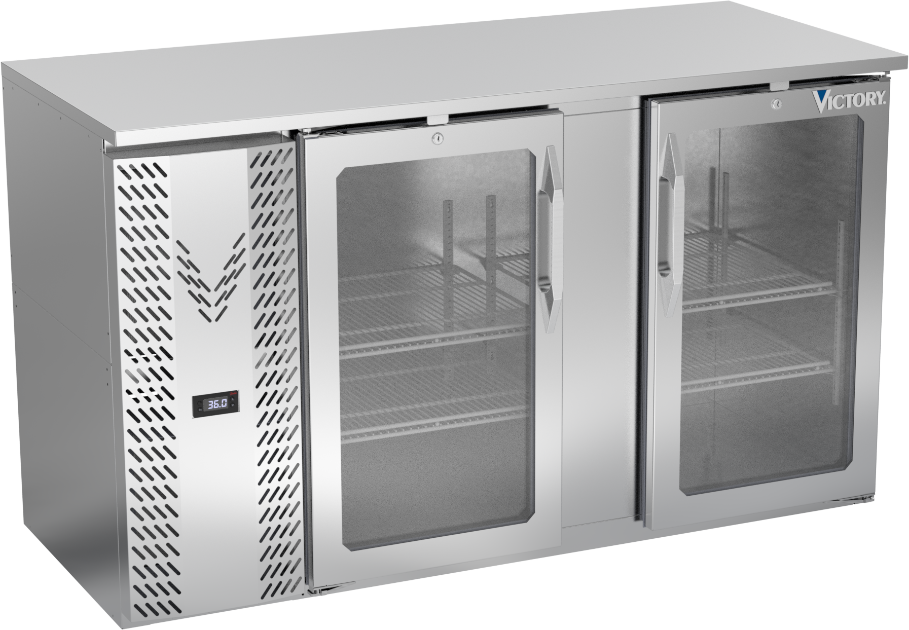 VBBN58HC-G-S | 58" Narrow Depth Glass Doors Back Bar in Stainless Steel
