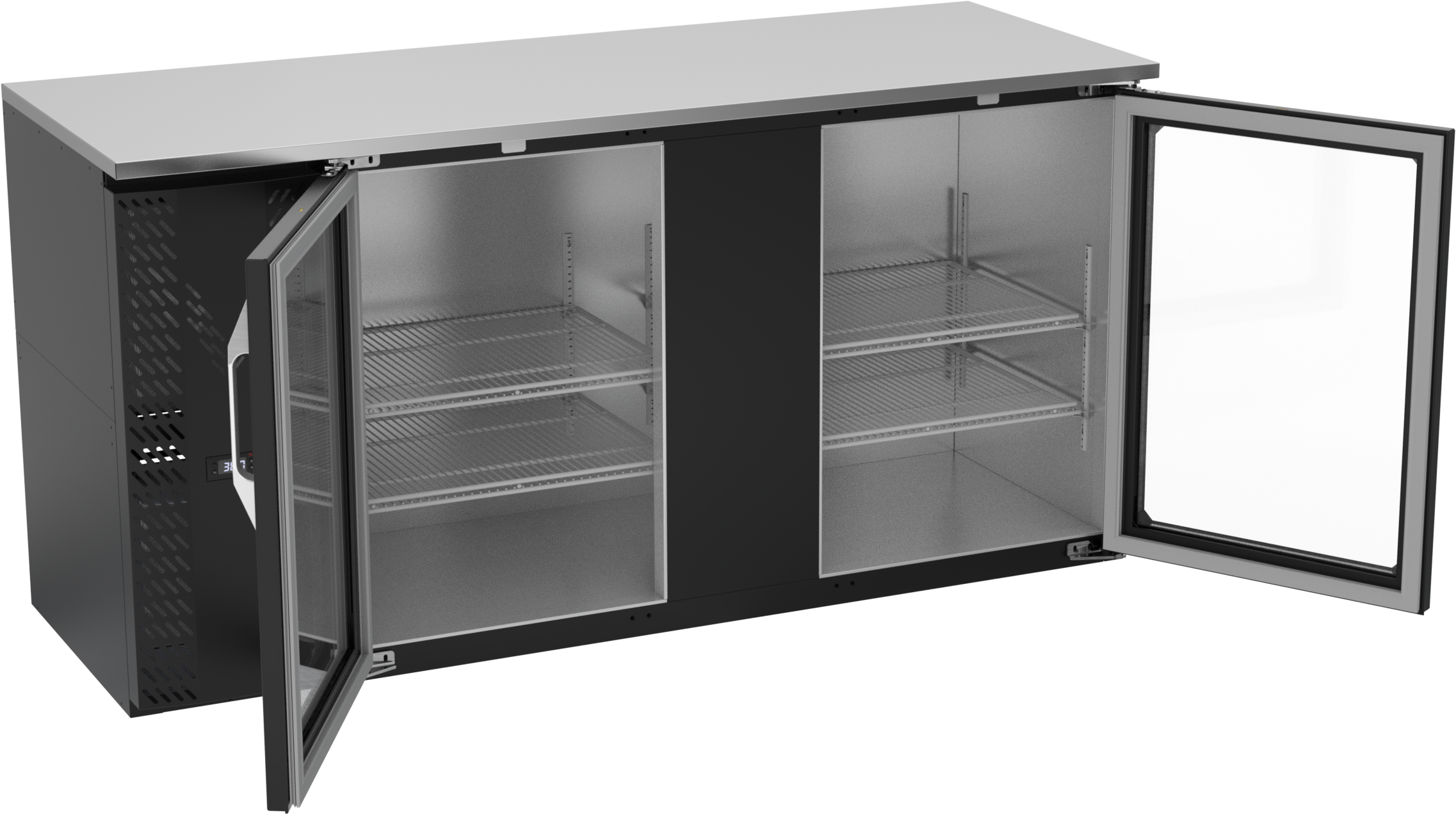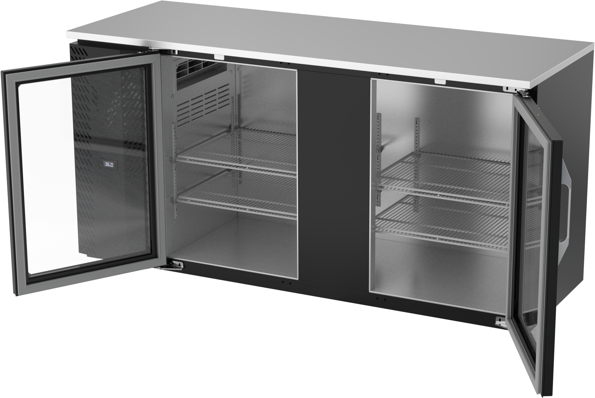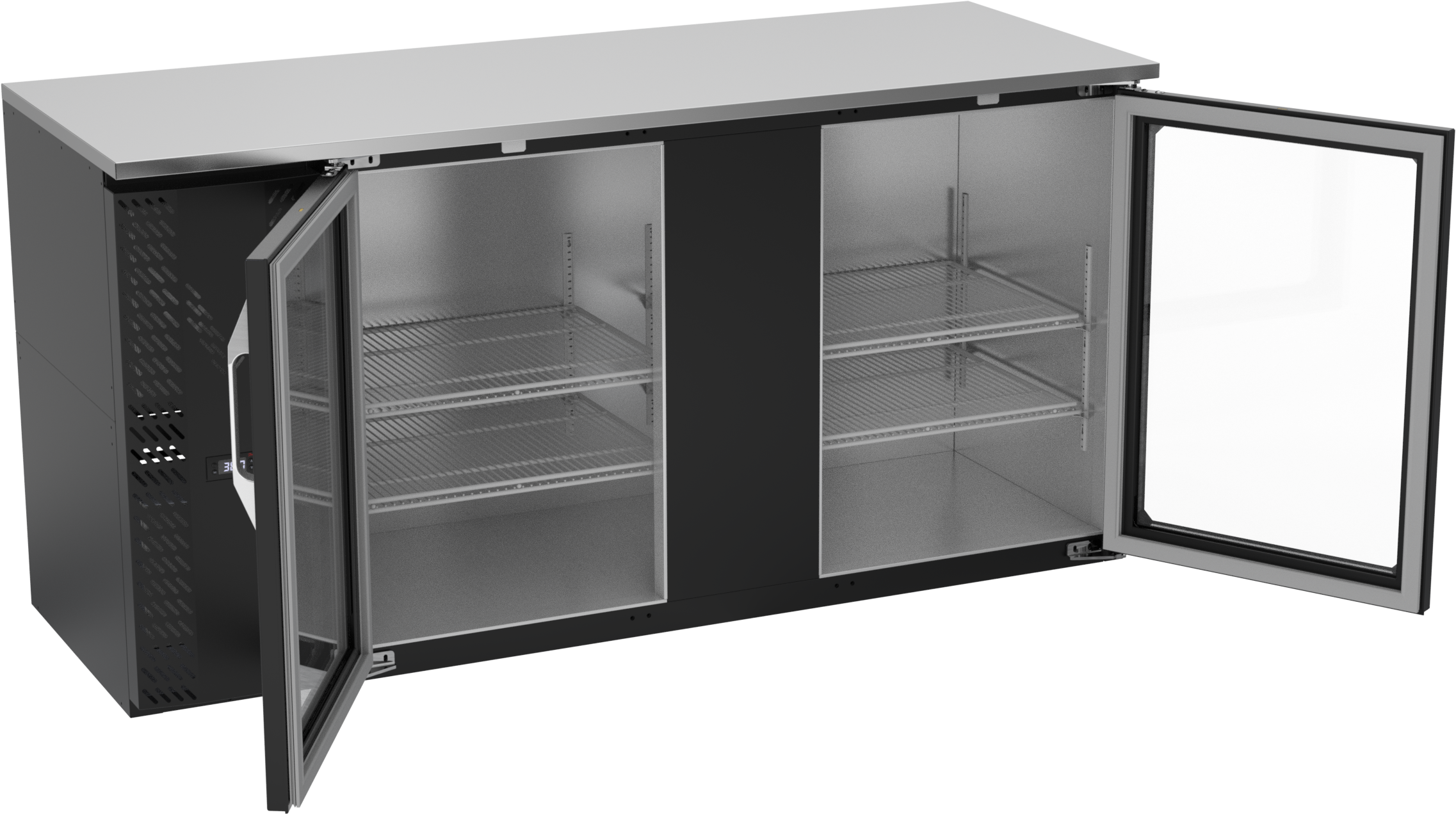 VBBN68HC-FG-B | 68" Narrow Depth Glass Doors Food Rated Back Bar in Black