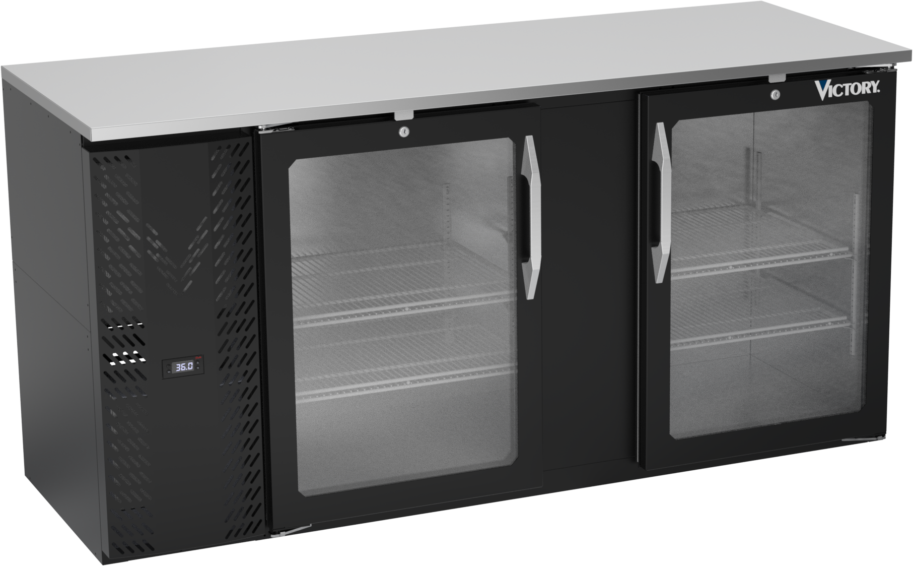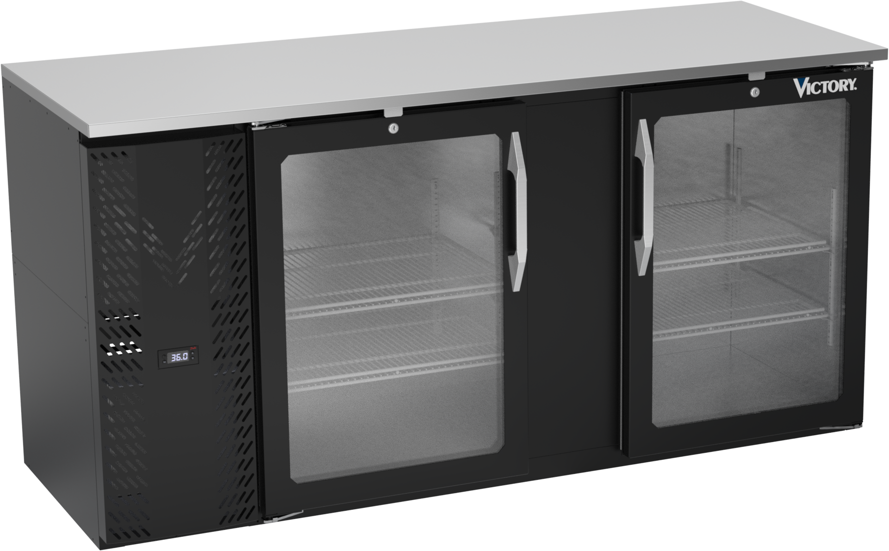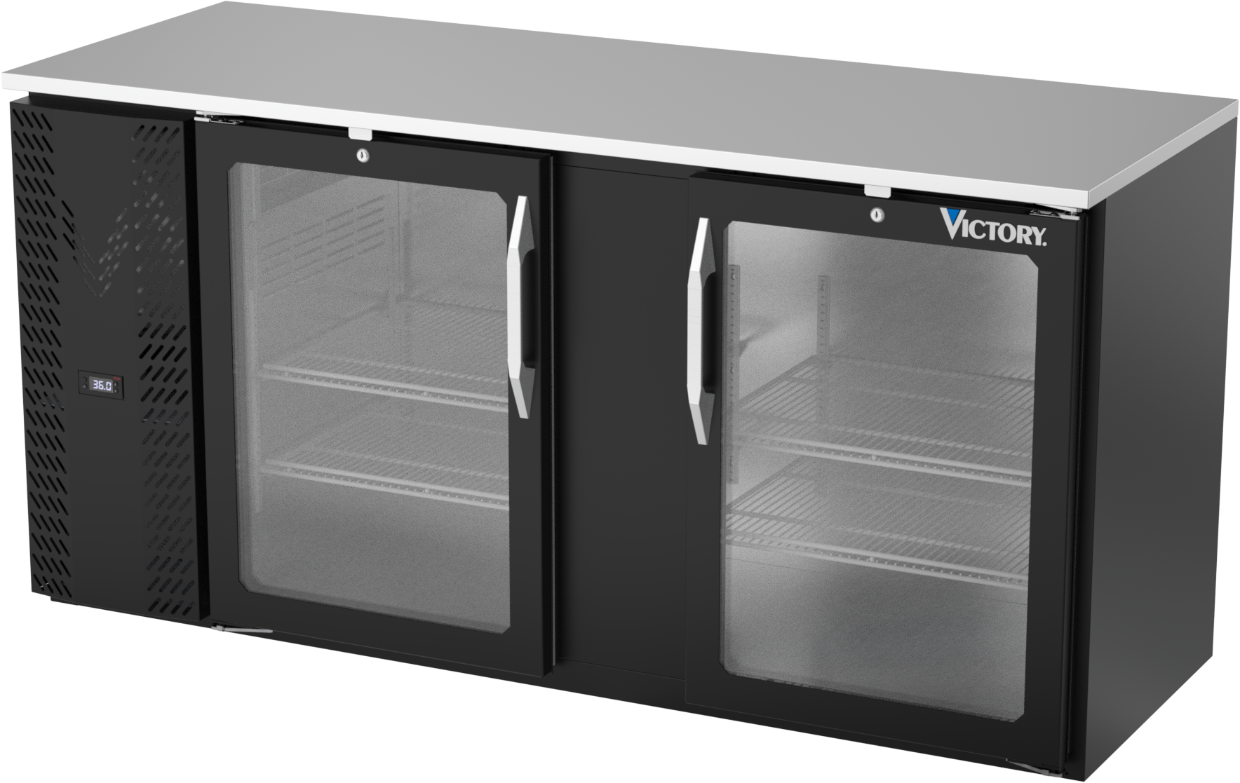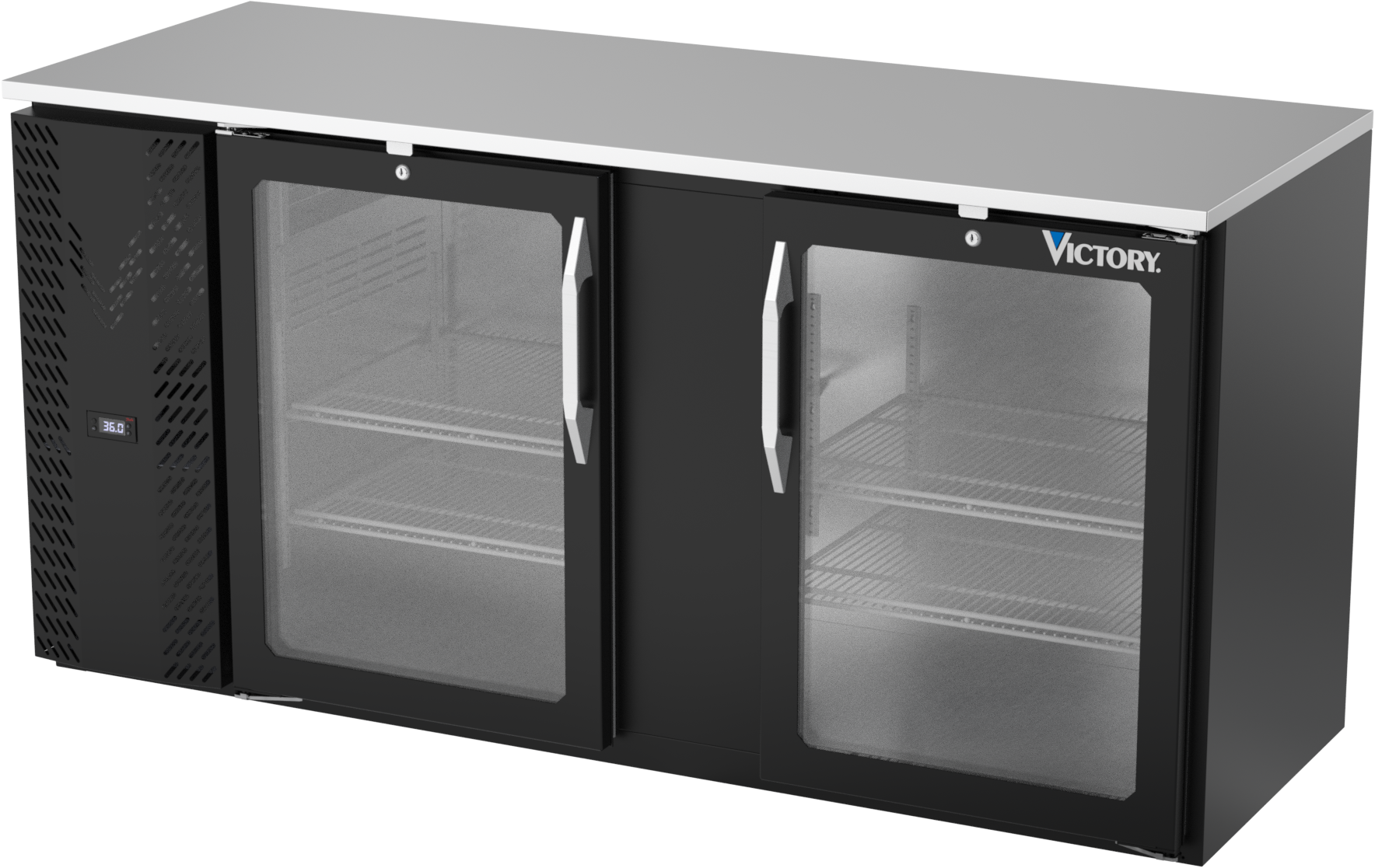 VBBN68HC-FG-B | 68" Narrow Depth Glass Doors Food Rated Back Bar in Black