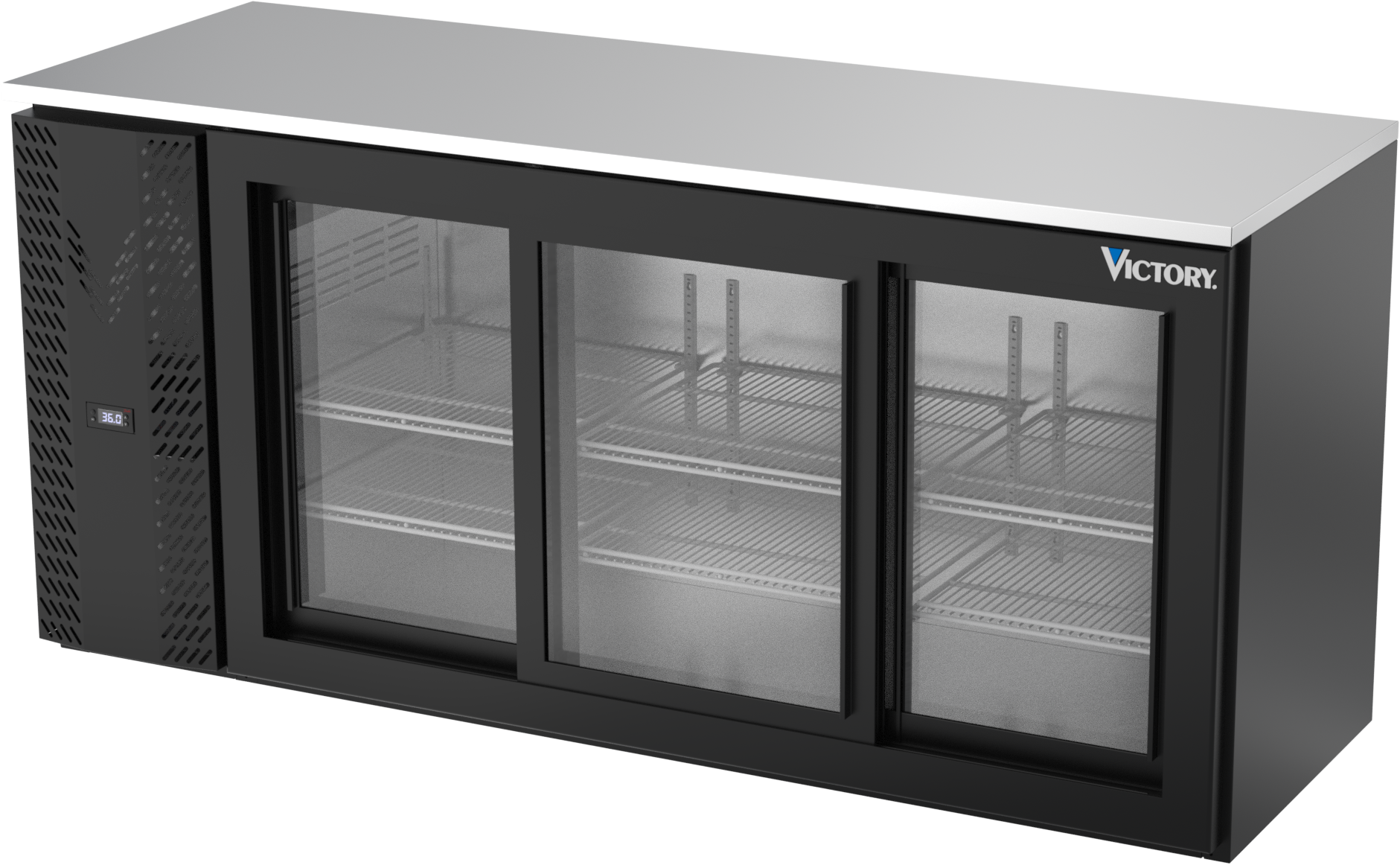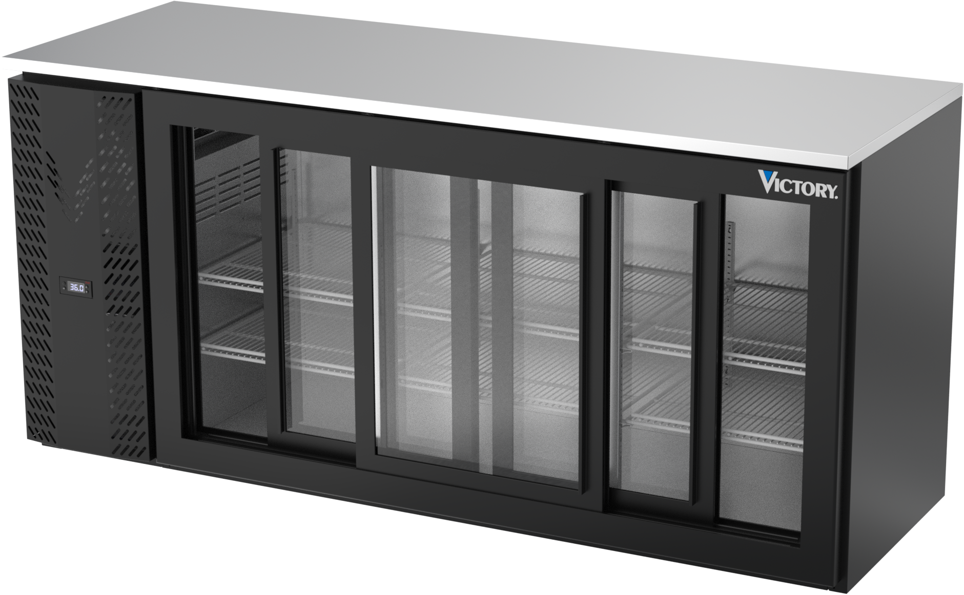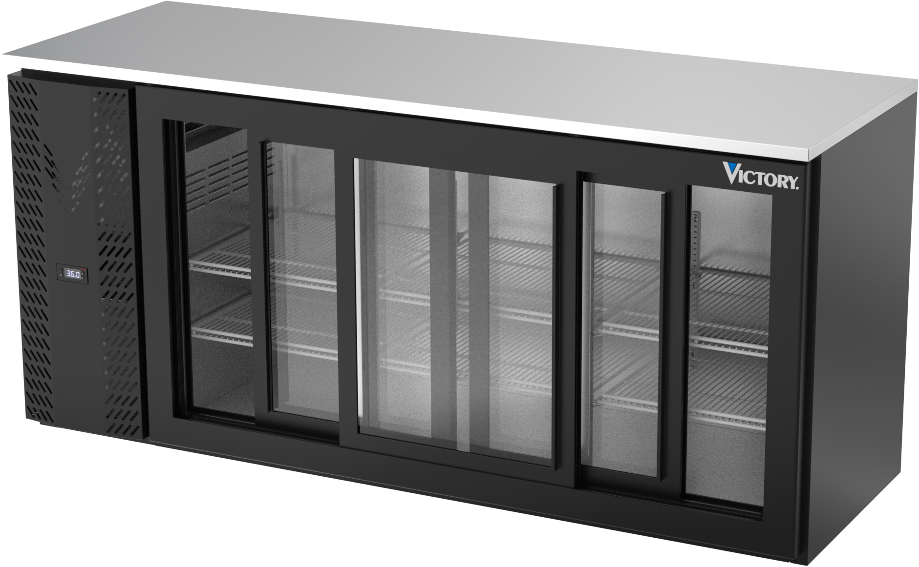 VBBN72HC-F-GS-B | 72" Narrow Depth Sliding Glass Doors Food Rated Back Bar in Black