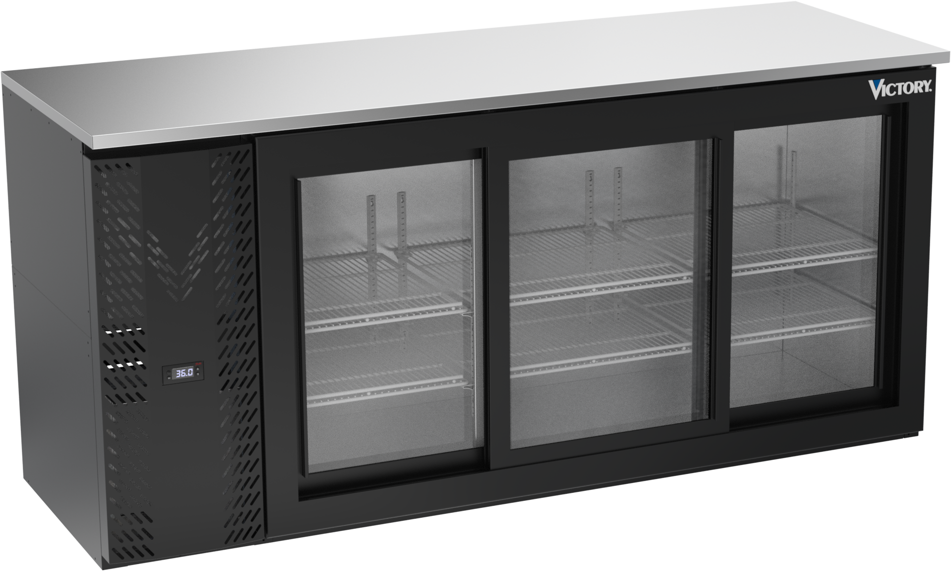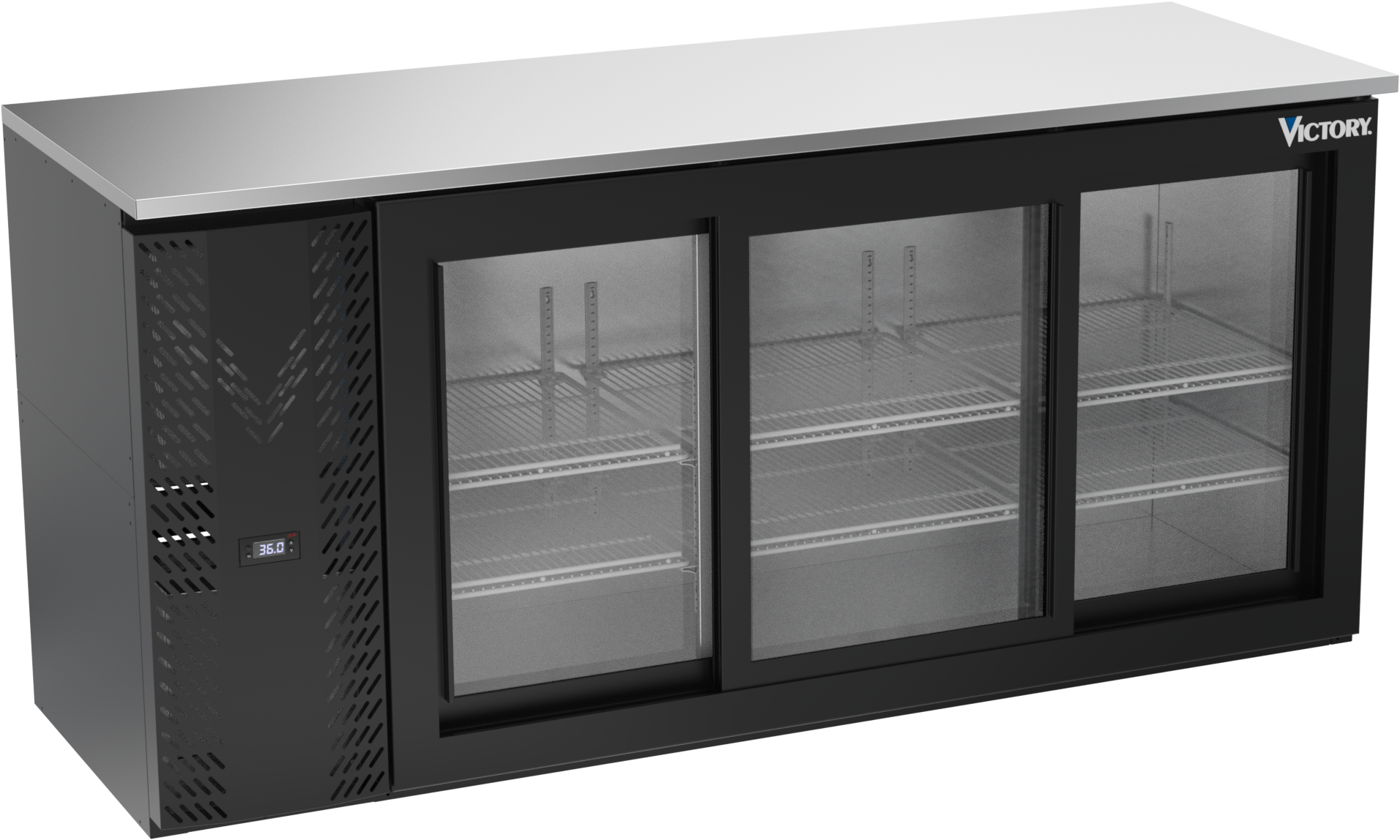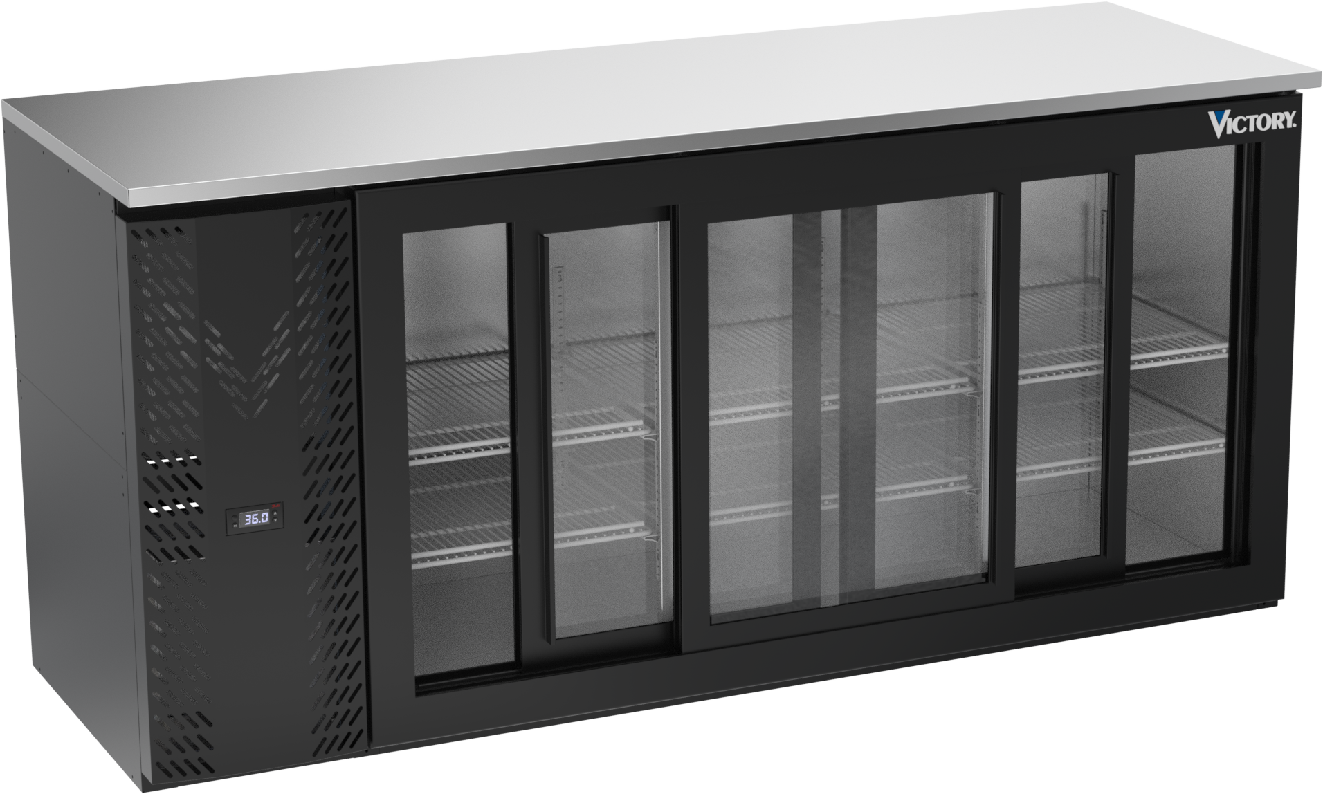 VBBN72HC-F-GS-B | 72" Narrow Depth Sliding Glass Doors Food Rated Back Bar in Black