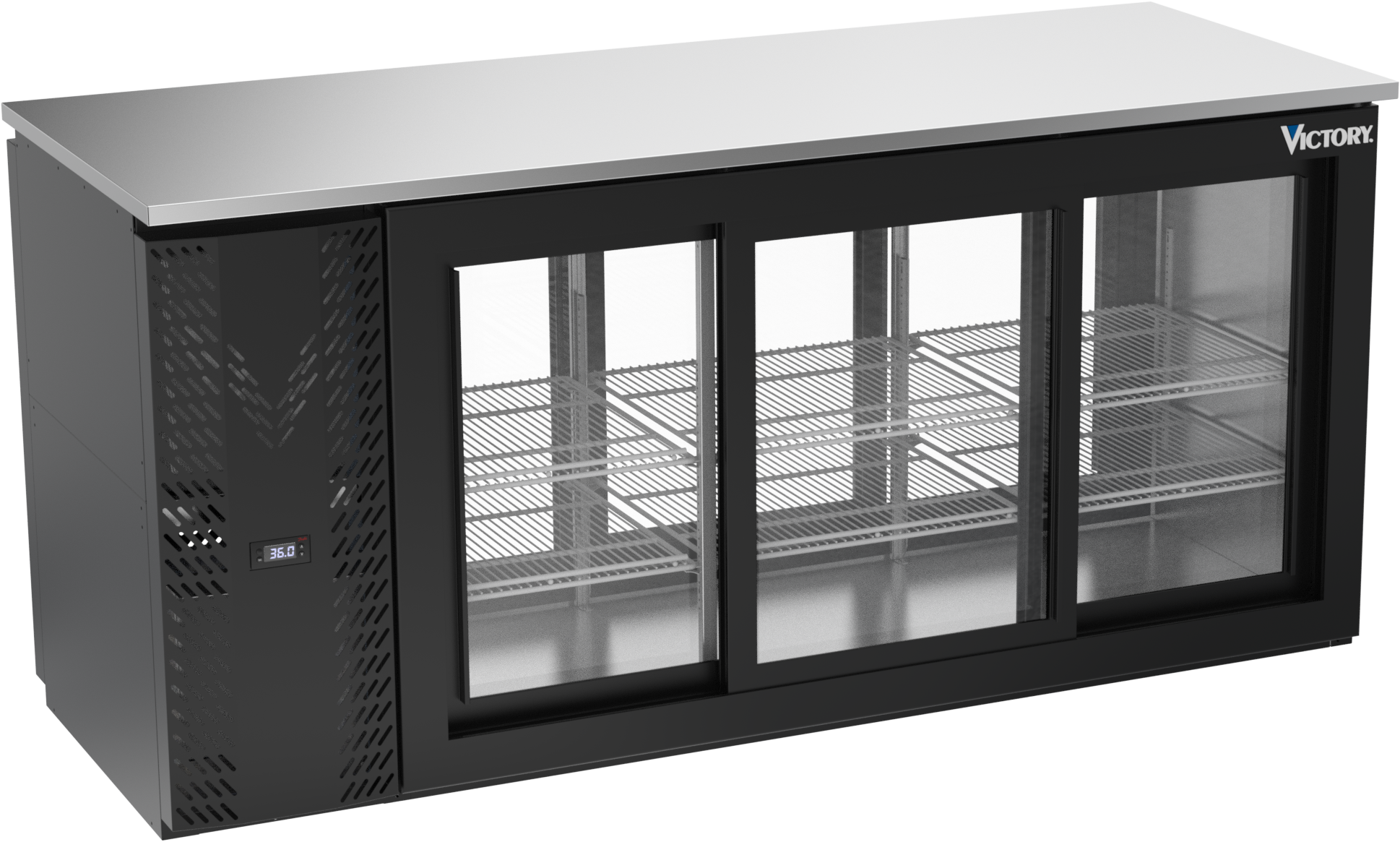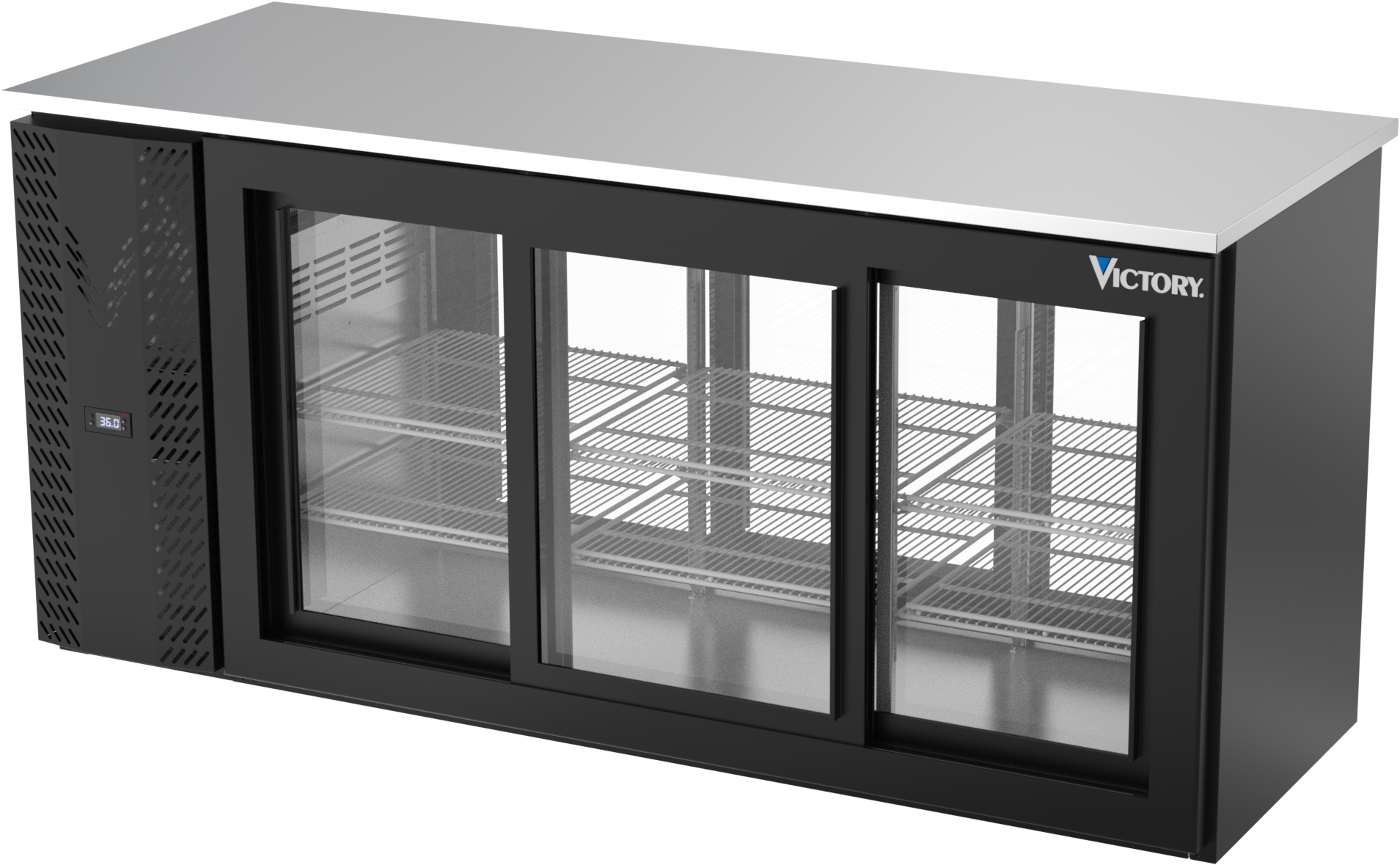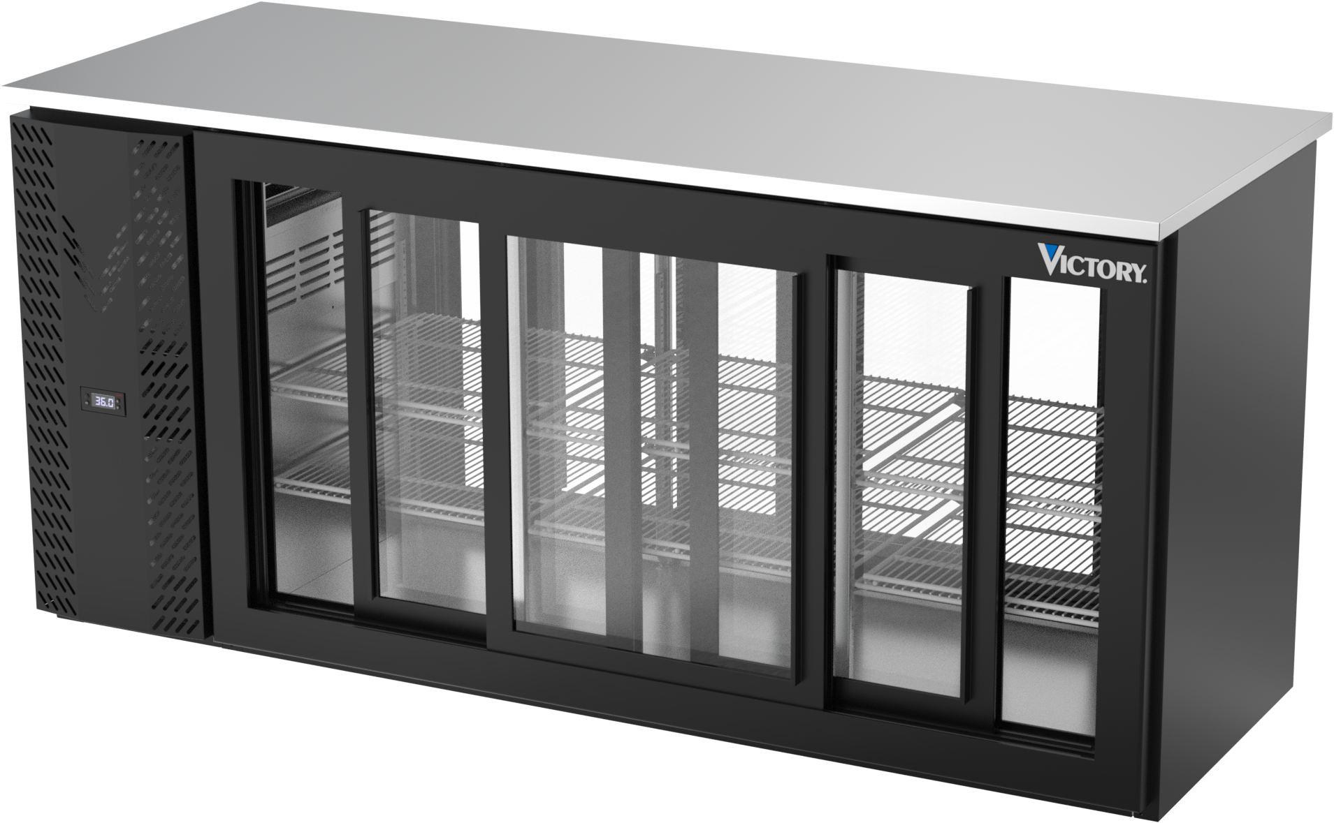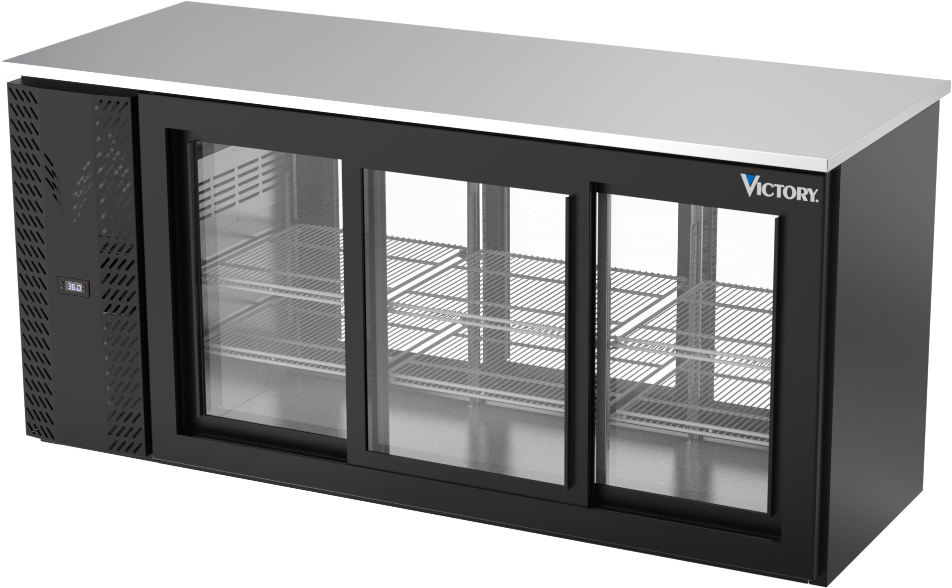 VBBN72HC-F-GS-PT-B | 72" Narrow Depth Sliding Glass Doors Food Rated Pass-thru Back Bar in Black