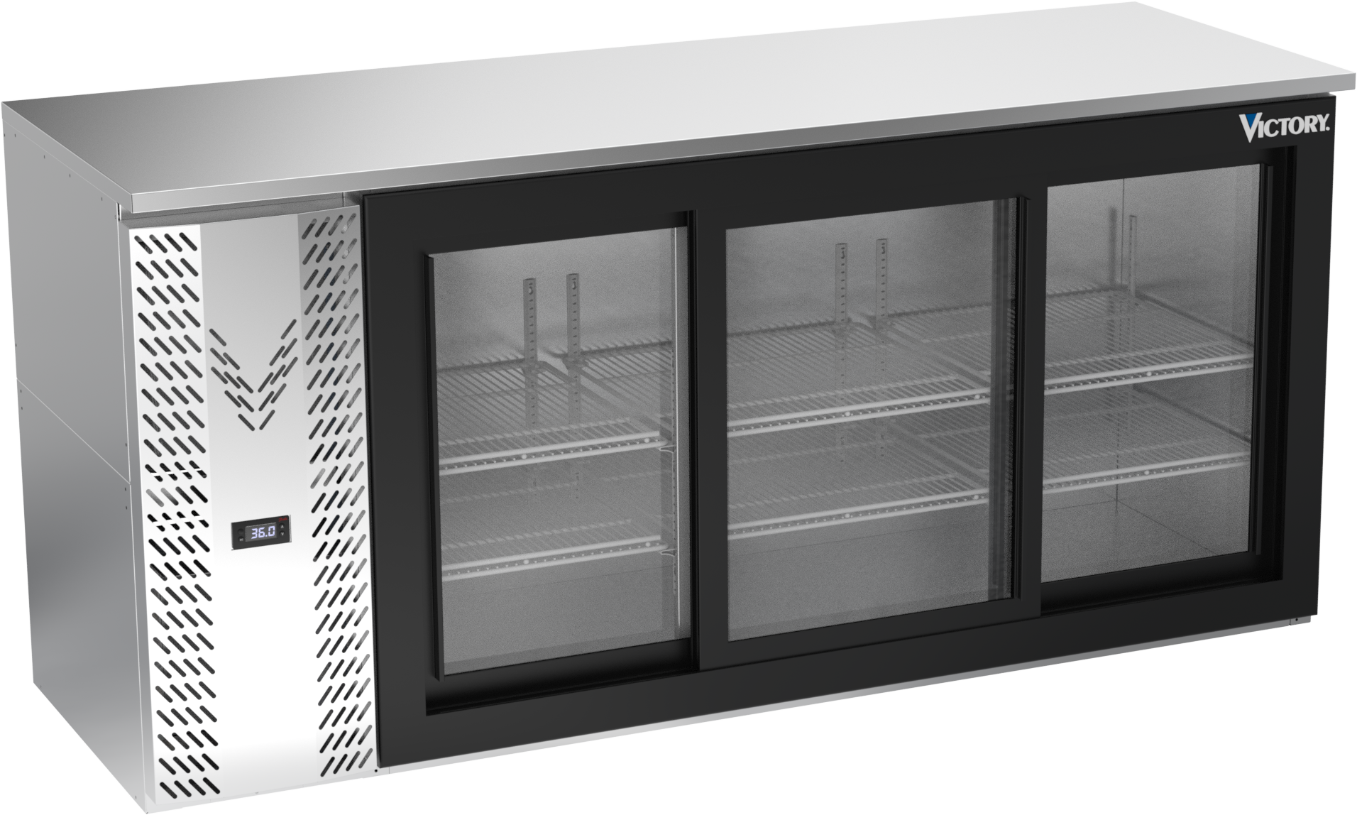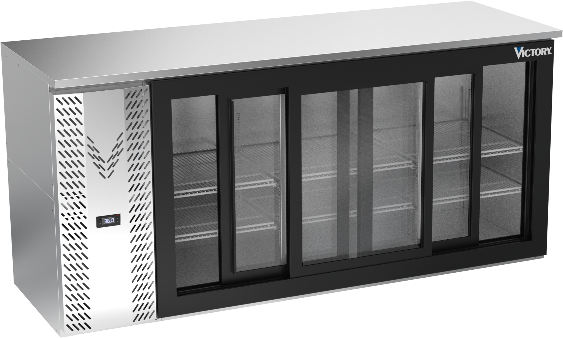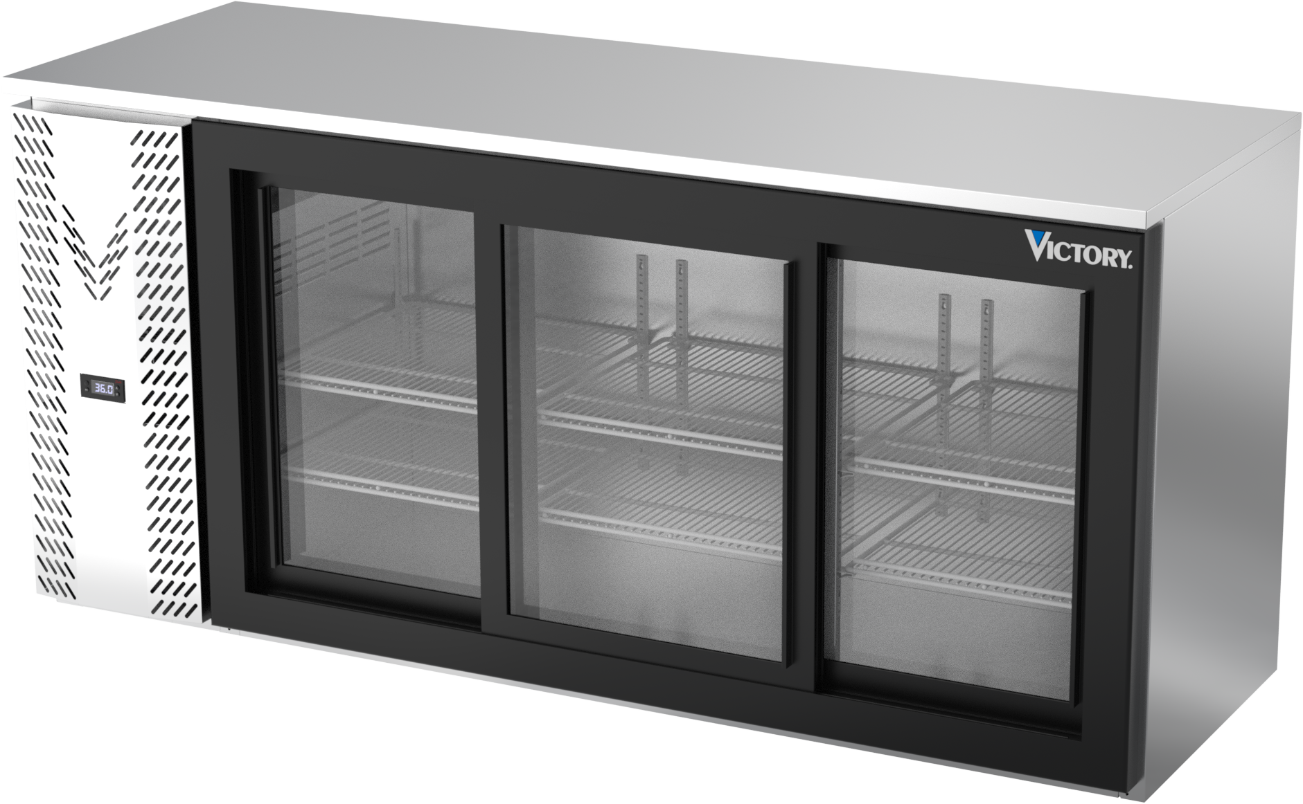 VBBN72HC-F-GS-S | 72" Narrow Depth Sliding Glass Doors Food Rated Back Bar in Stainless Steel