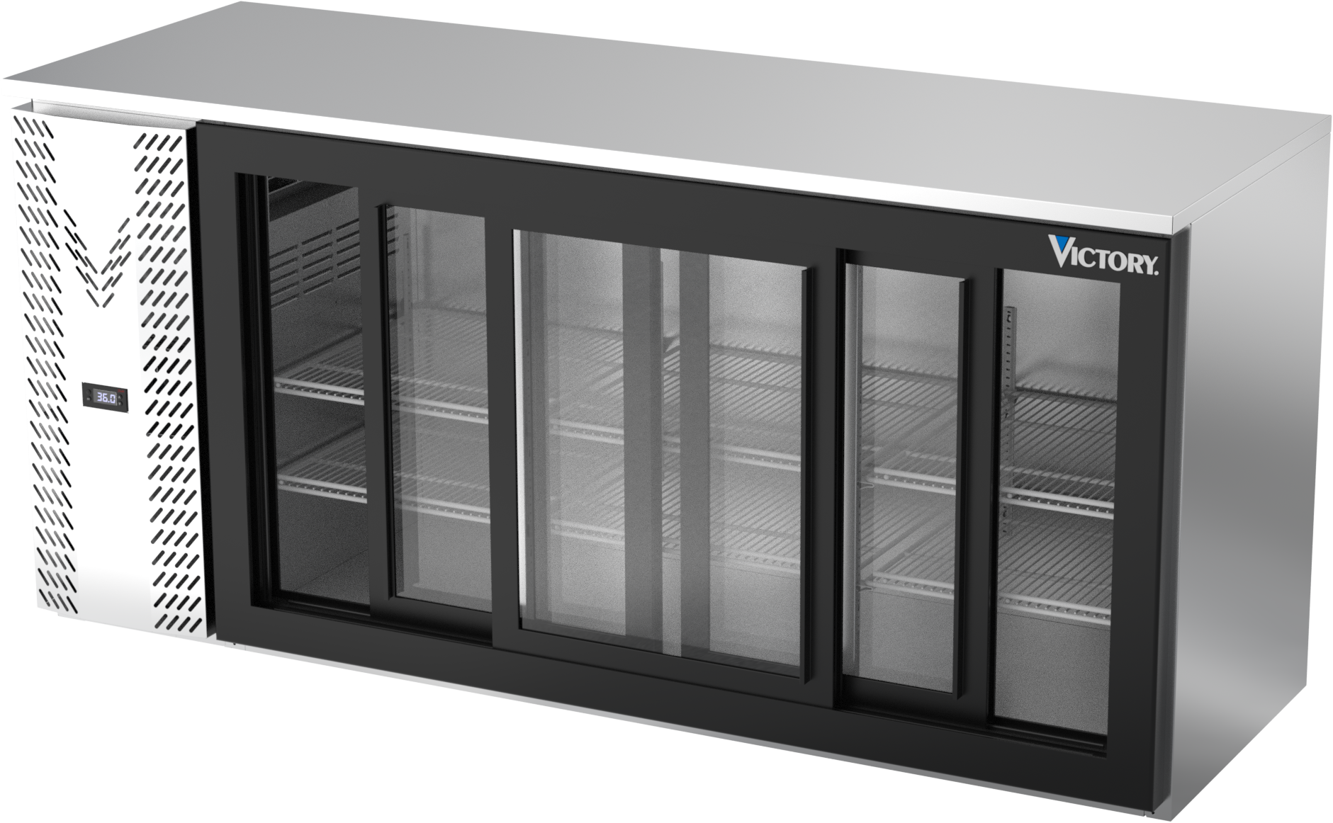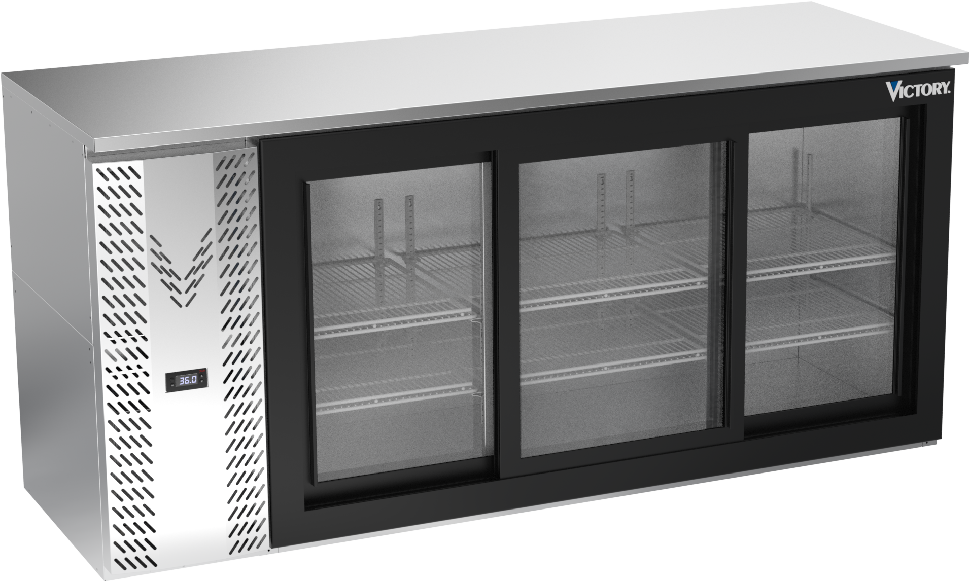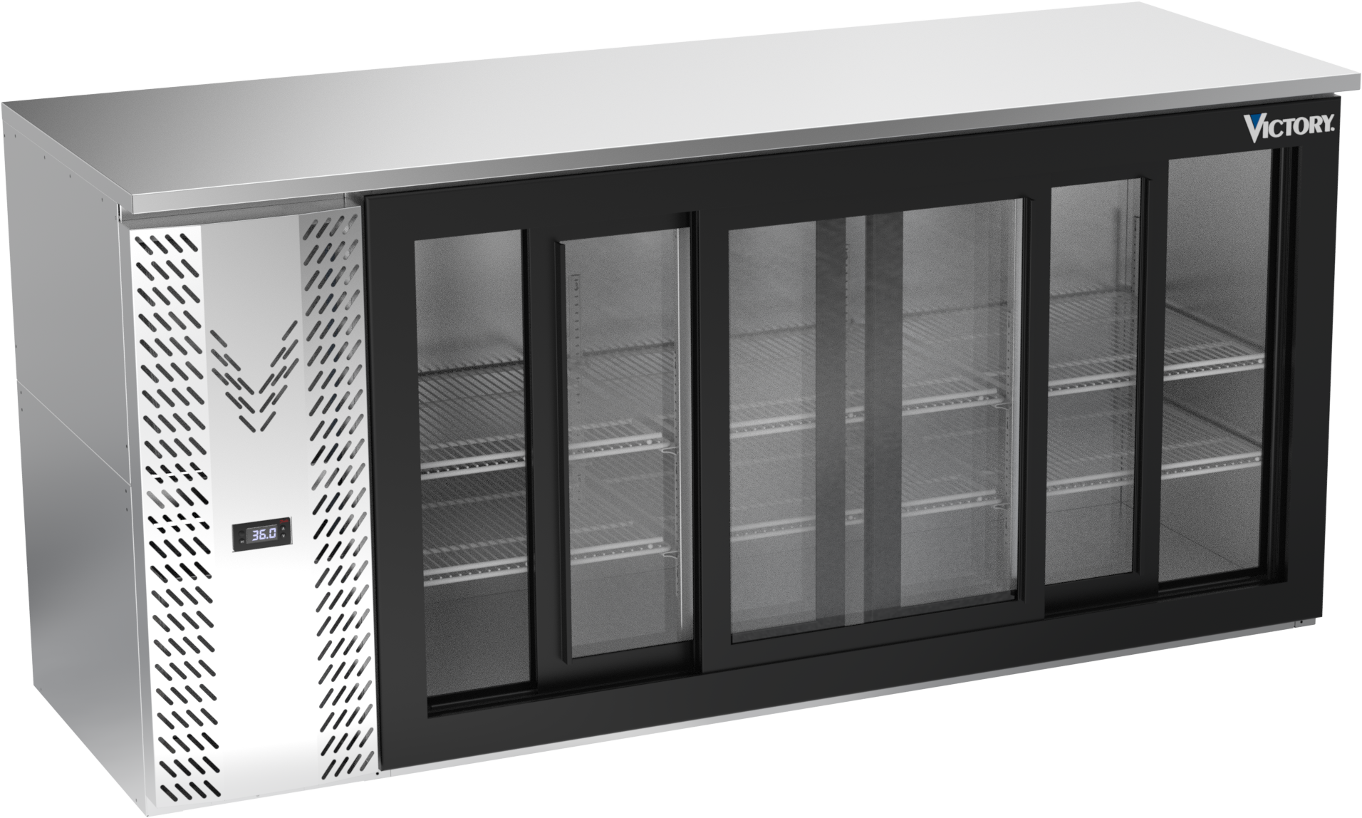 VBBN72HC-F-GS-S | 72" Narrow Depth Sliding Glass Doors Food Rated Back Bar in Stainless Steel