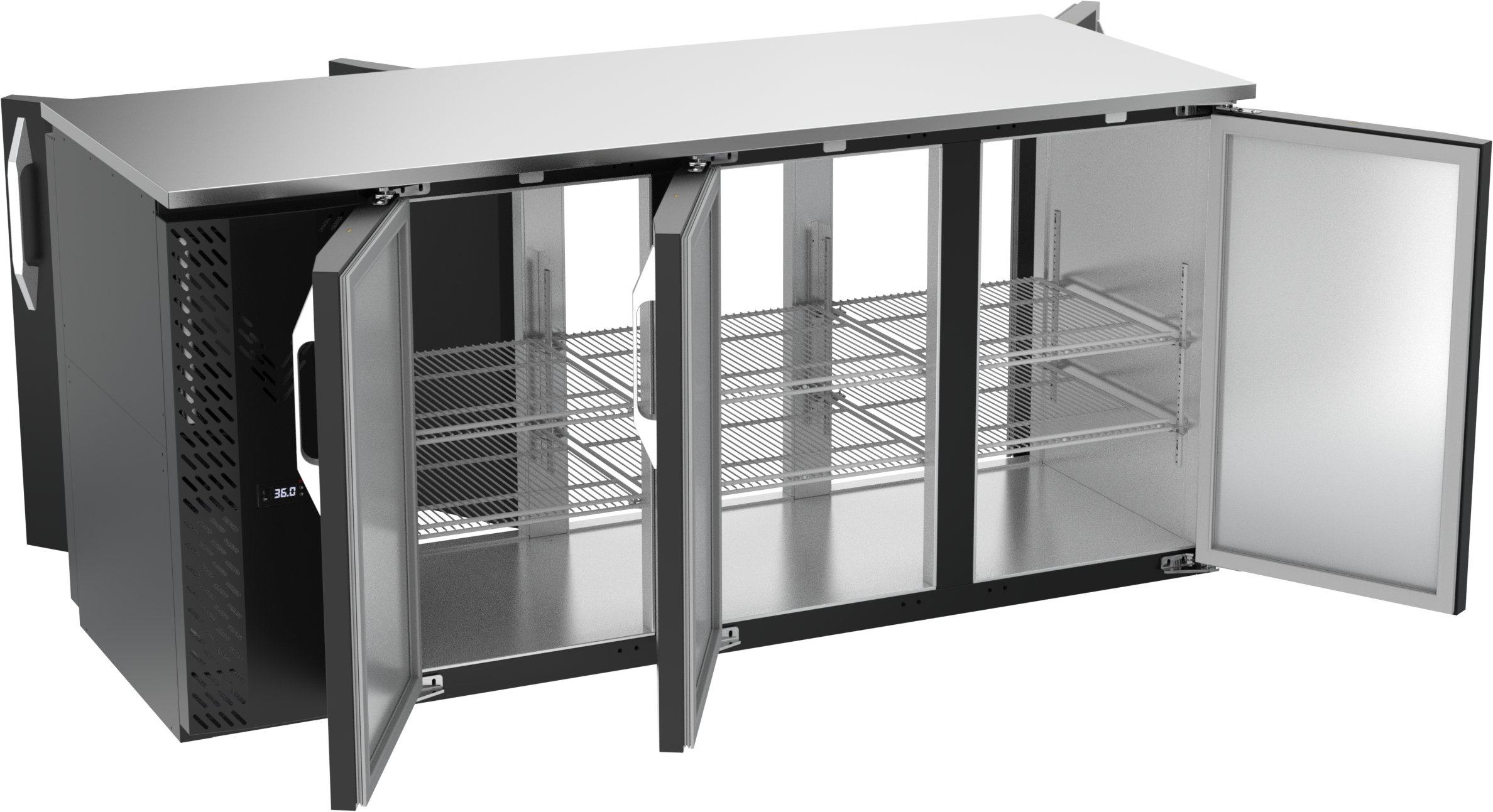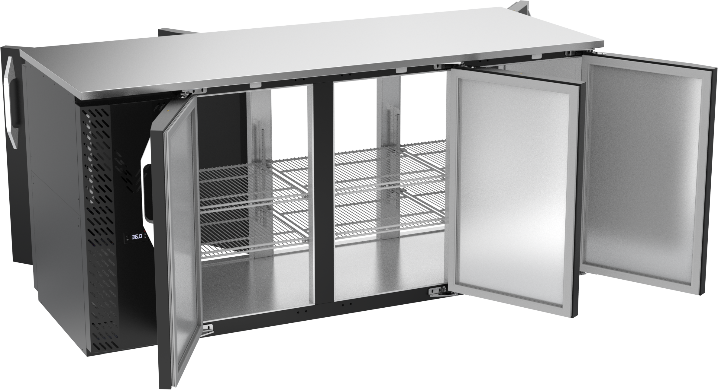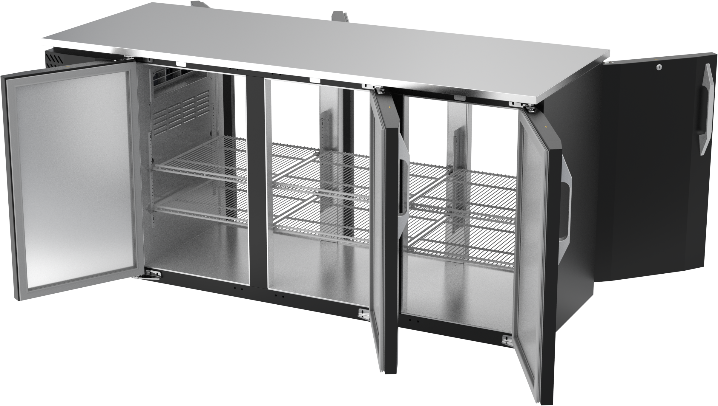 VBBN72HC-F-PT-B | 72" Narrow Depth Solid Doors Food Rated Pass-thru Back Bar in Black