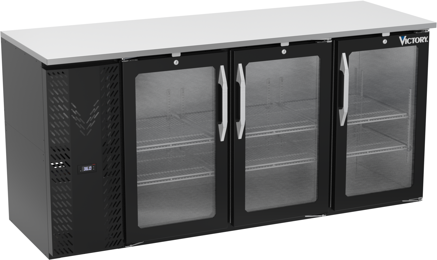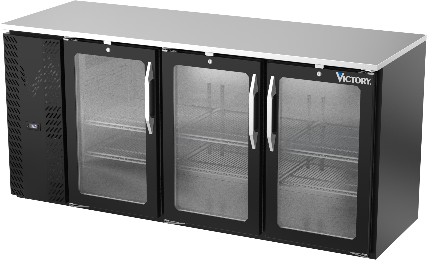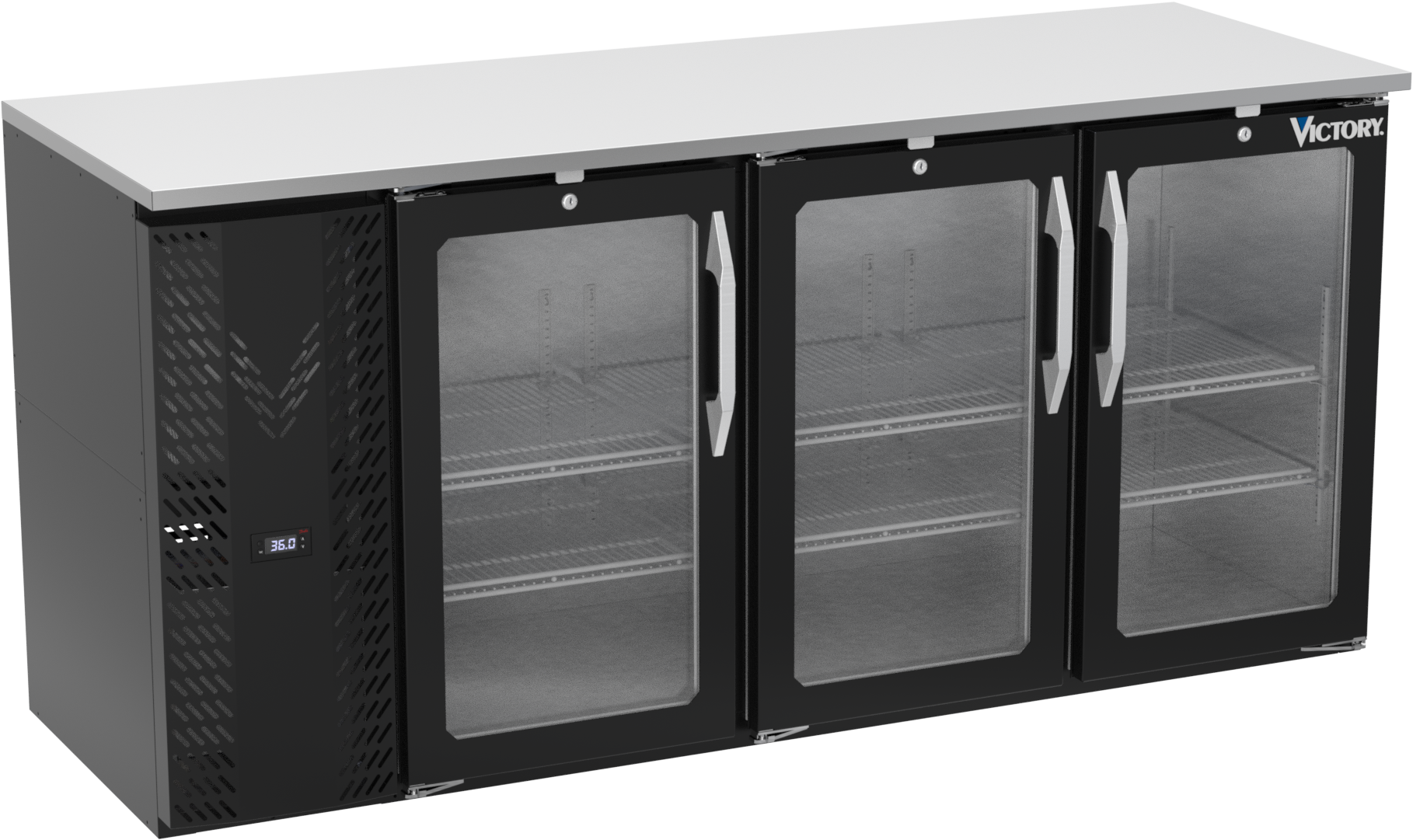VBBN72HC-FG-B | 72" Narrow Depth Glass Doors Food Rated Back Bar in Black