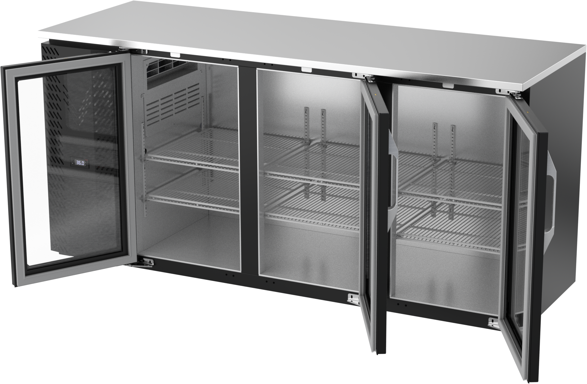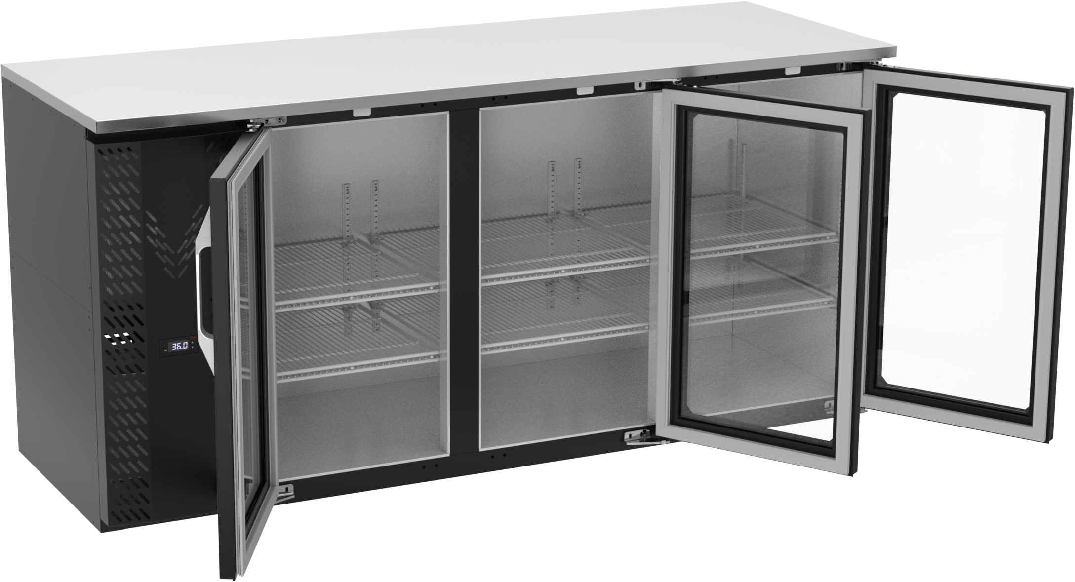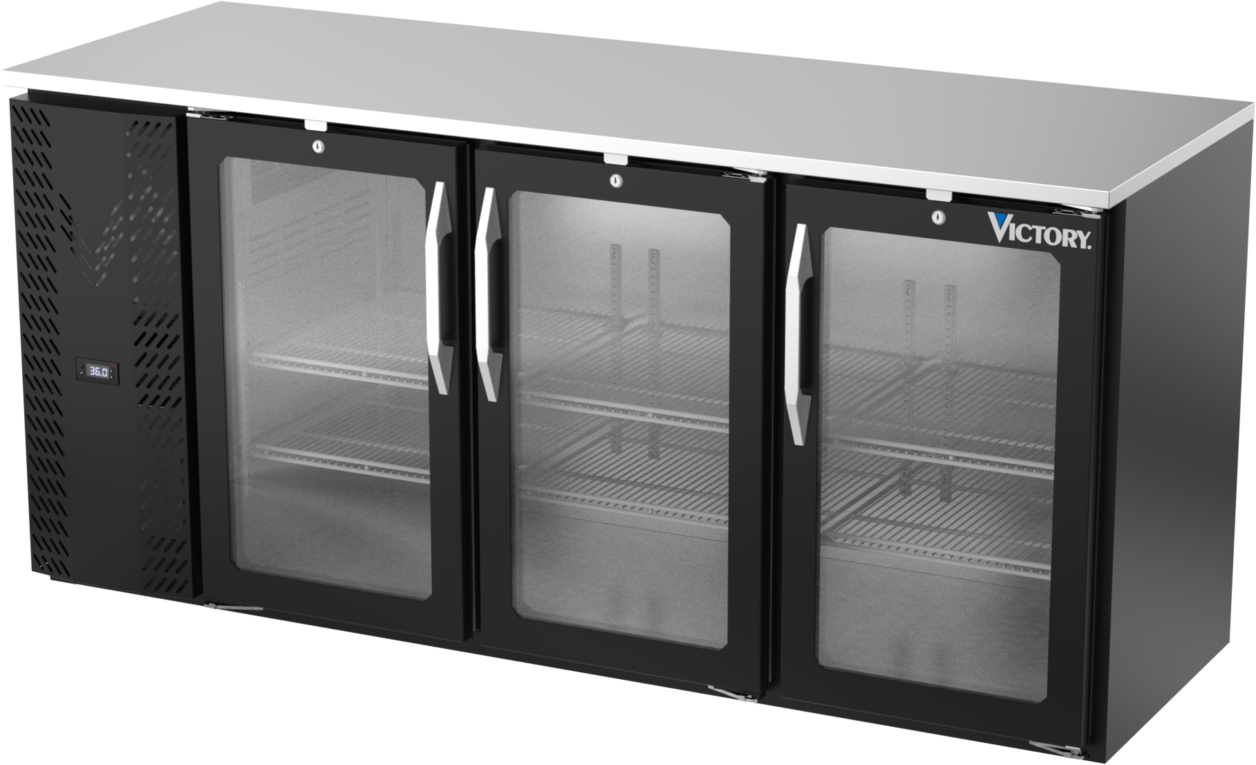 VBBN72HC-FG-B | 72" Narrow Depth Glass Doors Food Rated Back Bar in Black