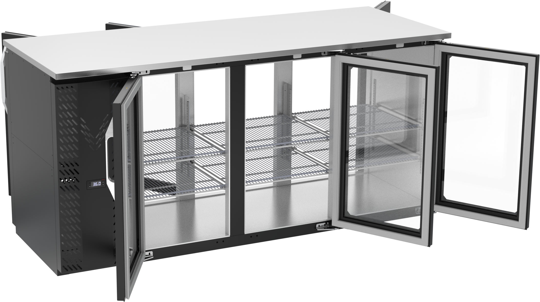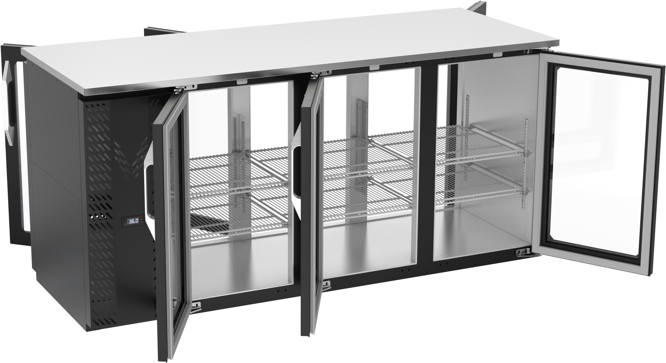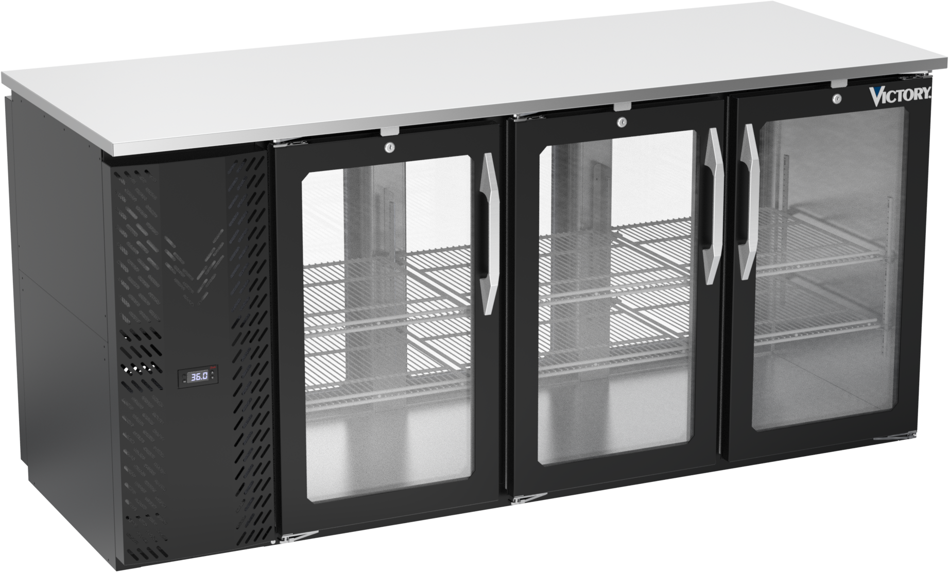 VBBN72HC-FG-PT-B | 72" Narrow Depth Glass Doors Food Rated Pass-thru Back Bar in Black