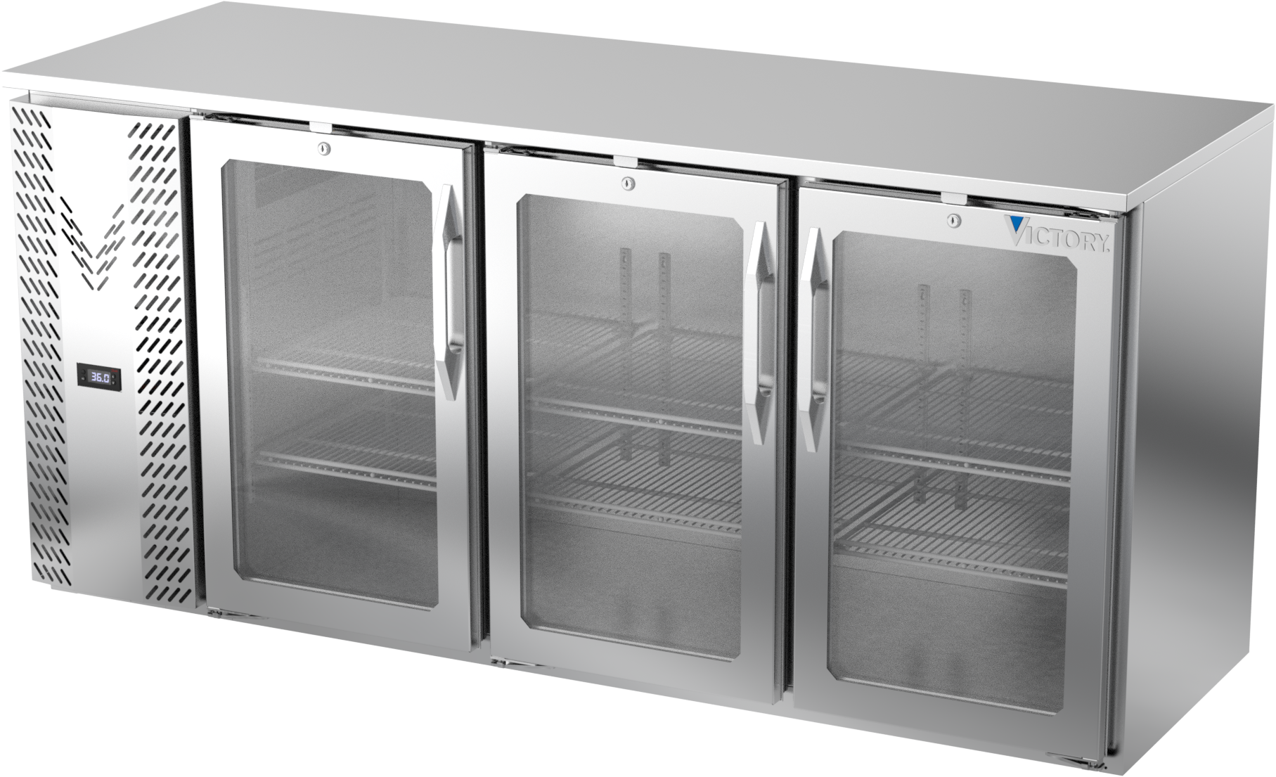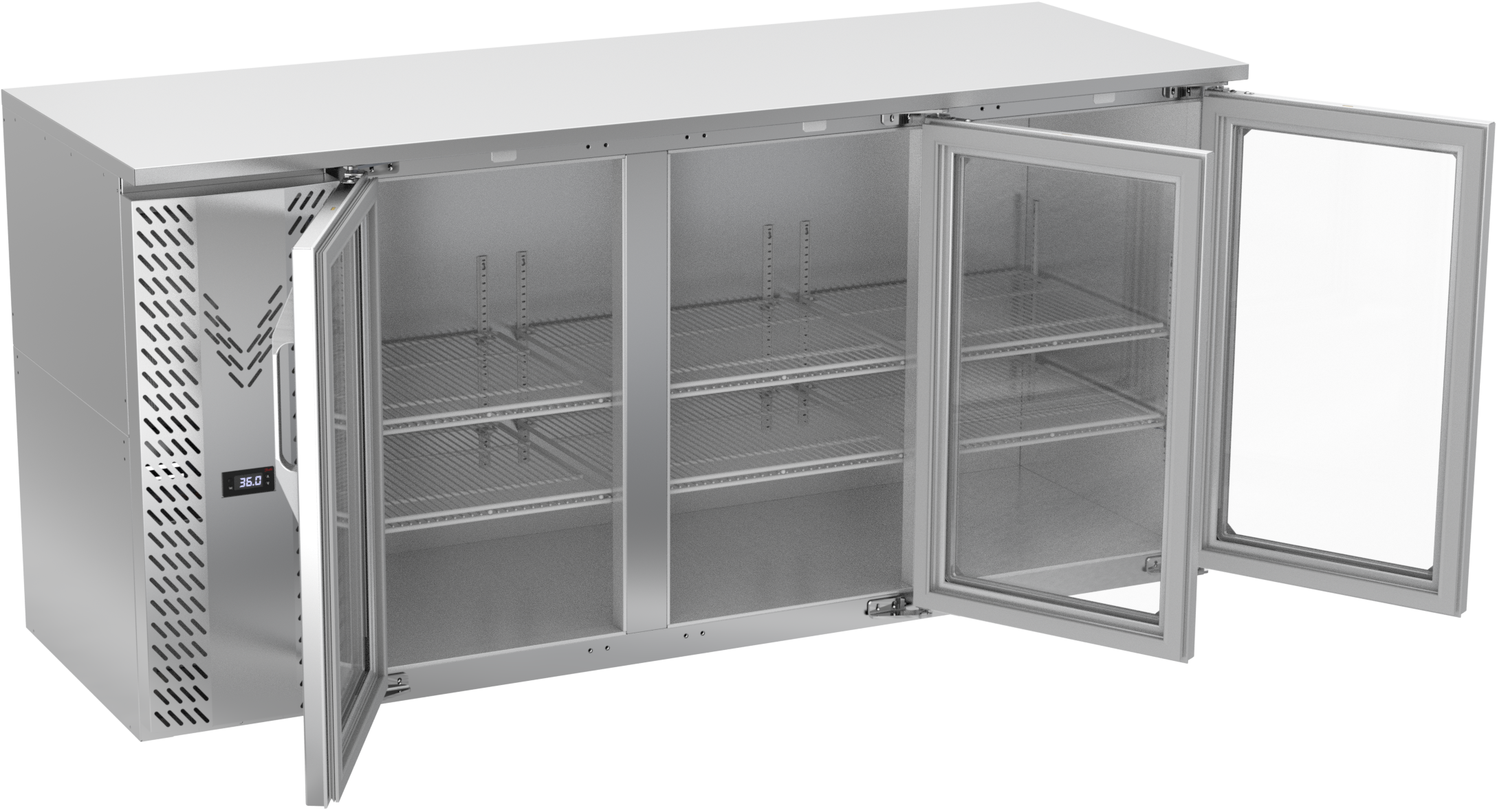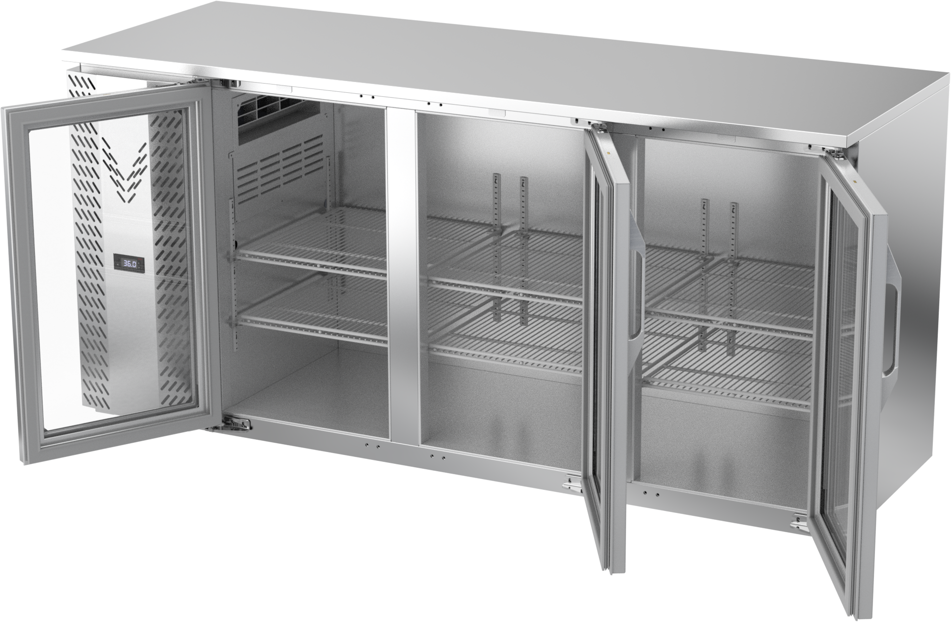 VBBN72HC-FG-S | 72" Narrow Depth Glass Doors Food Rated Back Bar in Stainless Steel