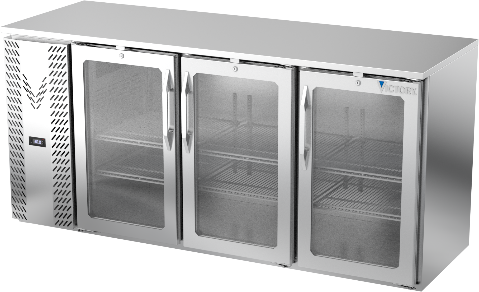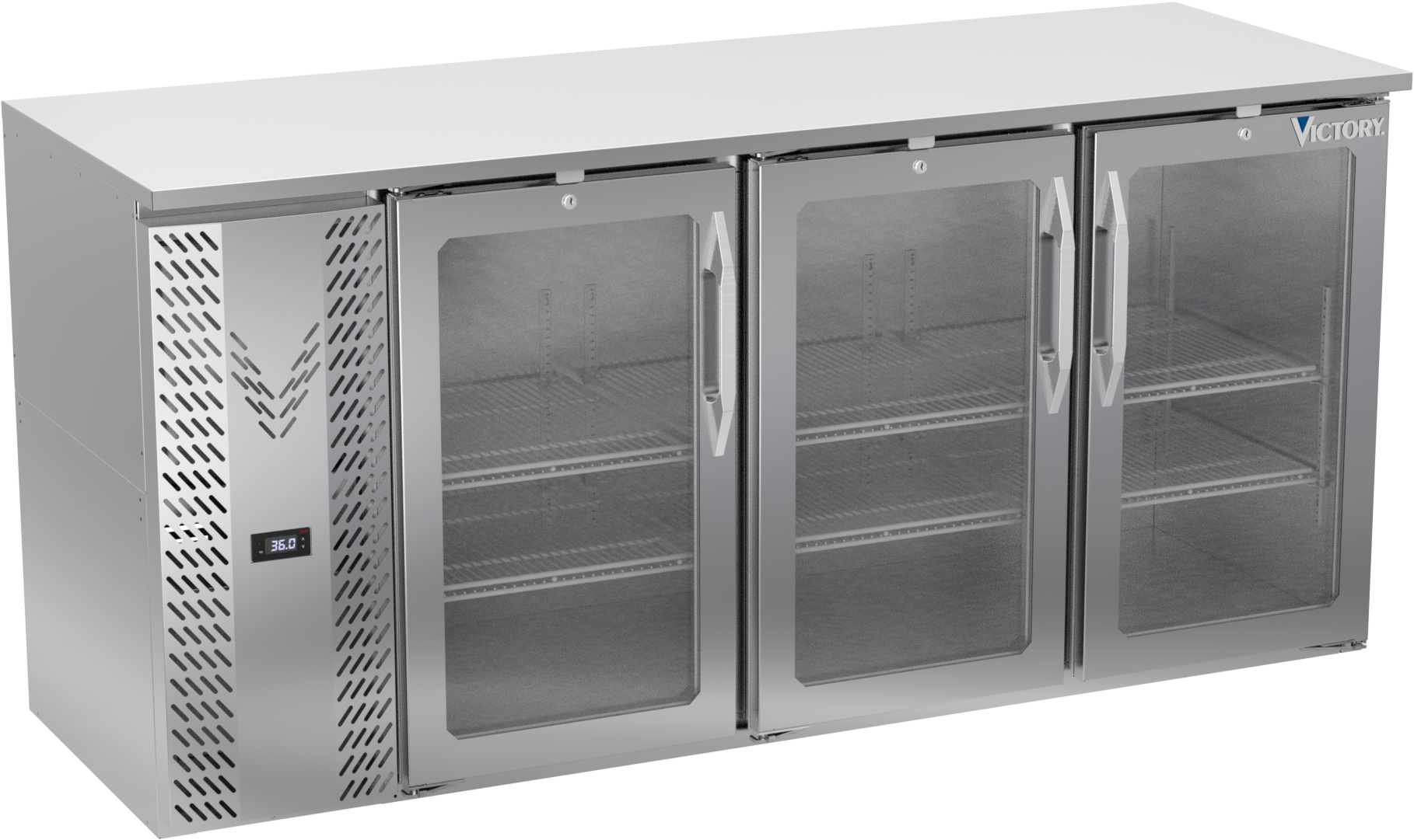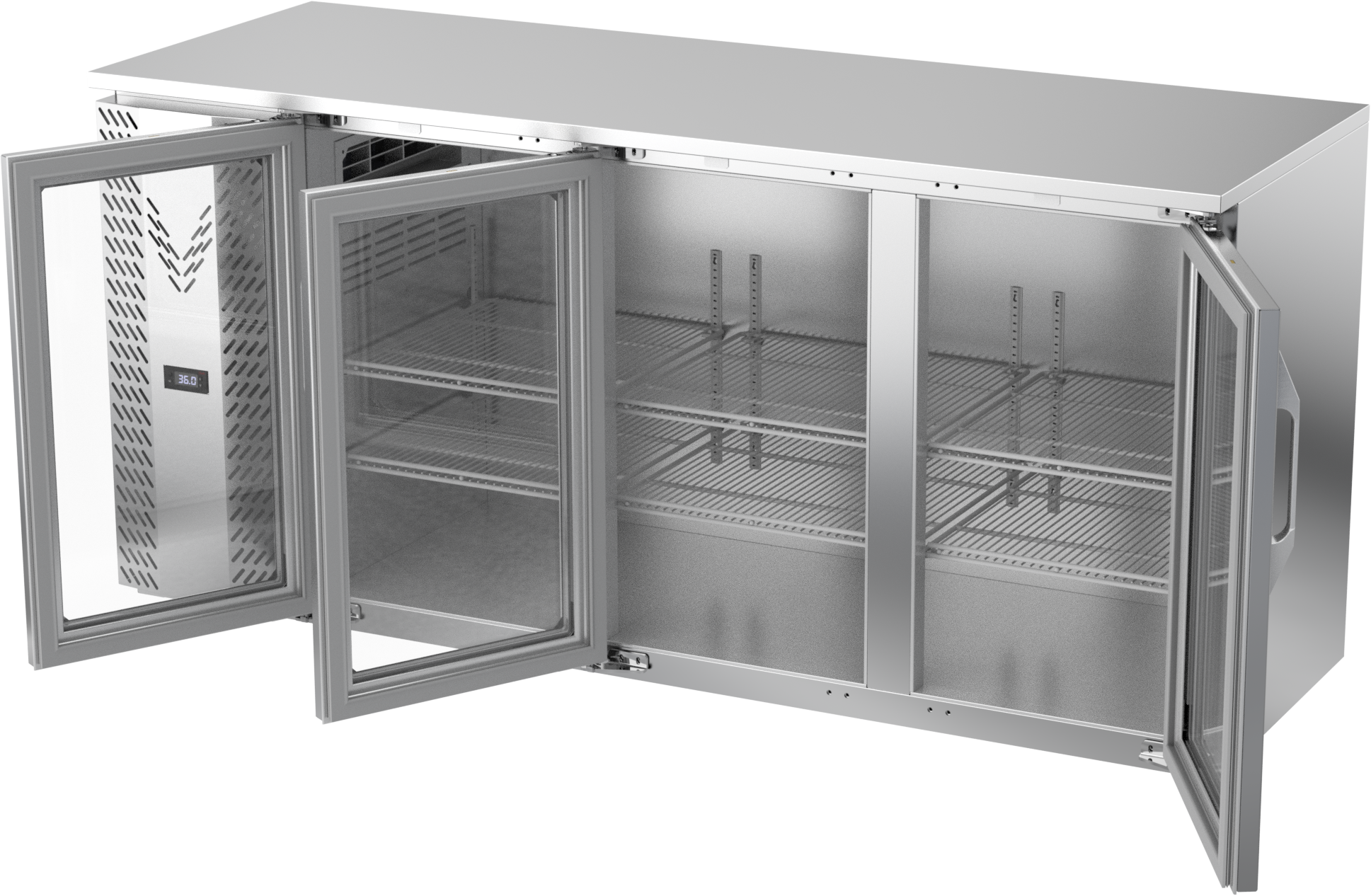 VBBN72HC-FG-S | 72" Narrow Depth Glass Doors Food Rated Back Bar in Stainless Steel