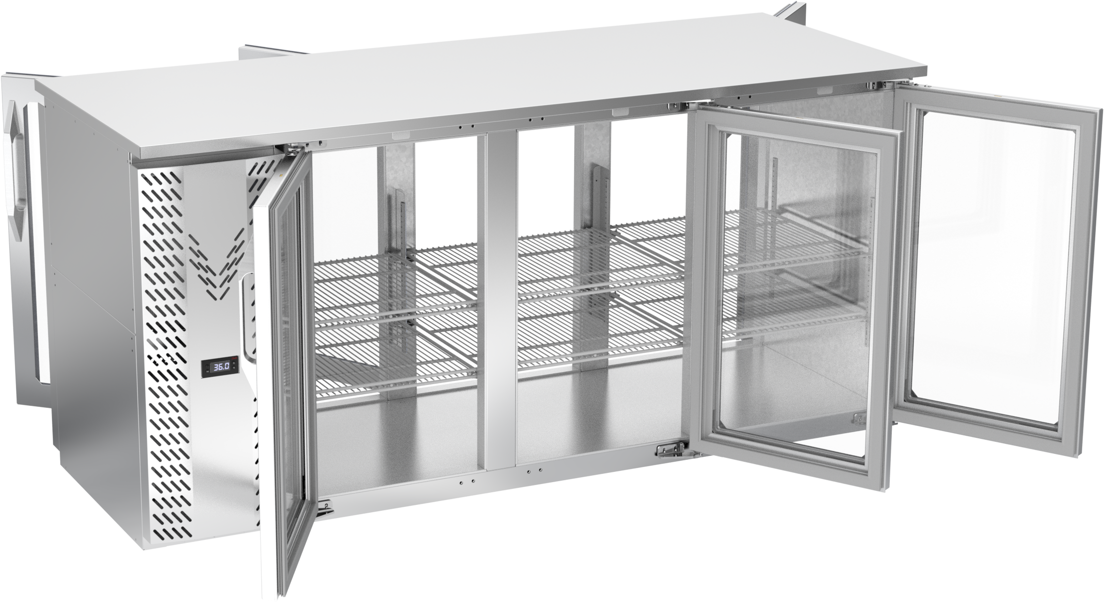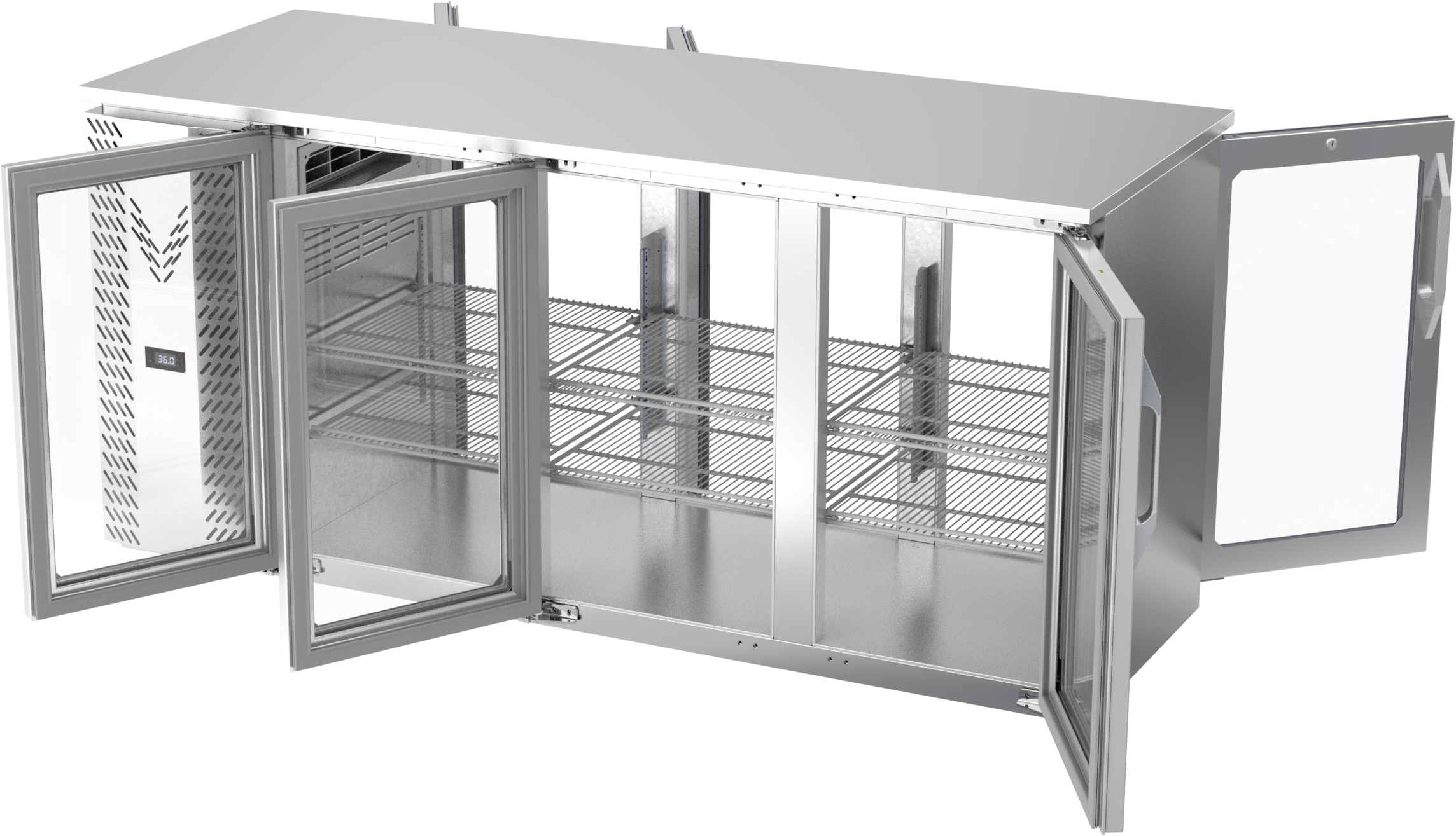 VBBN72HC-G-PT-S | 72" Narrow Depth Glass Doors Pass-thru Back Bar in Stainless Steel