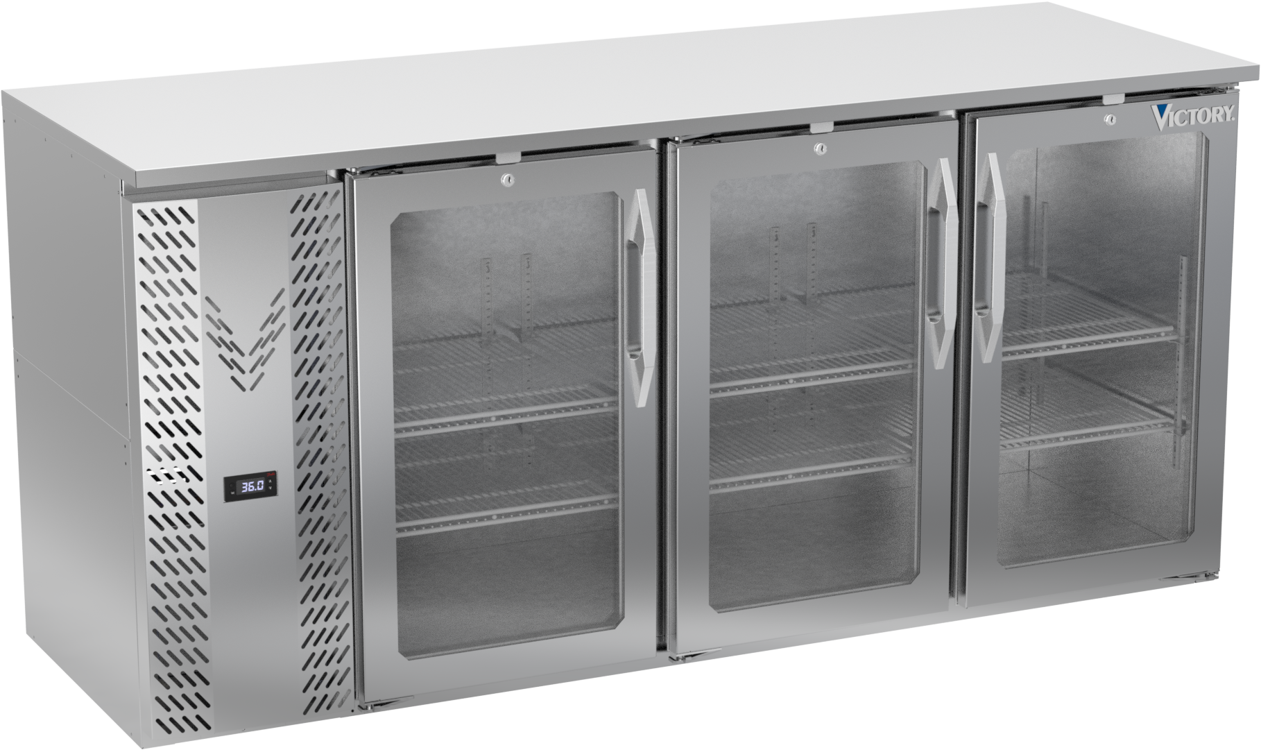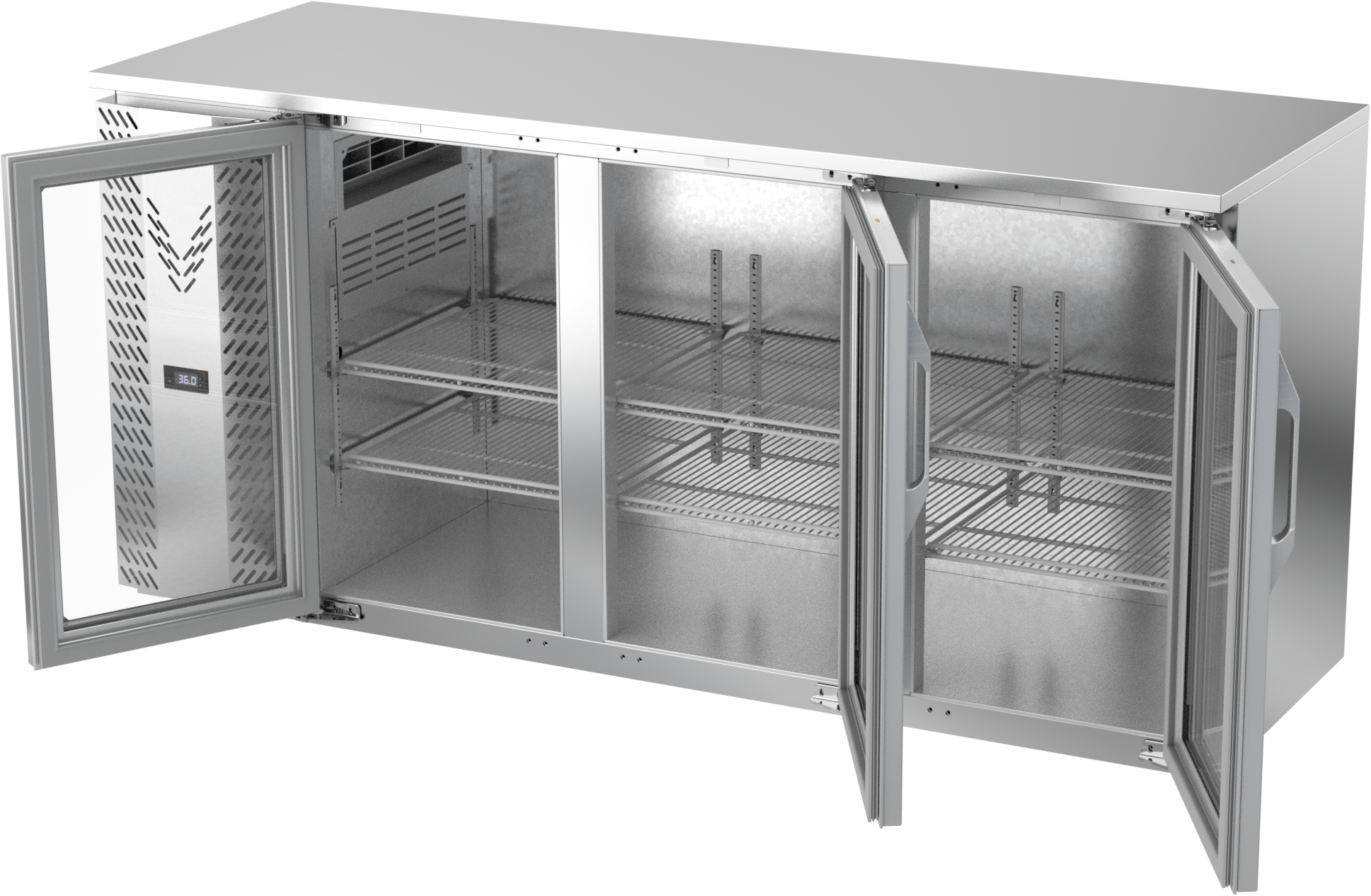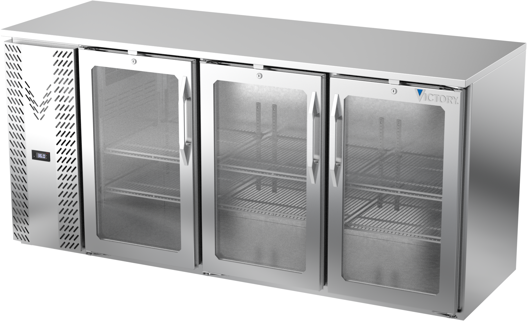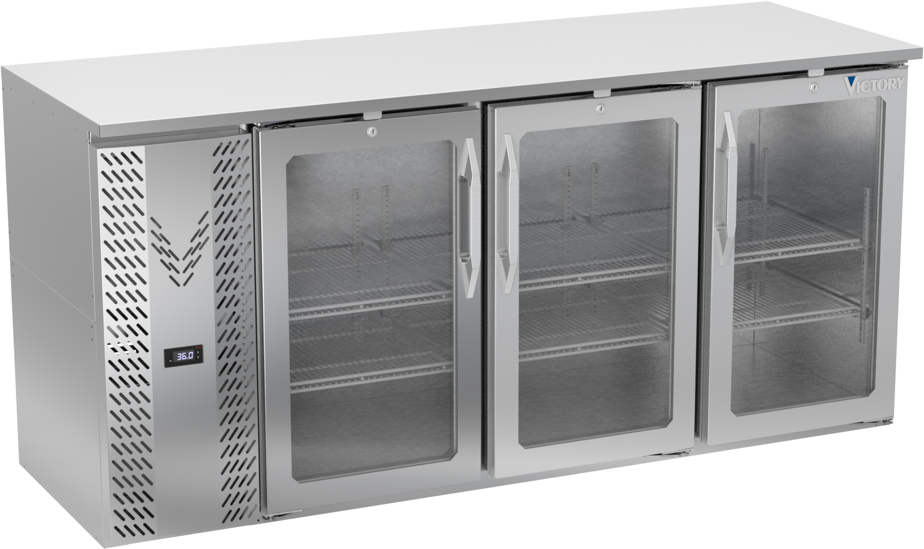 VBBN72HC-G-S | 72" Narrow Depth Glass Doors Back Bar in Stainless Steel
